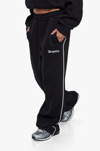 CONTRAST EMBROIDERY WOMEN OPEN LEG JOGGER BLACK