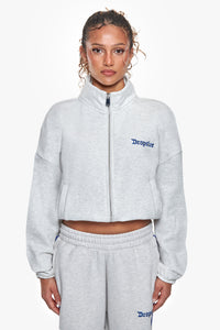 CONTRAST EMBROIDERY WOMEN ZIPPER GREY MELANGE