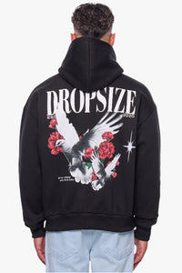 HEAVY OVERSIZE DOVES AND ROSES HOODIE BLACK