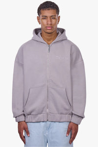HEAVY OVERSIZE EMBO ZIP HOODIE GREY