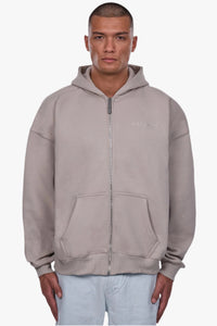 HEAVY OVERSIZE LOGO ZIP HOODIE PUMICE STONE