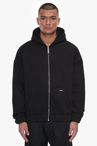 OVERSIZE METAL PATCH ZIP HOODIE BLACK