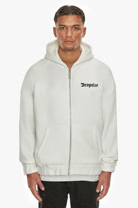 SUPER HEAVY OVERSIZE BLANK ZIP HOODIE WASHED WHITE