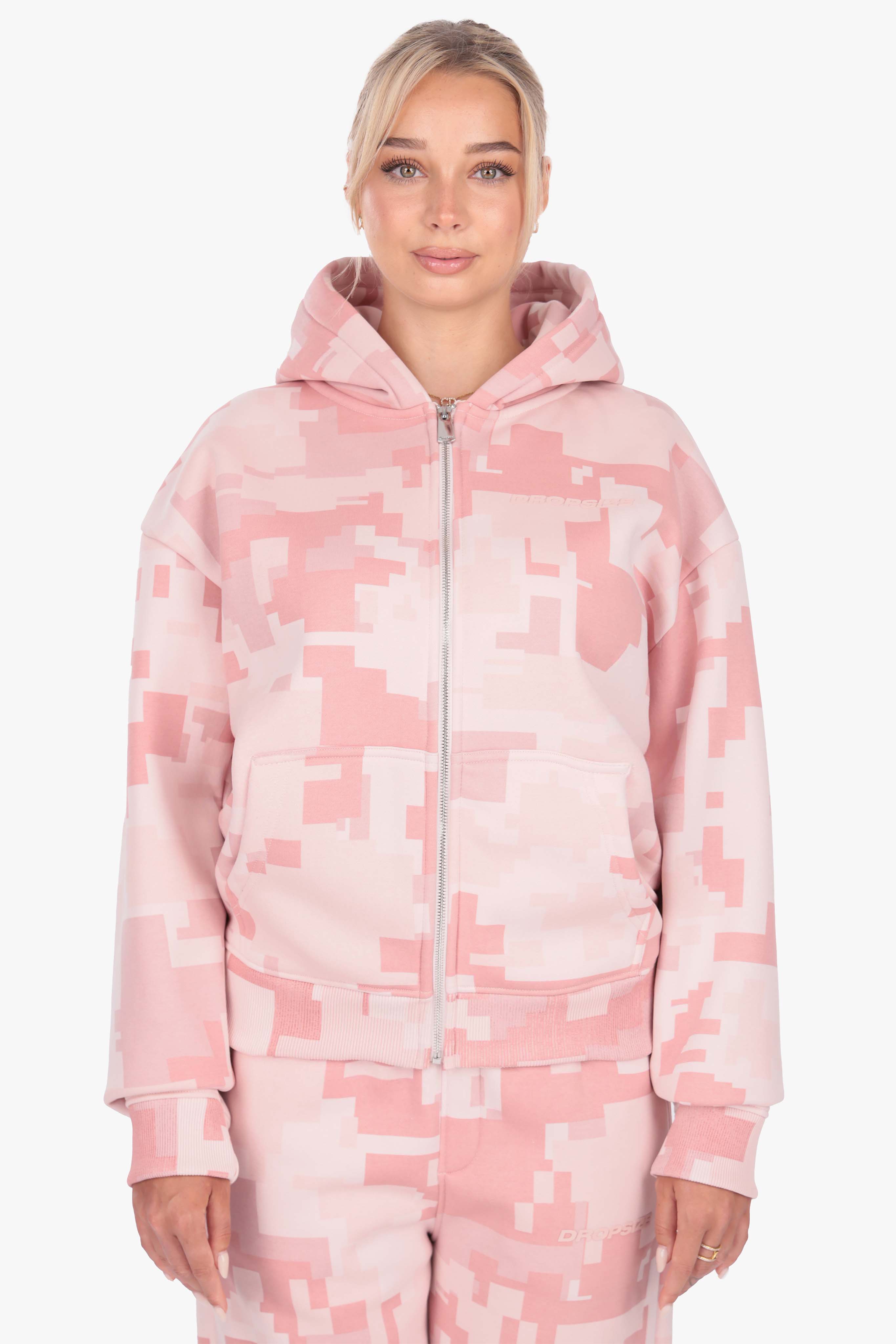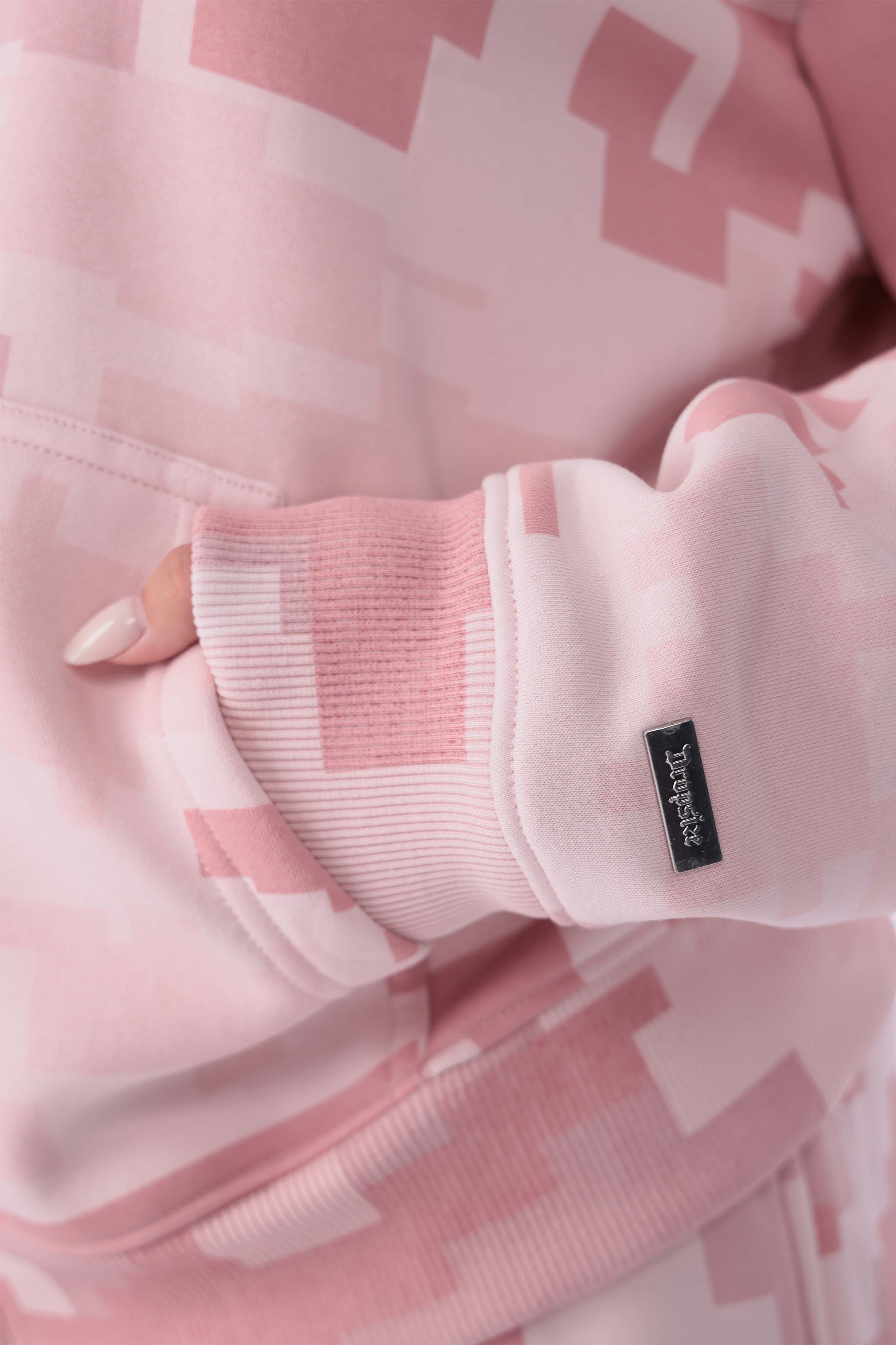 WOMENS PINK CAMO ZIP HOODIE ACID WASH