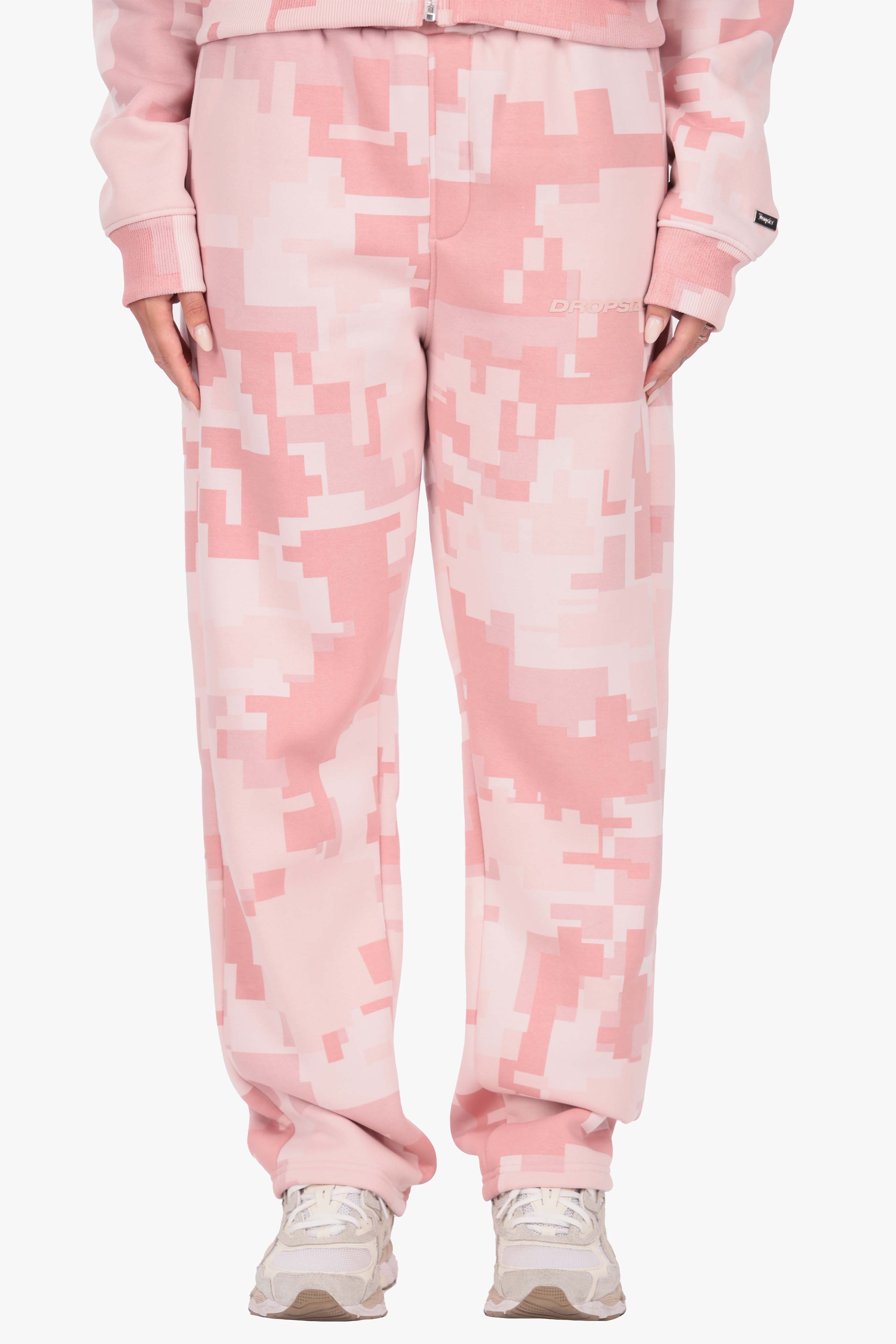 WOMENS PINK CAMO OPEN LEG JOGGER ACID WASH