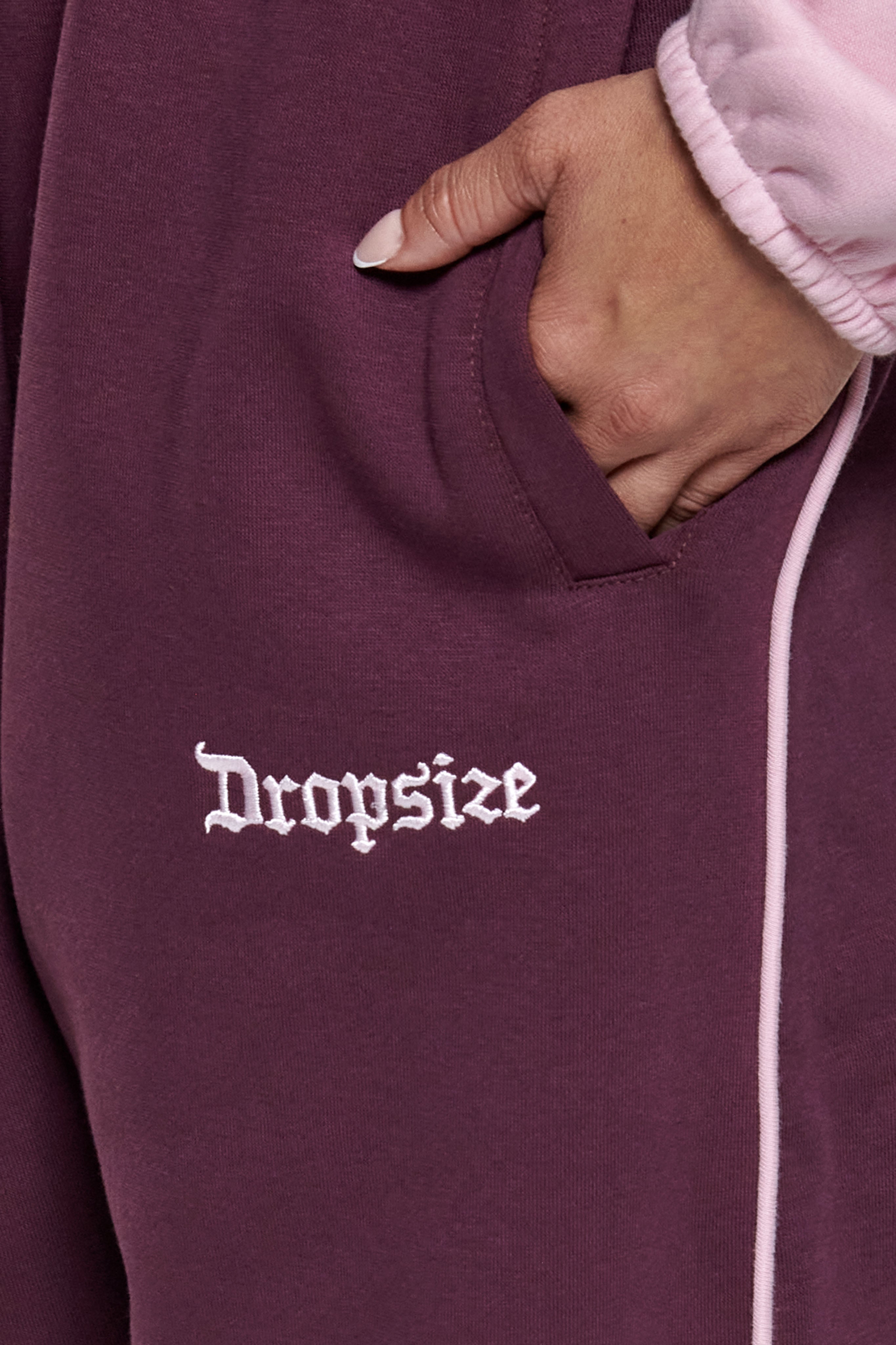CONTRAST EMBROIDERY WOMEN OPEN LEG JOGGER PINK