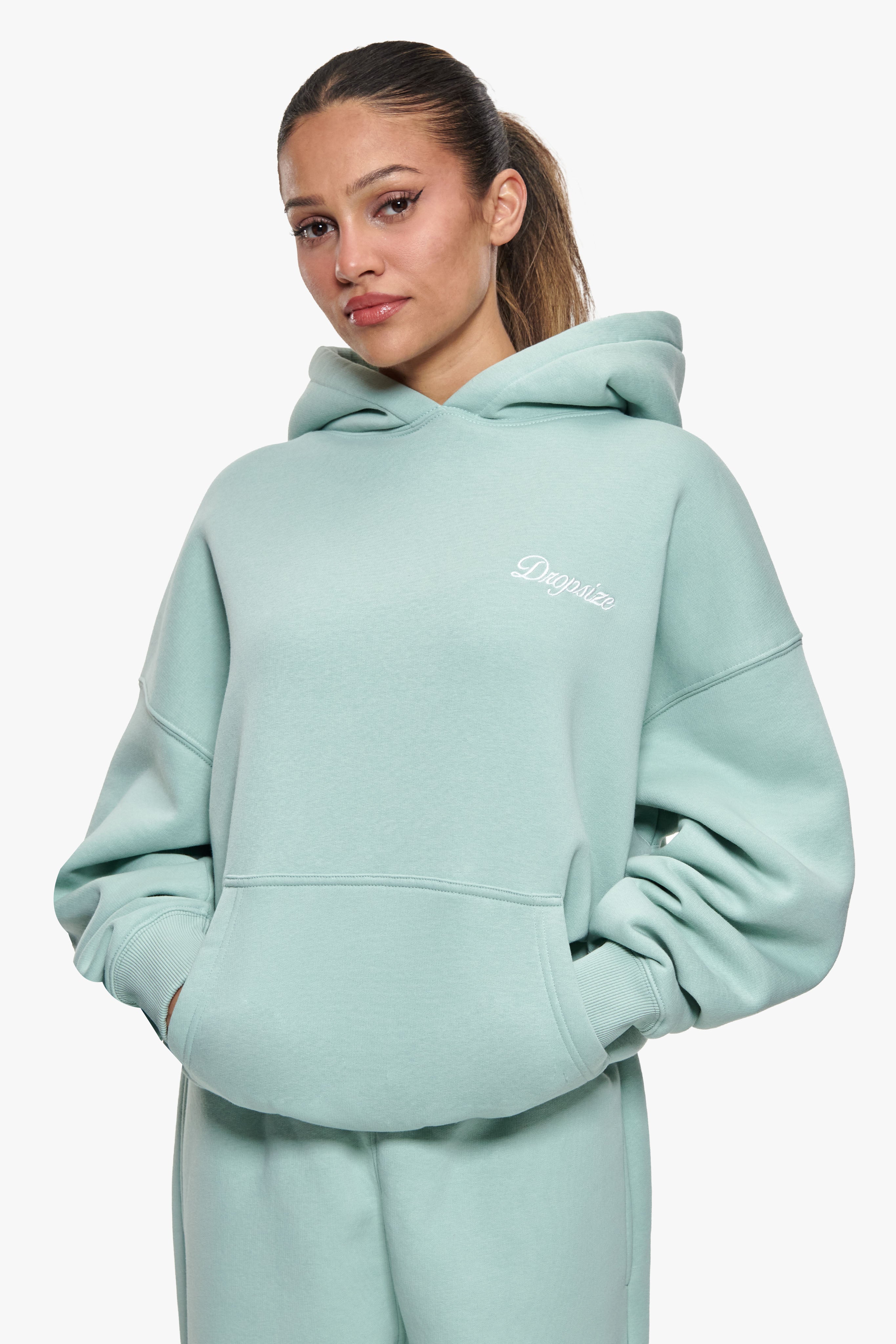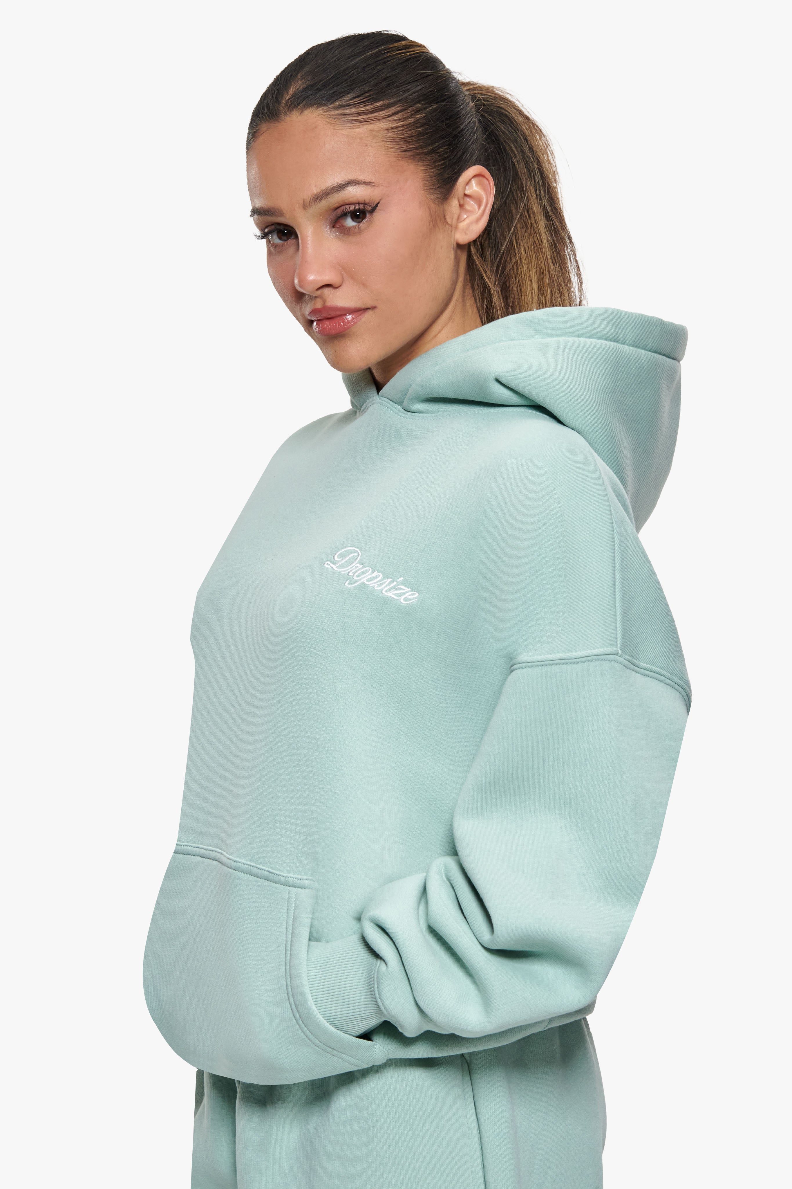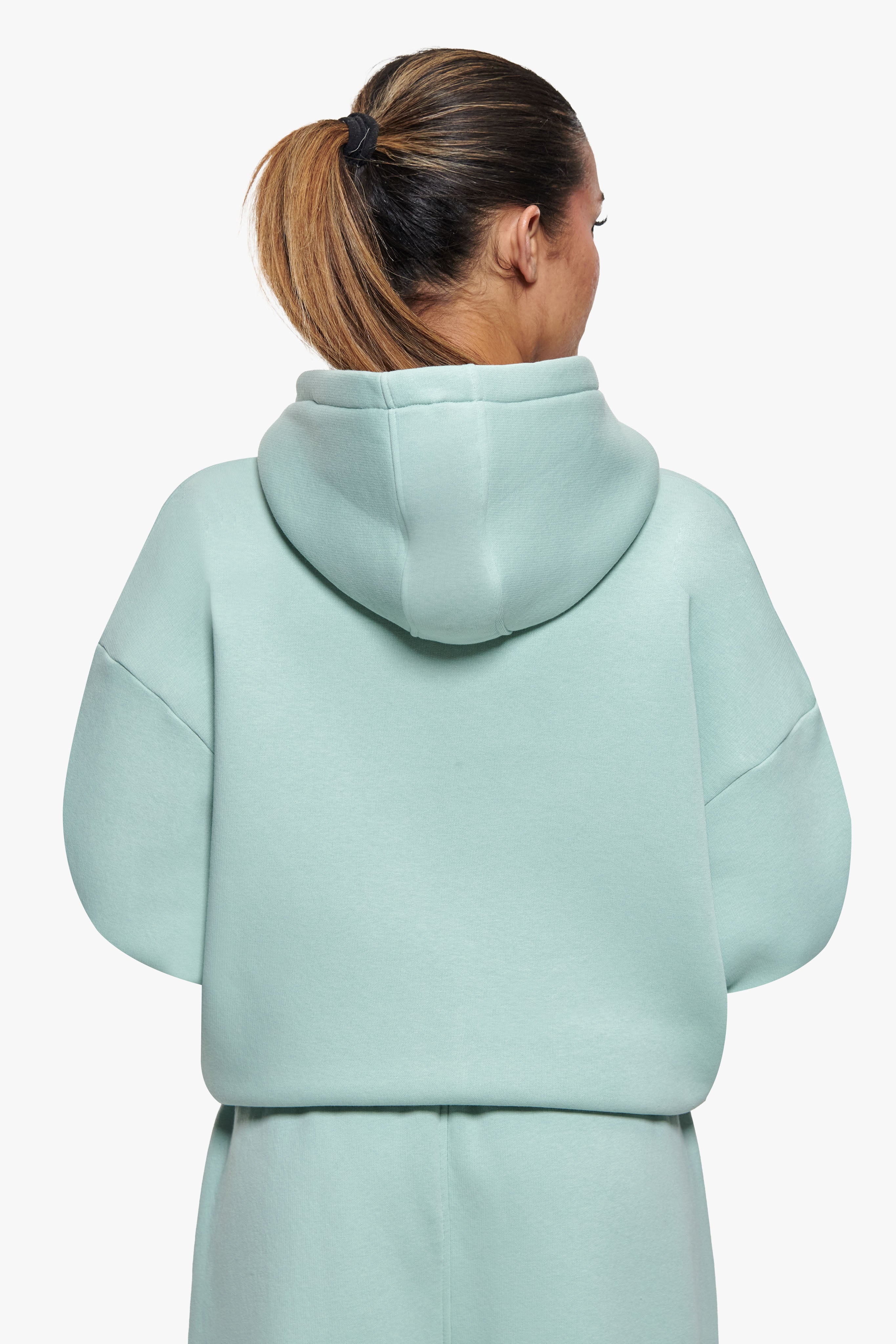 WOMEN CONTRAST EMBO HOODIE SAFARI GREEN