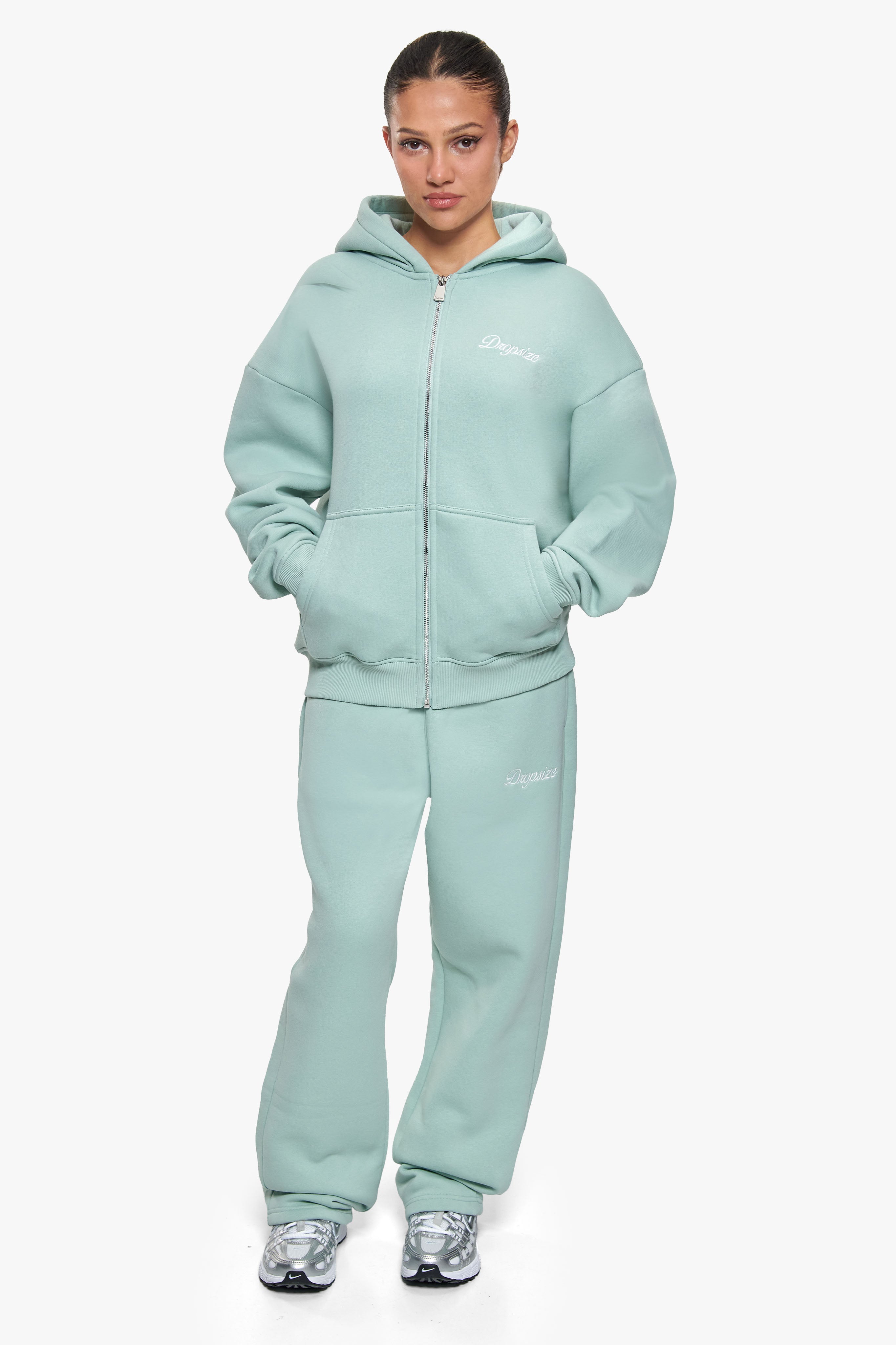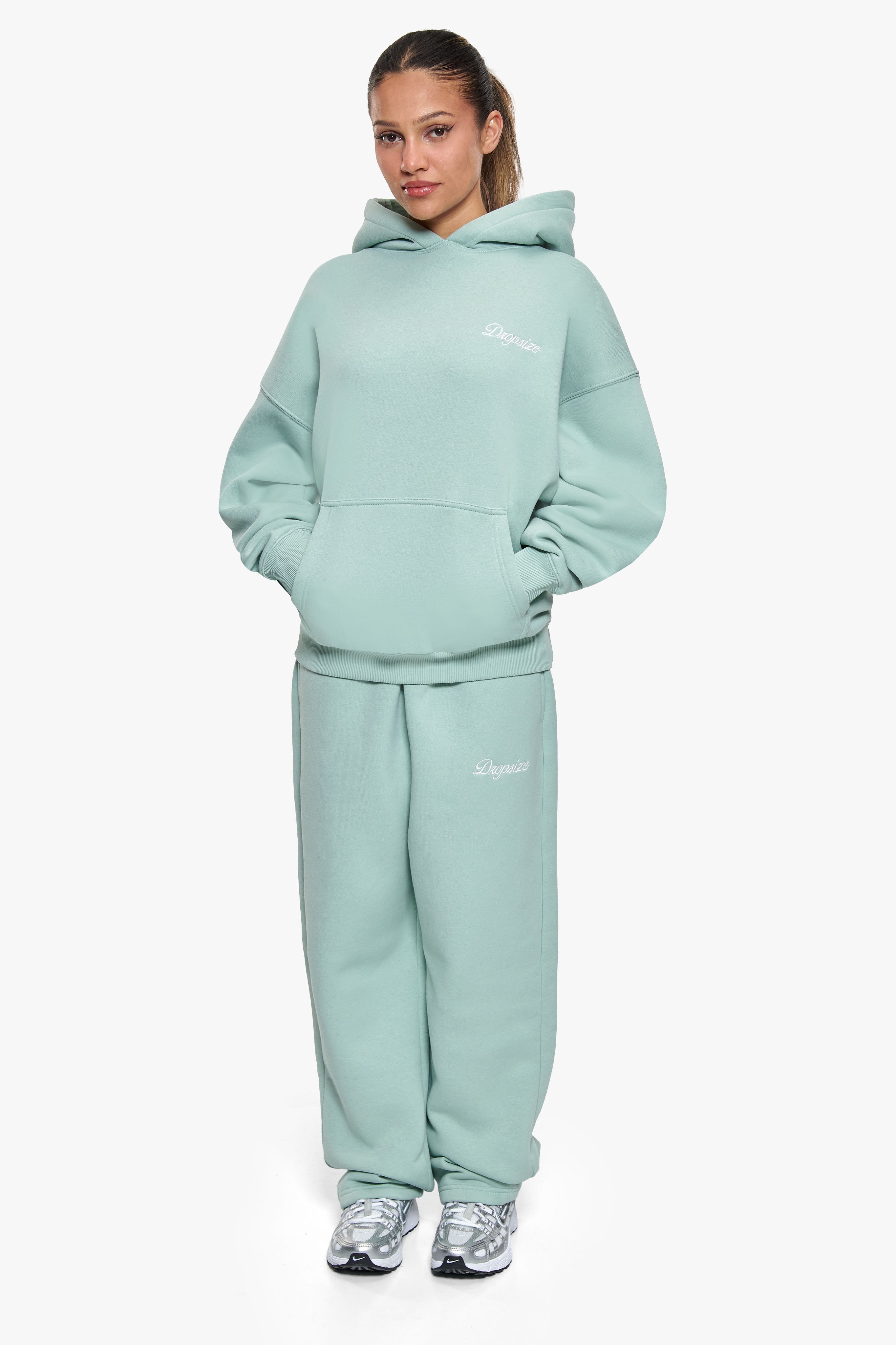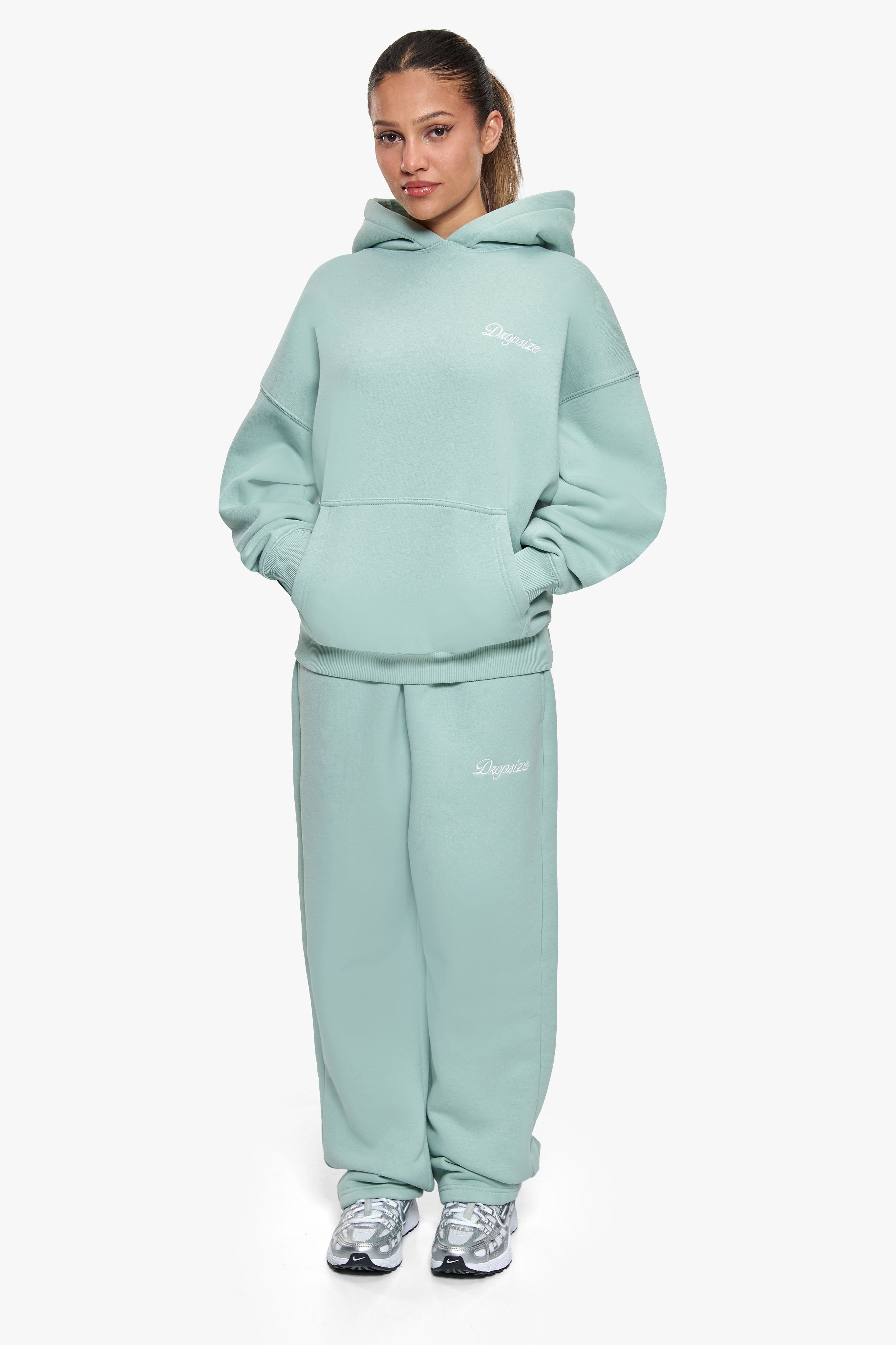 WOMEN CONTRAST EMBO HOODIE SAFARI GREEN
