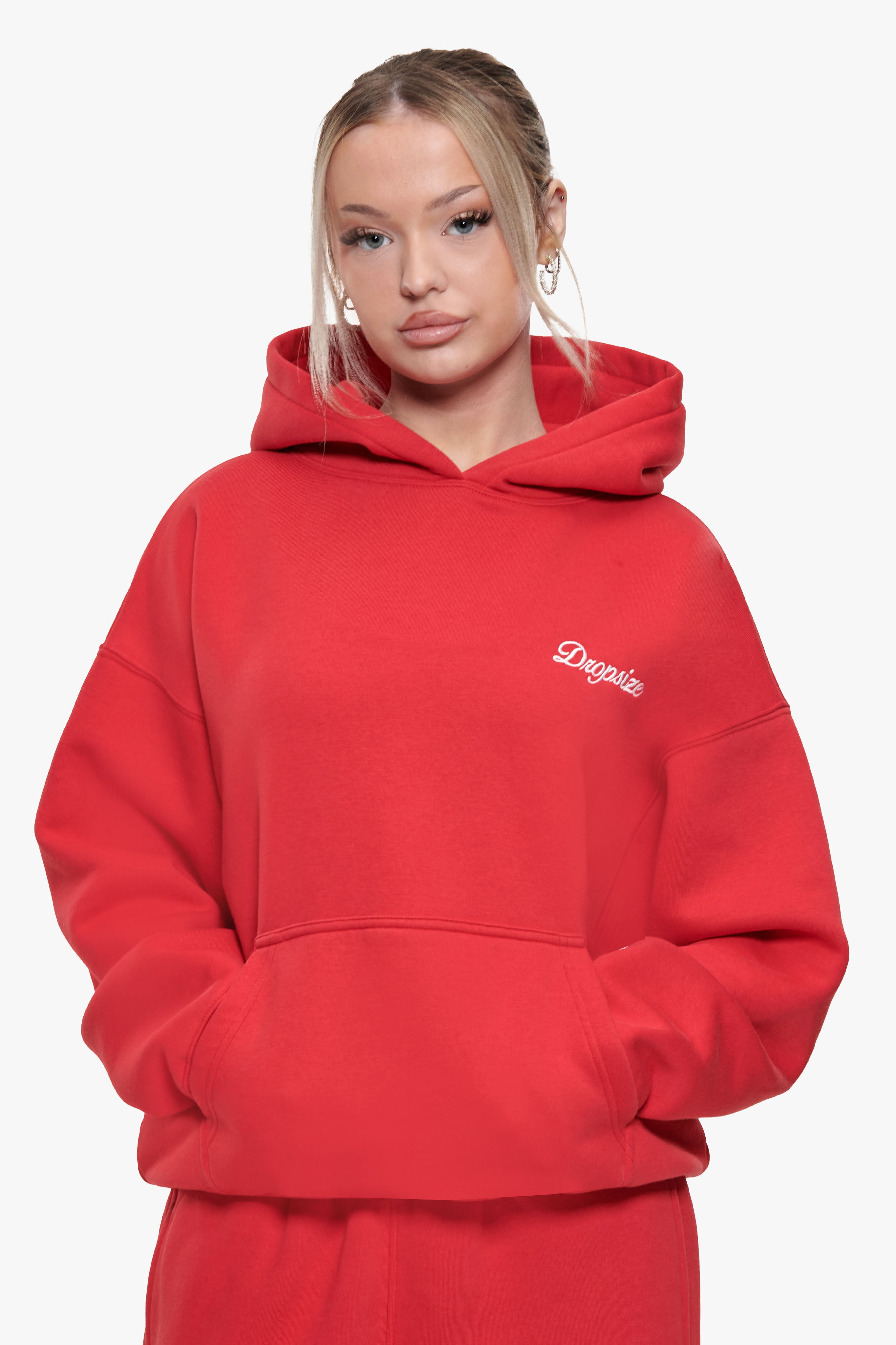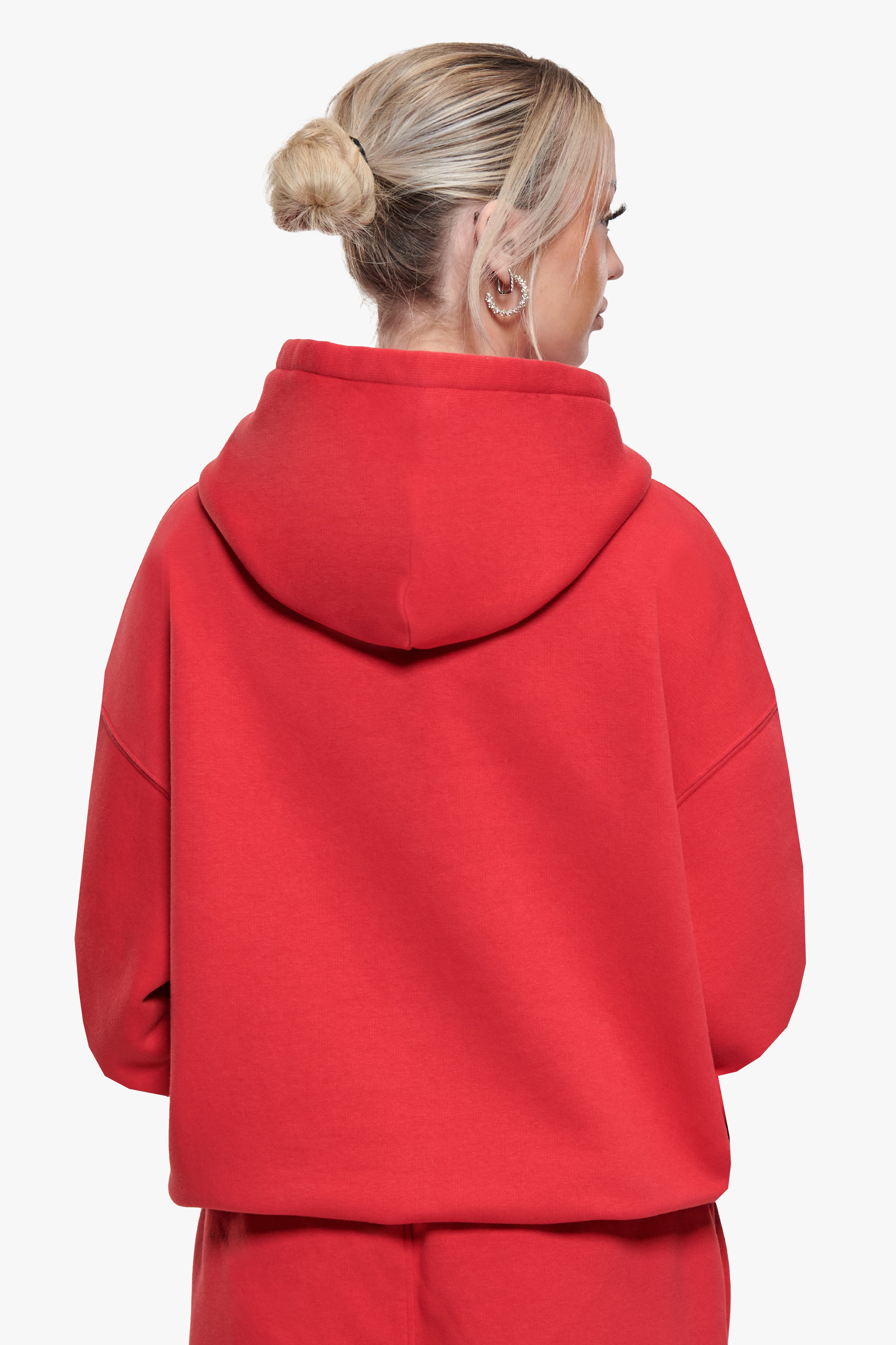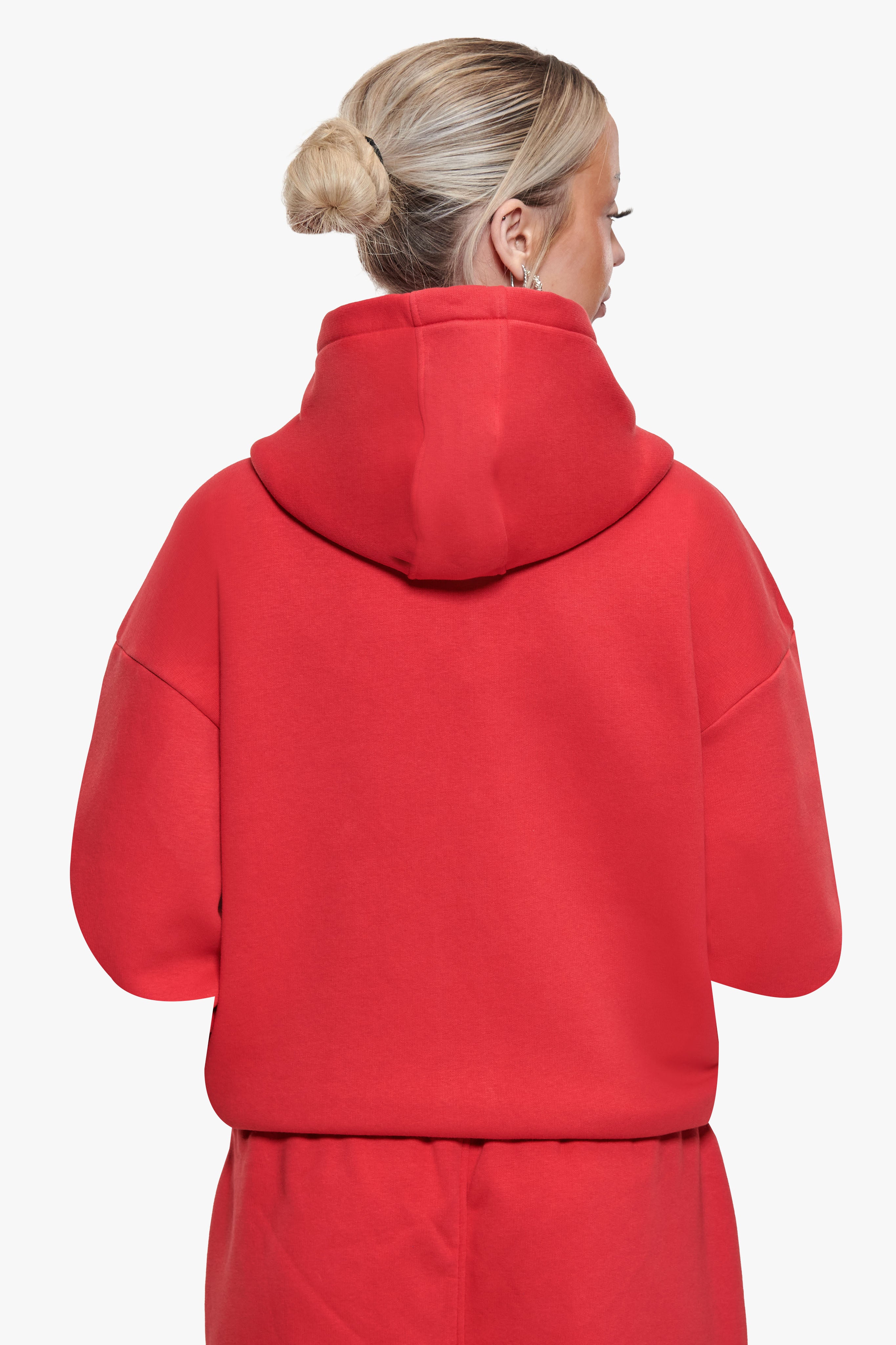 WOMEN CONTRAST EMBO HOODIE RED