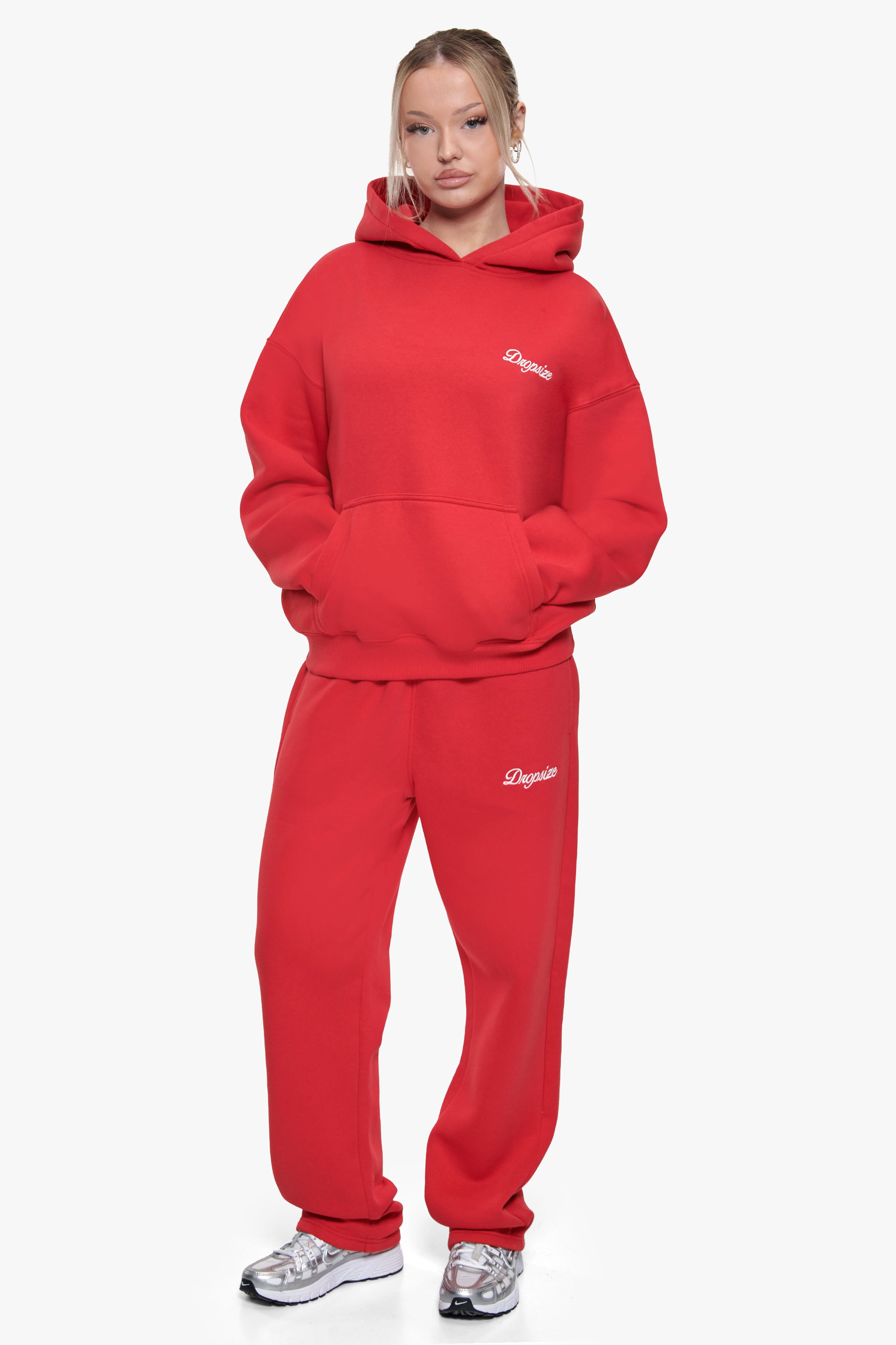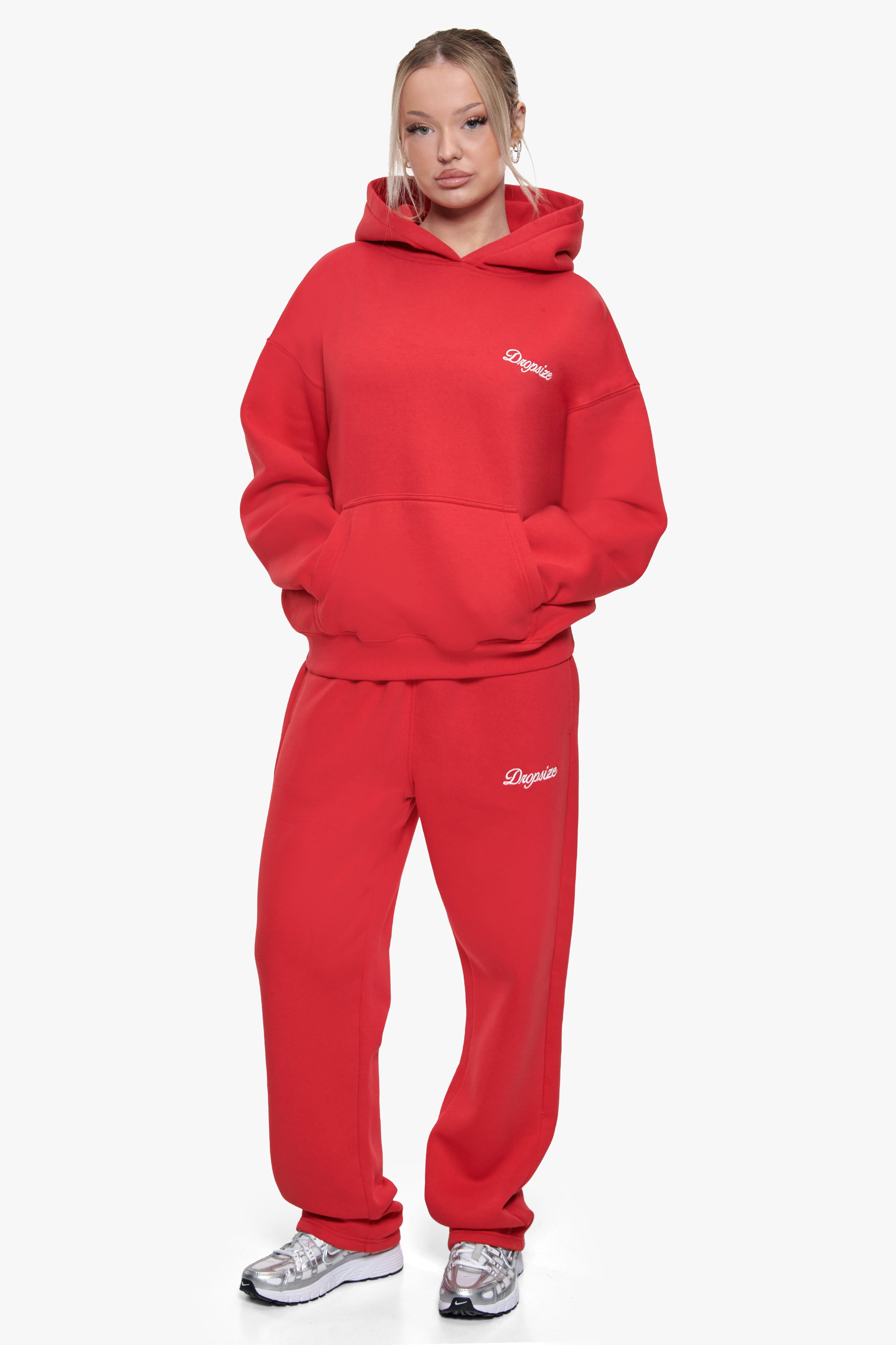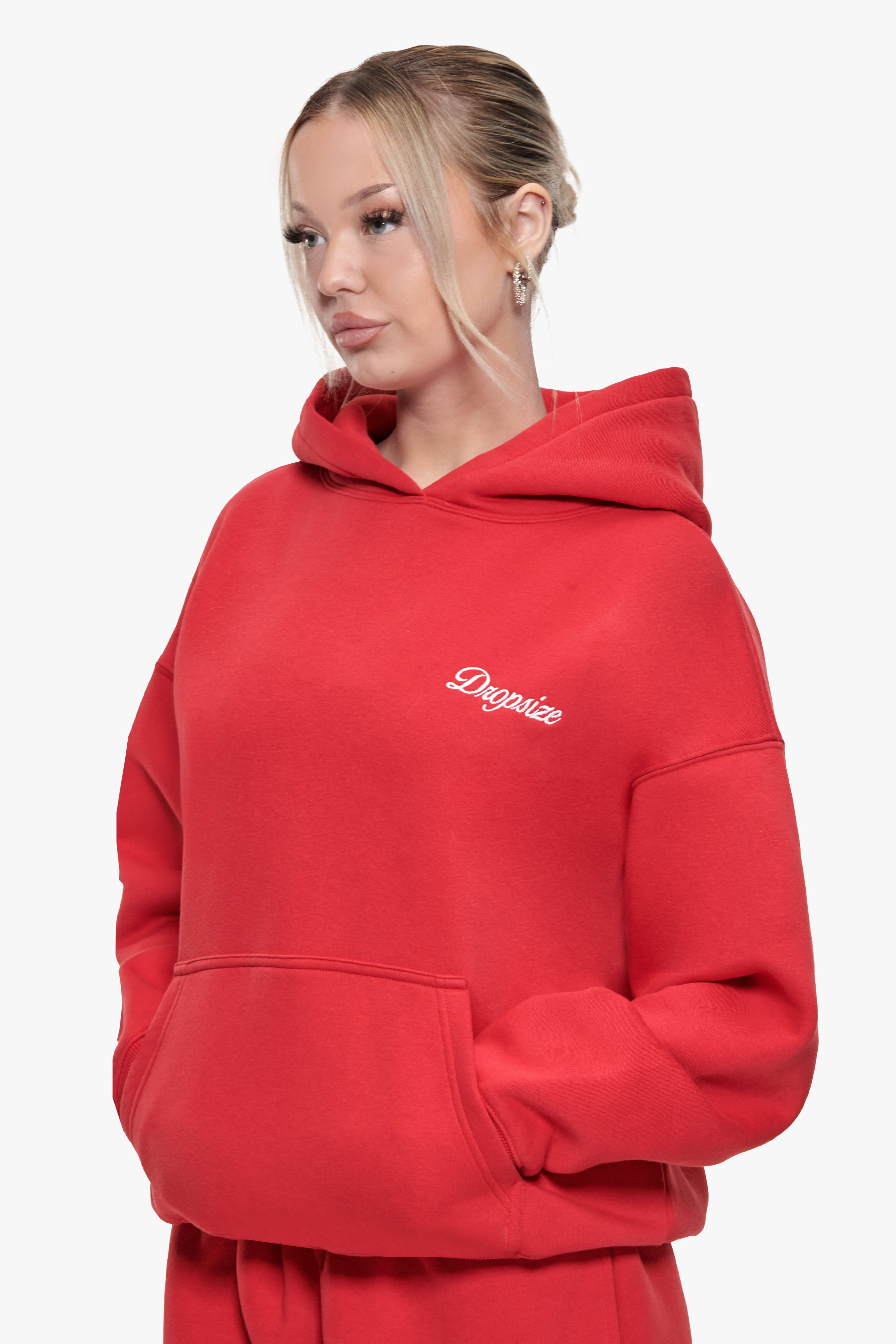WOMEN CONTRAST EMBO HOODIE RED