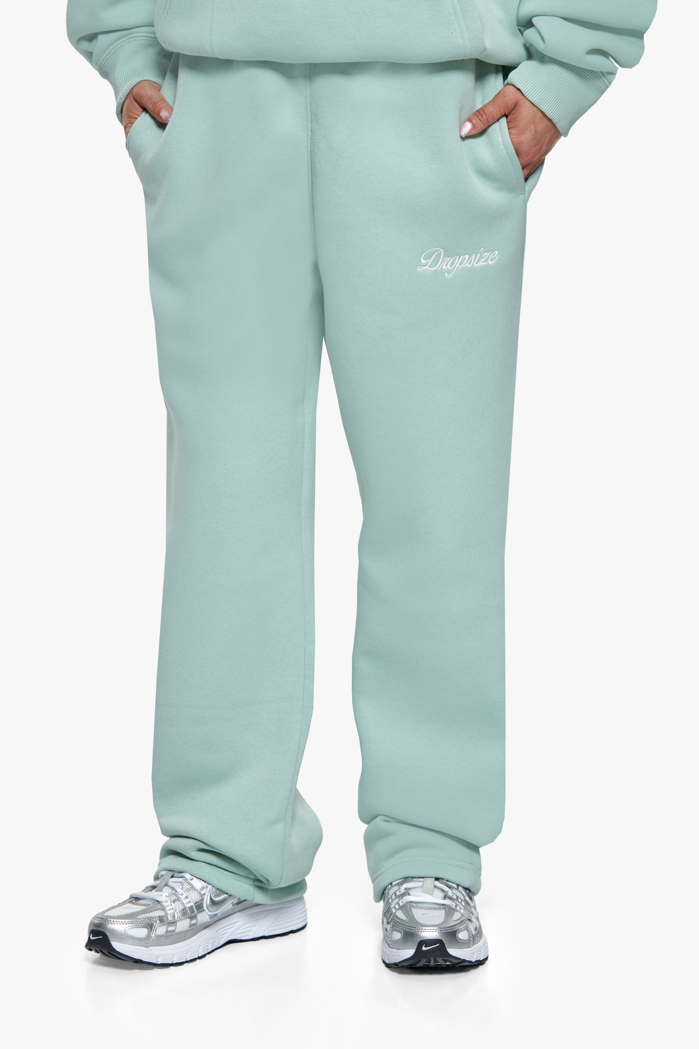 WOMEN CONTRAST OPEN LEG JOGGER BABY BLUE