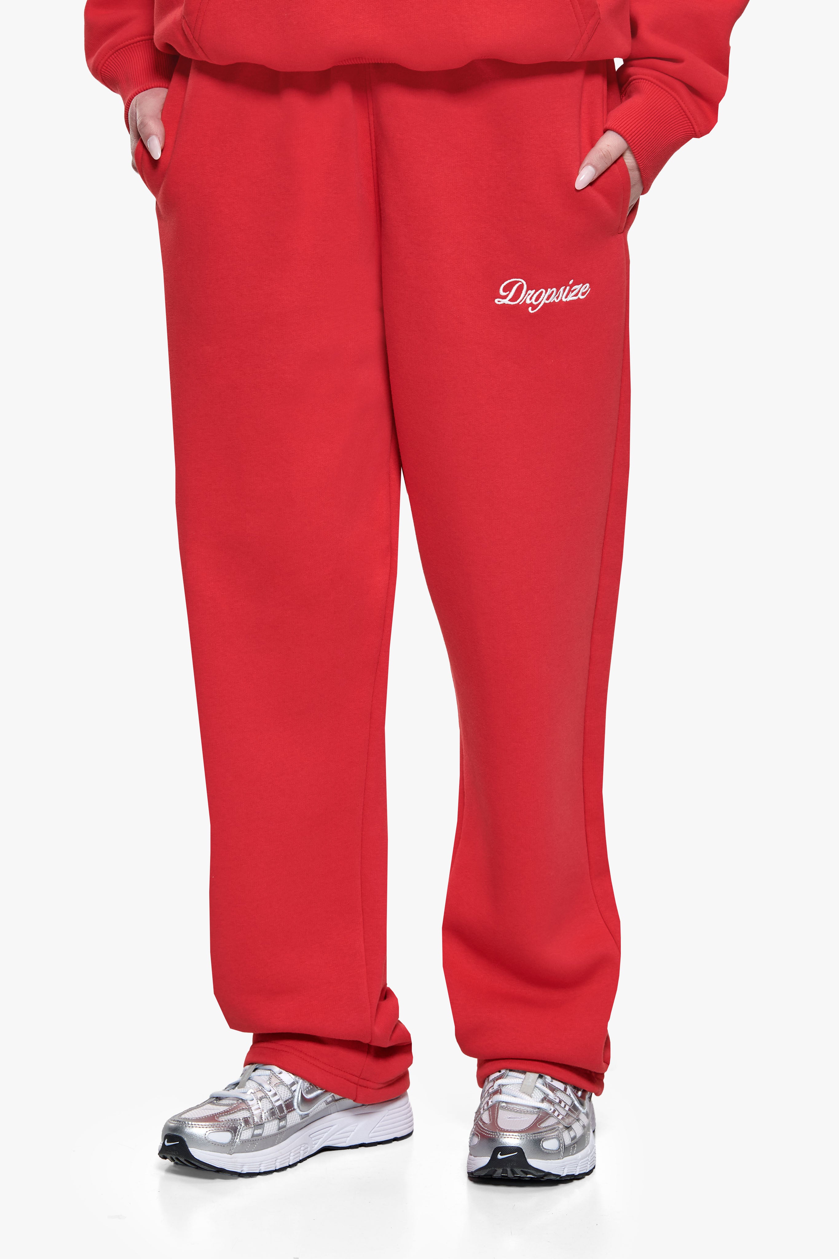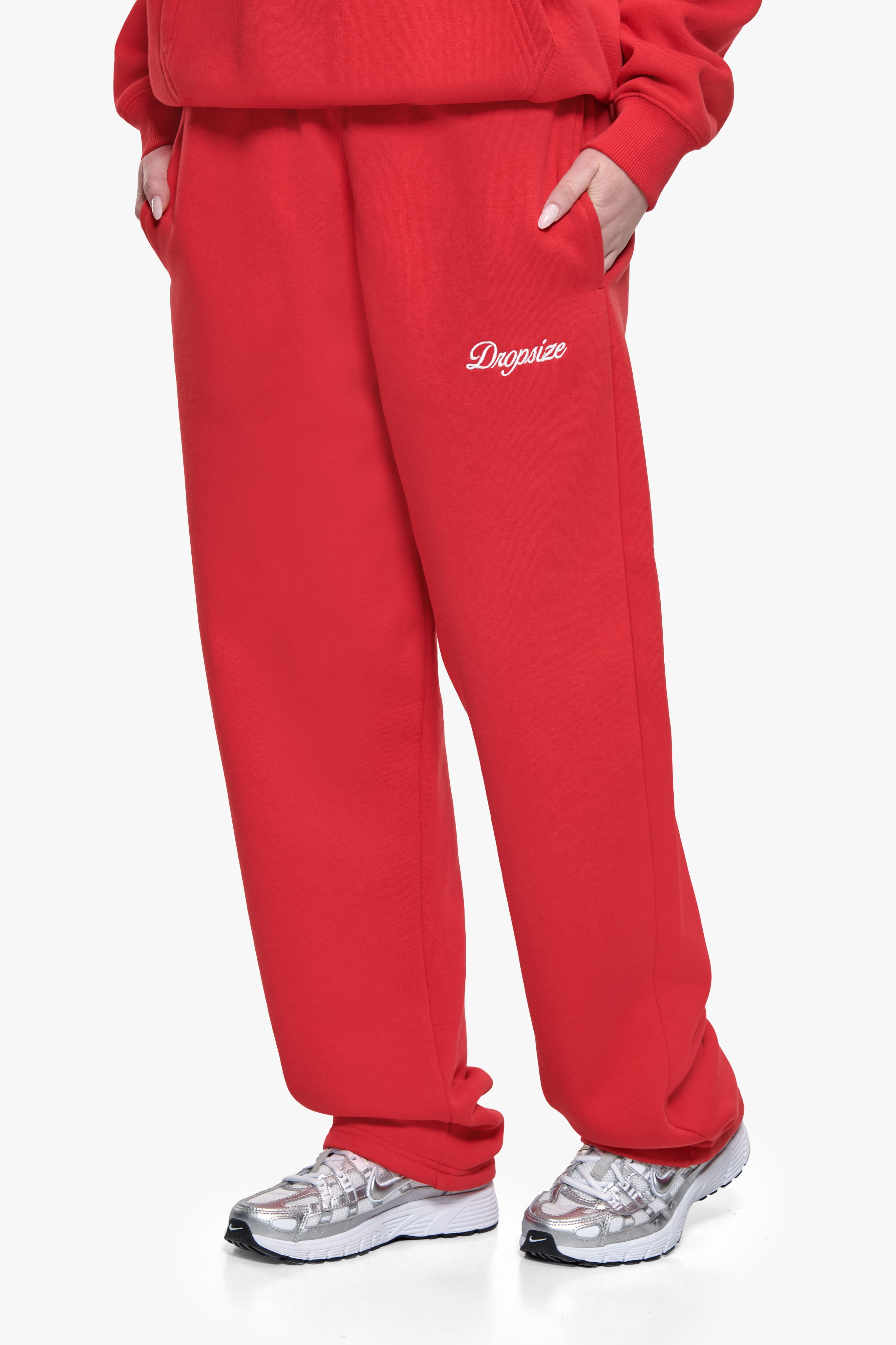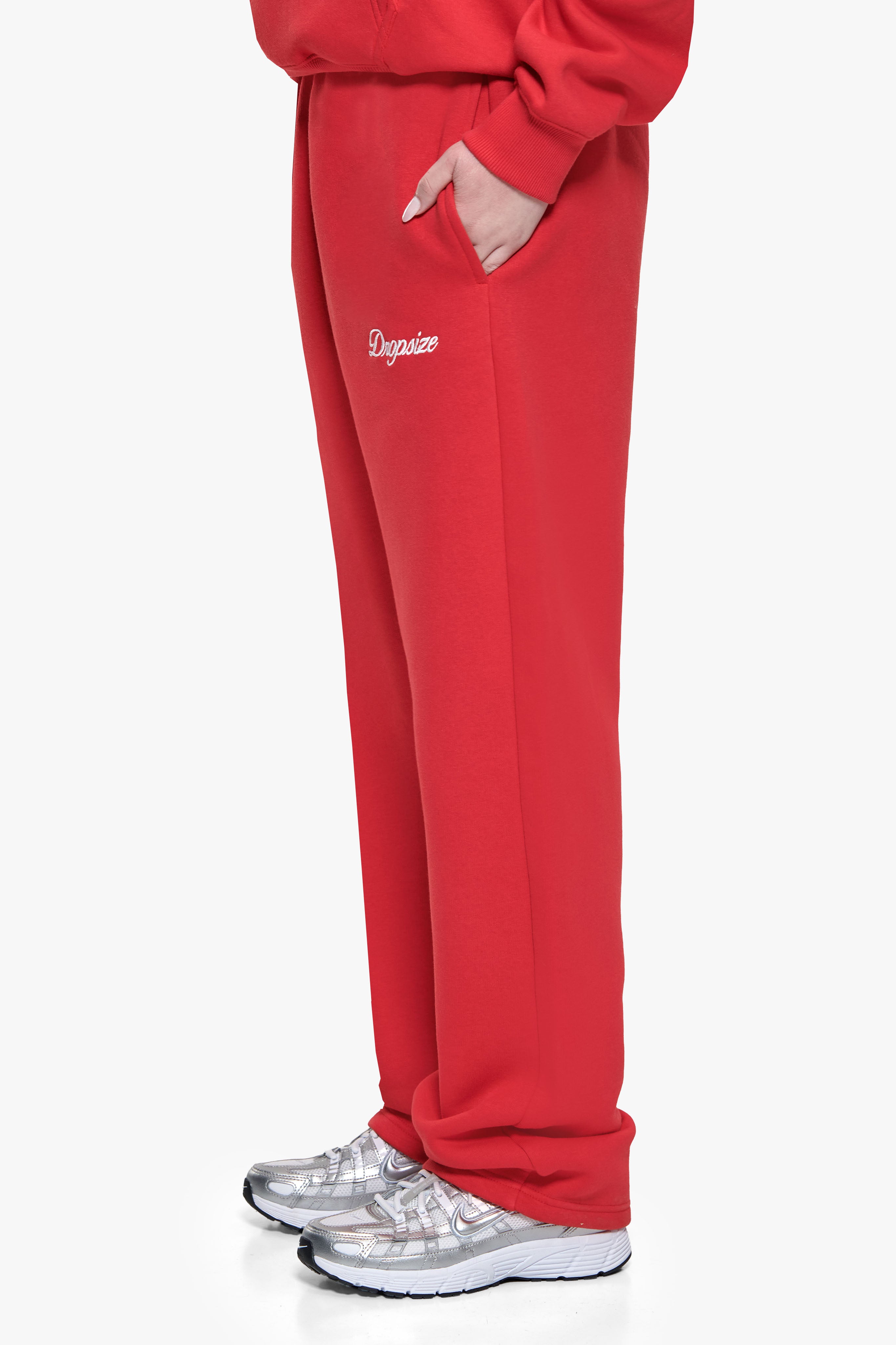 WOMEN CONTRAST OPEN LEG JOGGER RED