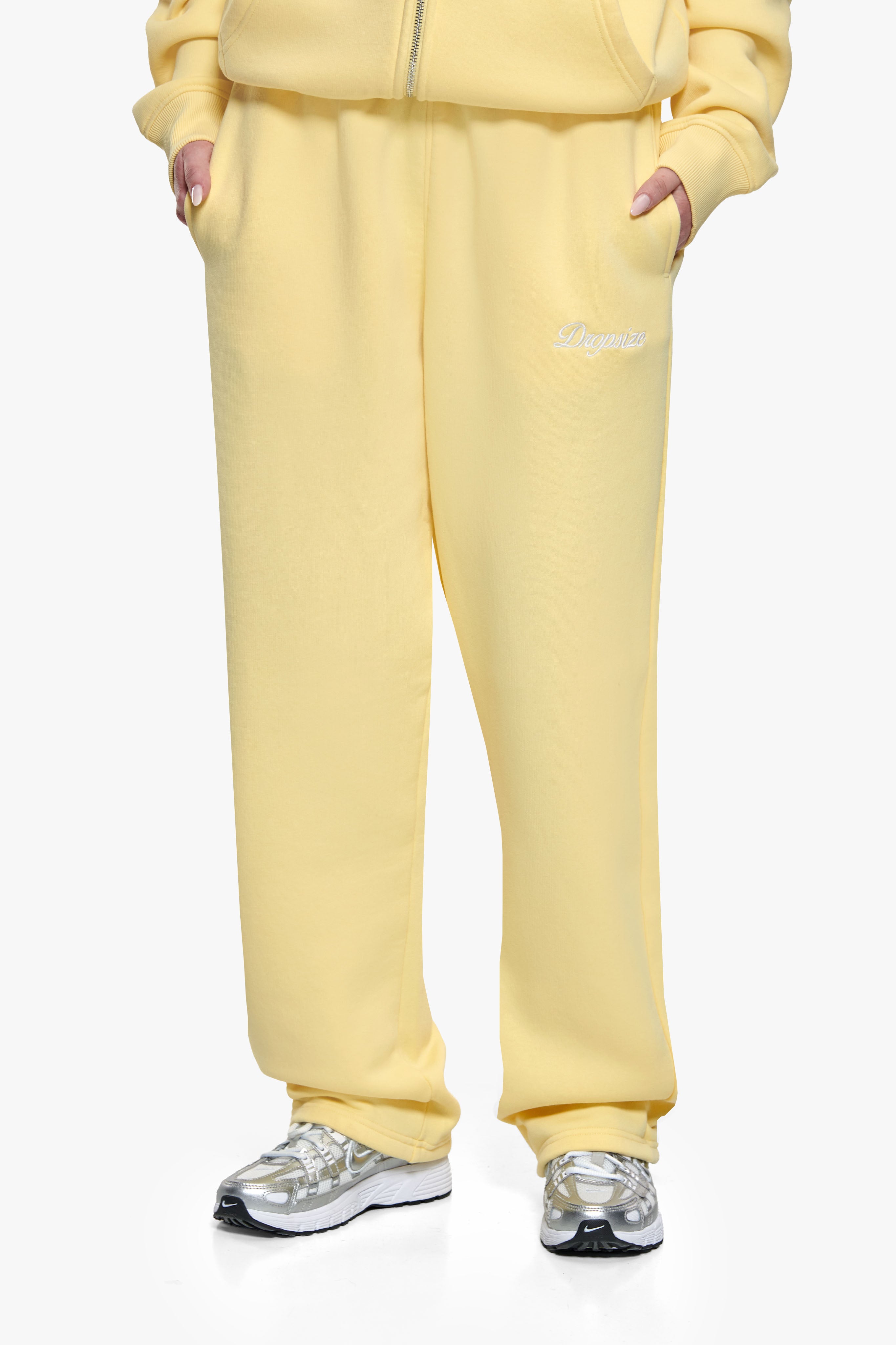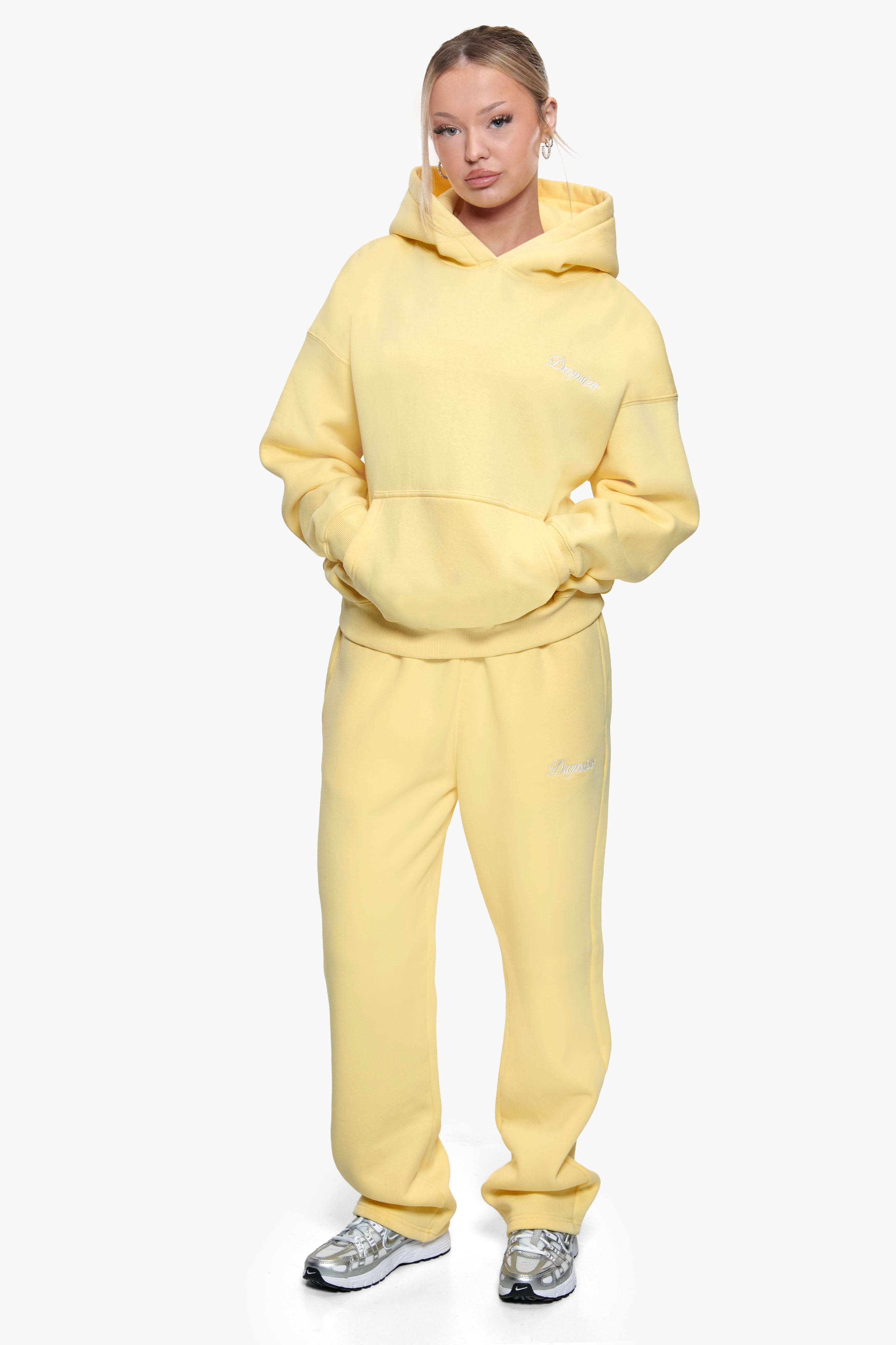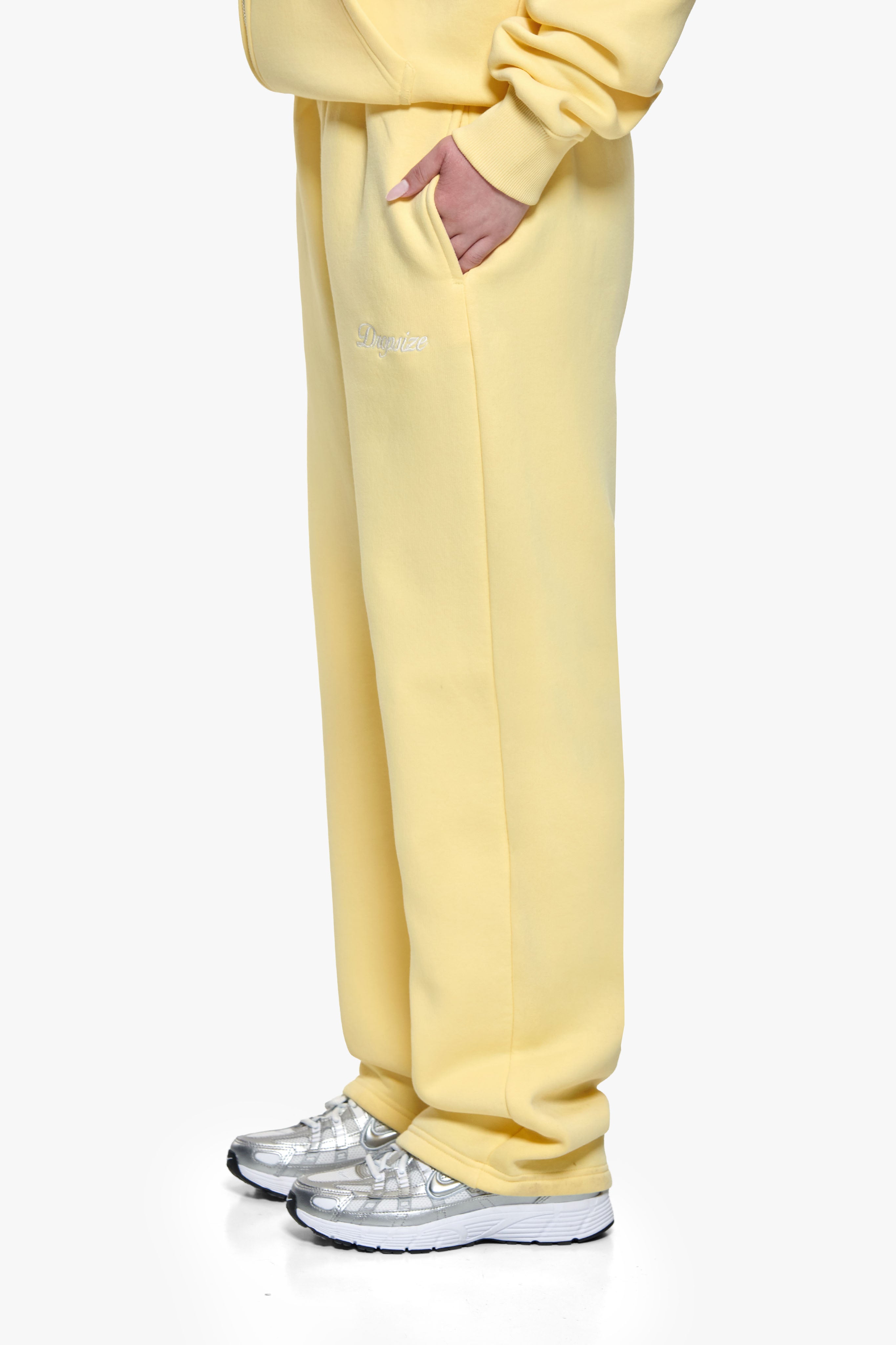 WOMEN CONTRAST OPEN LEG JOGGER WASHED YELLOW