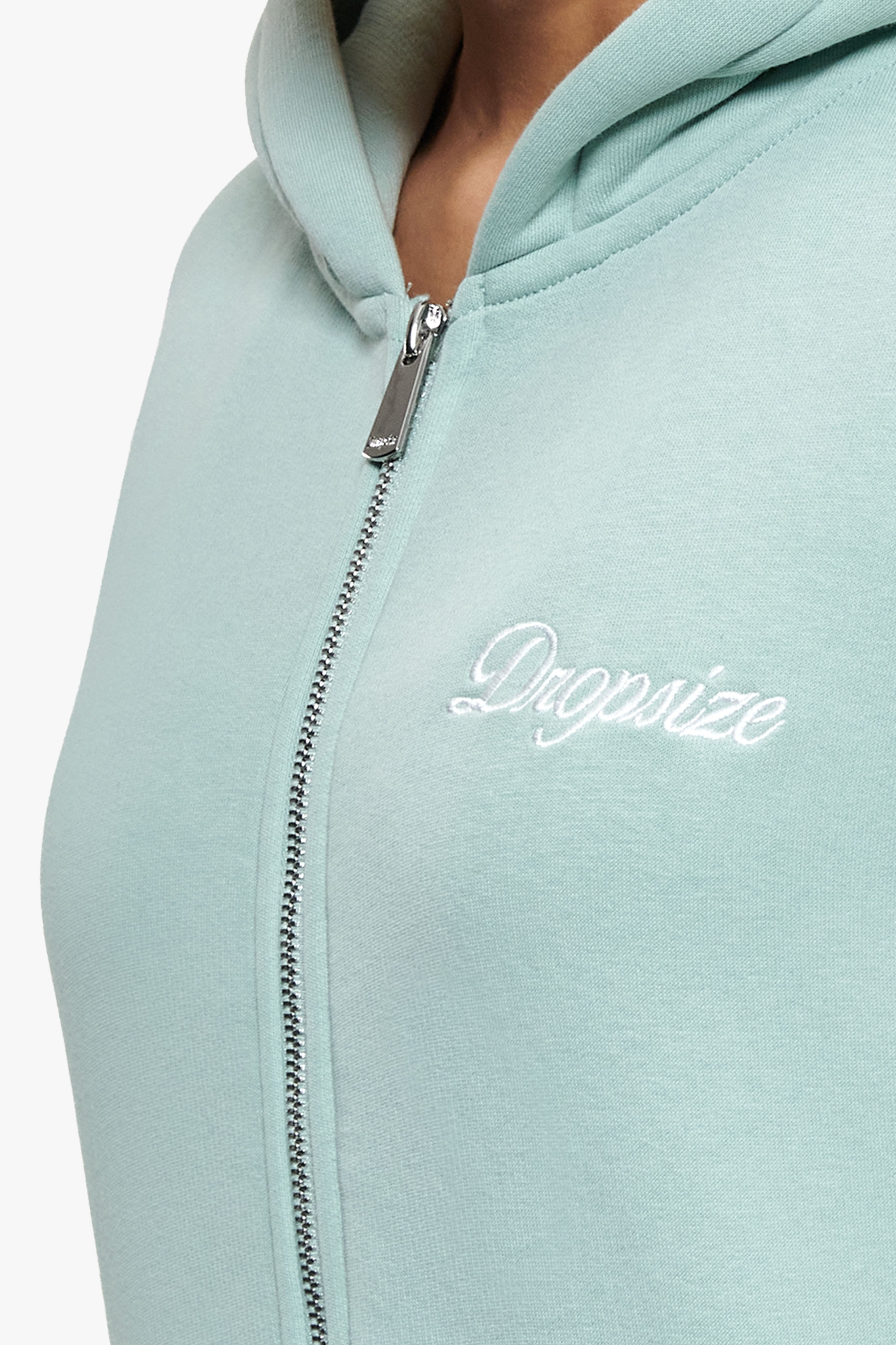 WOMEN CONTRAST EMBO ZIP HOODIE HARBOR GREY