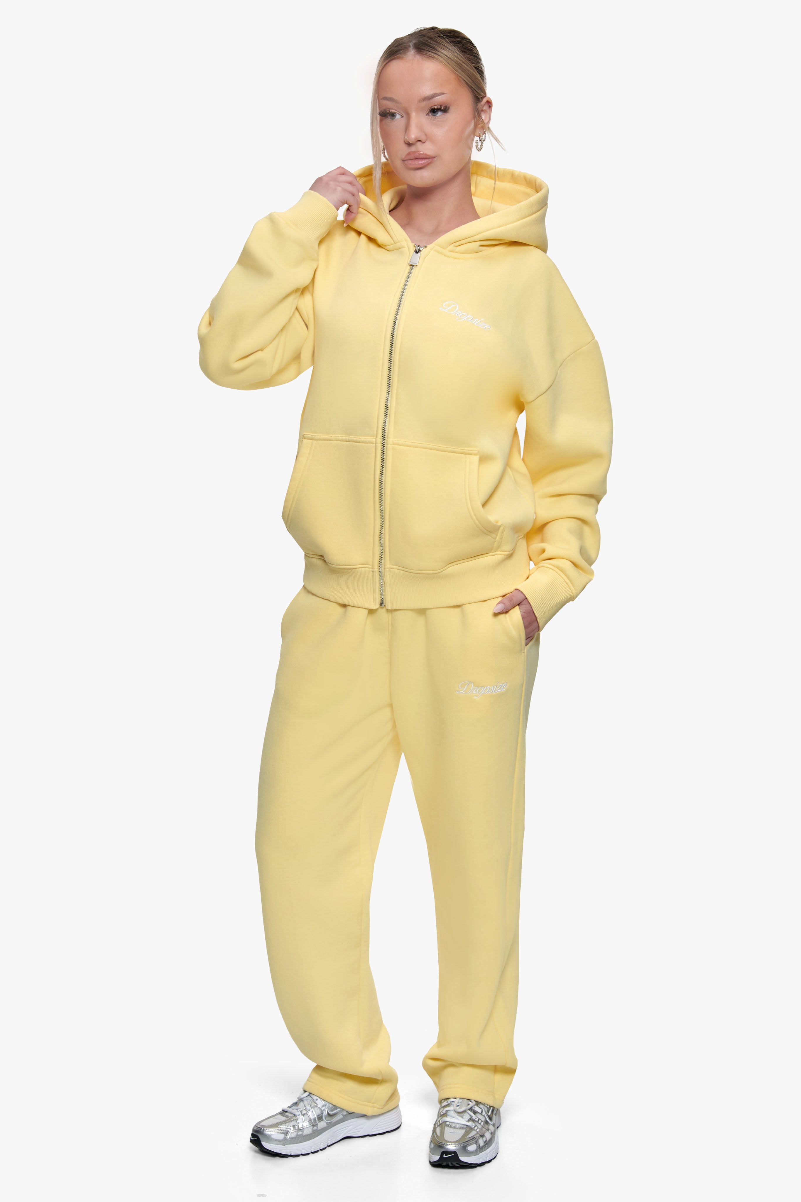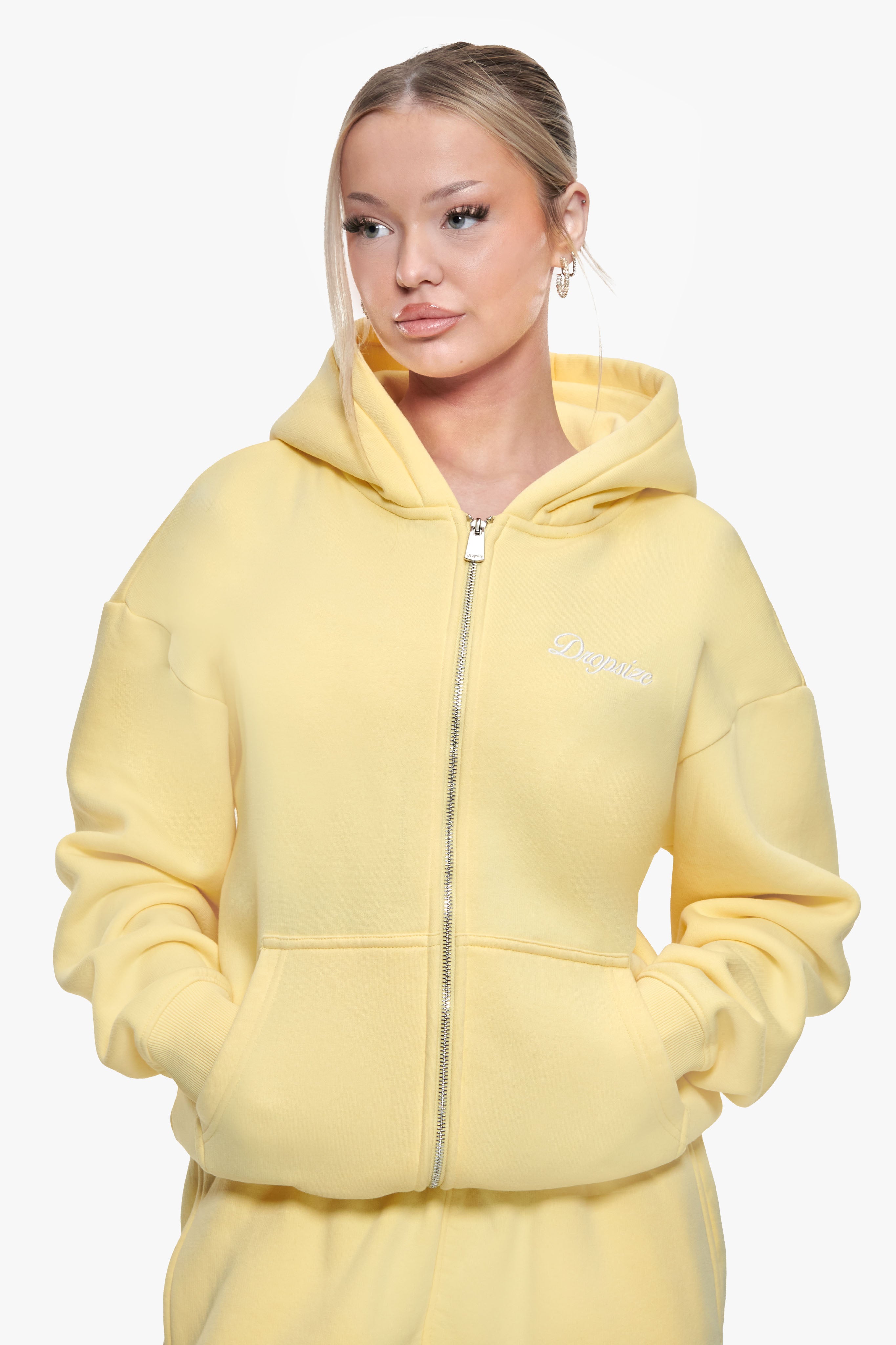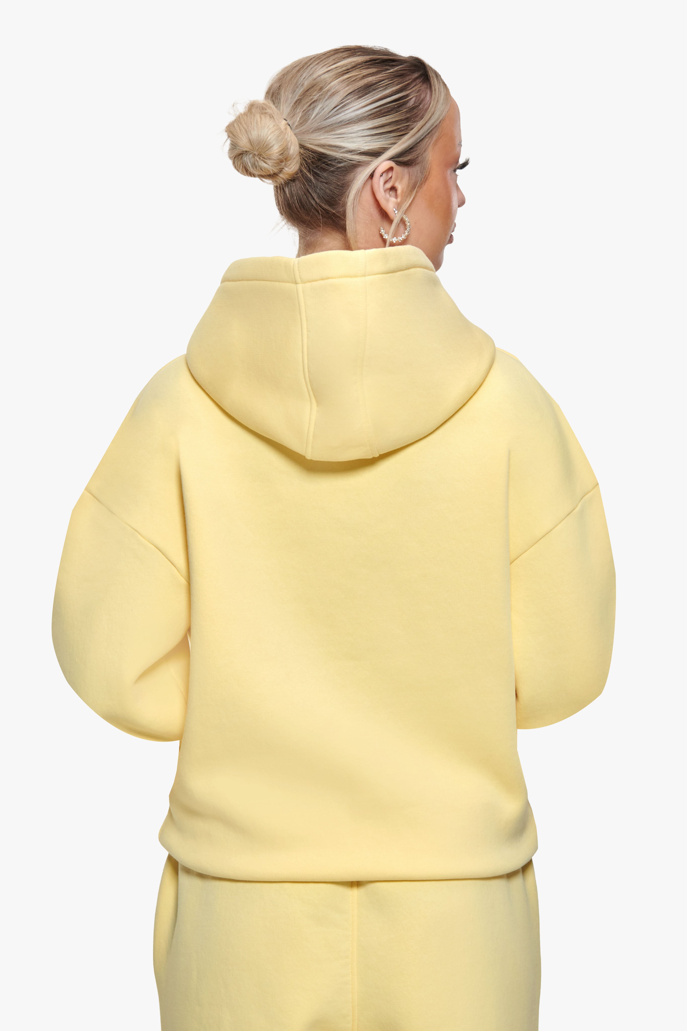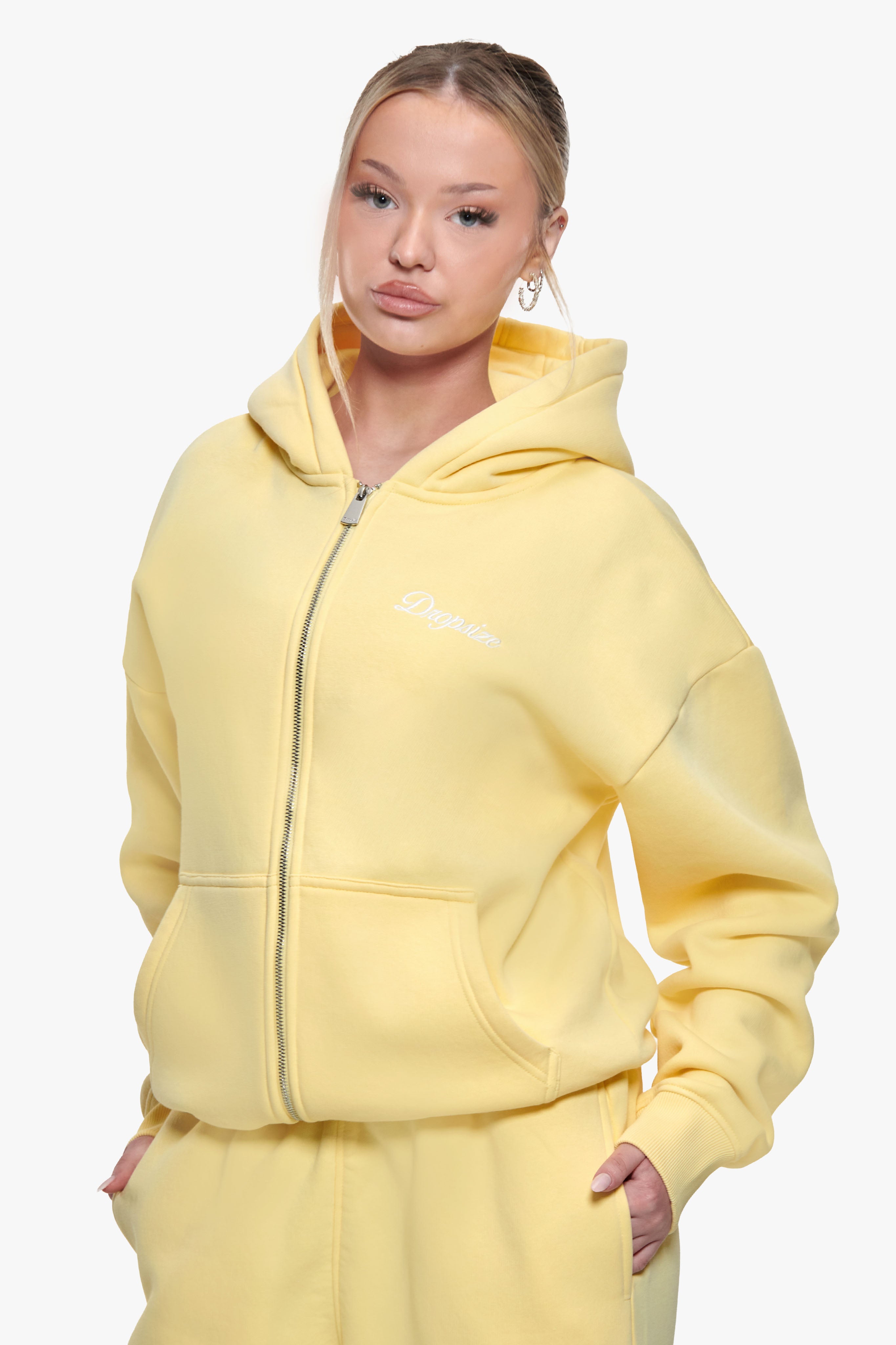 WOMEN CONTRAST EMBO ZIP HOODIE WASHED YELLOW