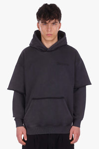 HEAVY OVERSIZE DOUBLE ARM HOODIE ACID WASHED BLACK