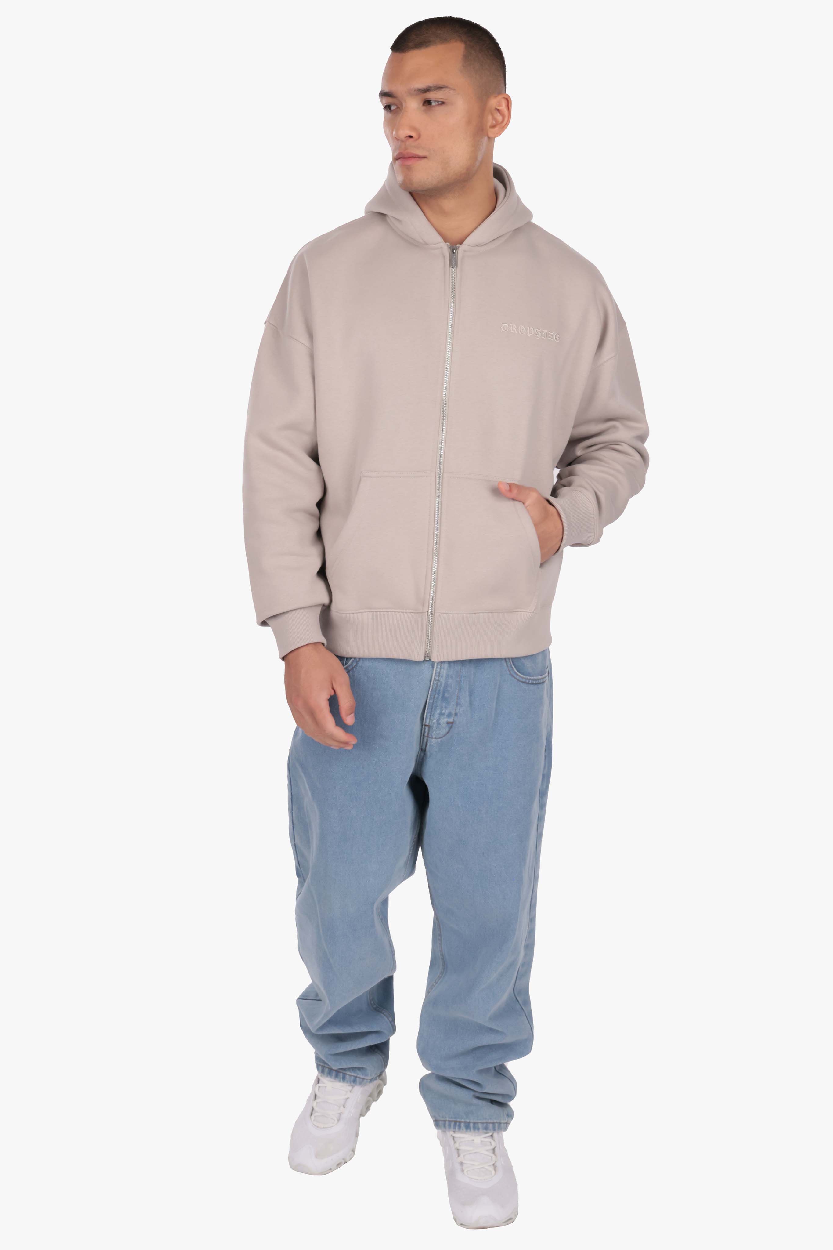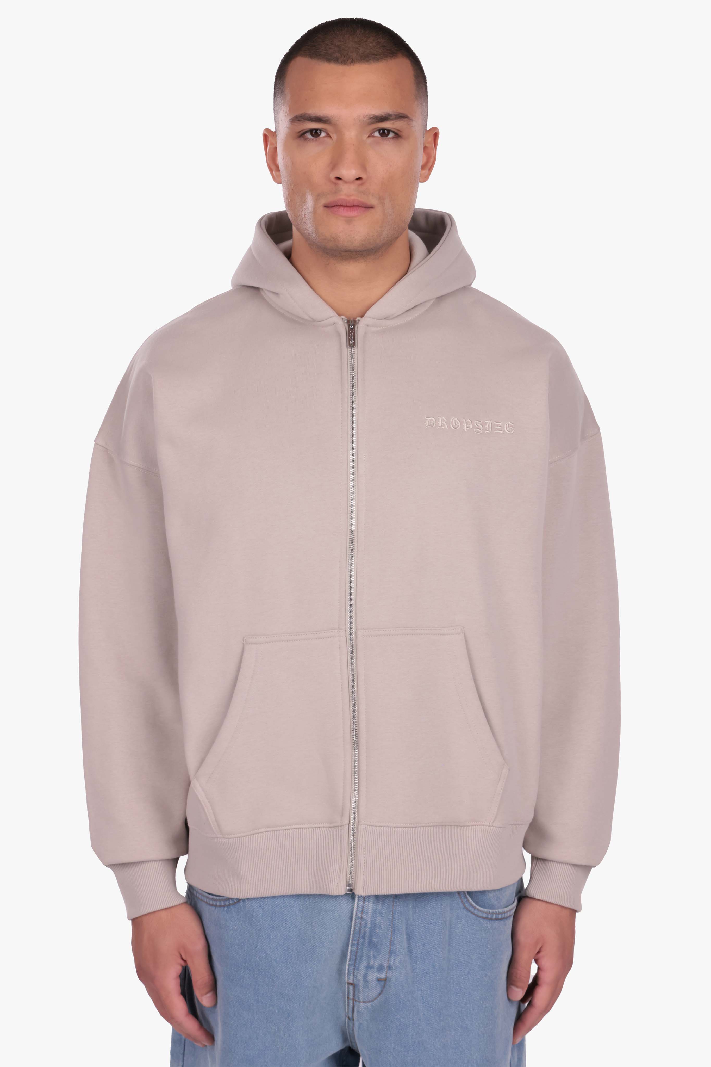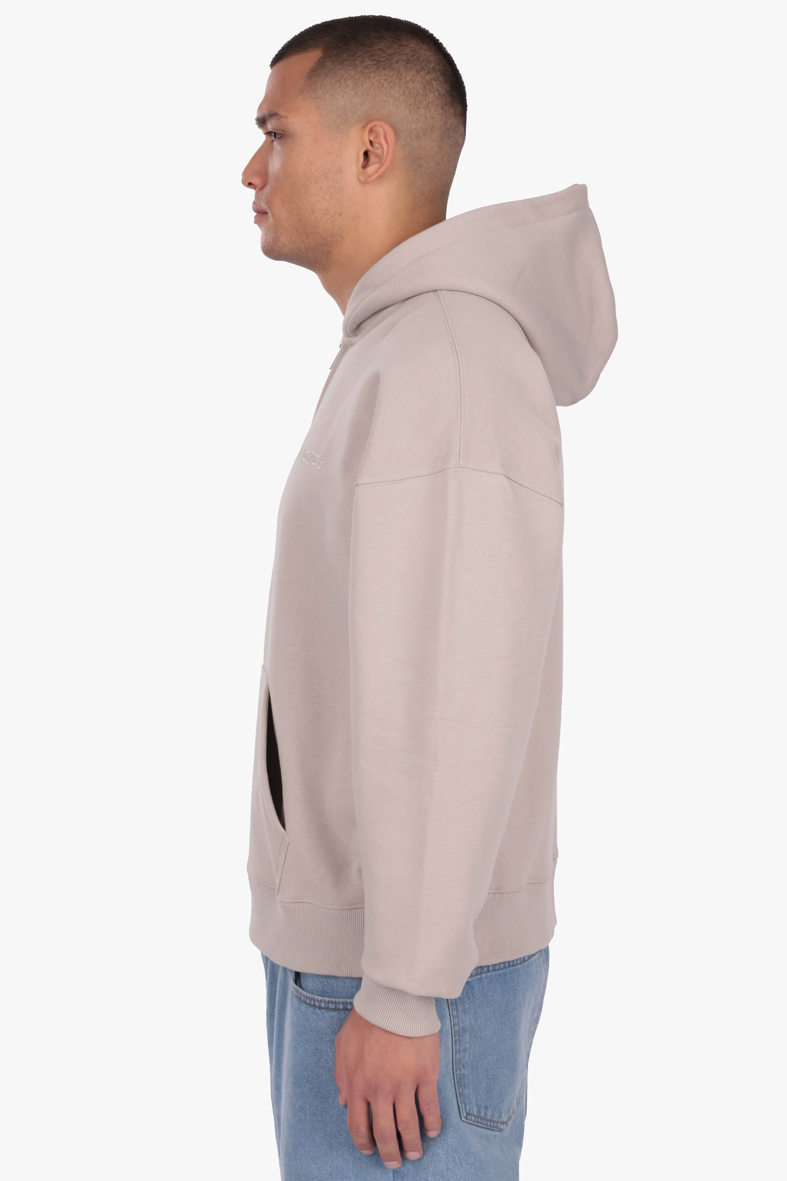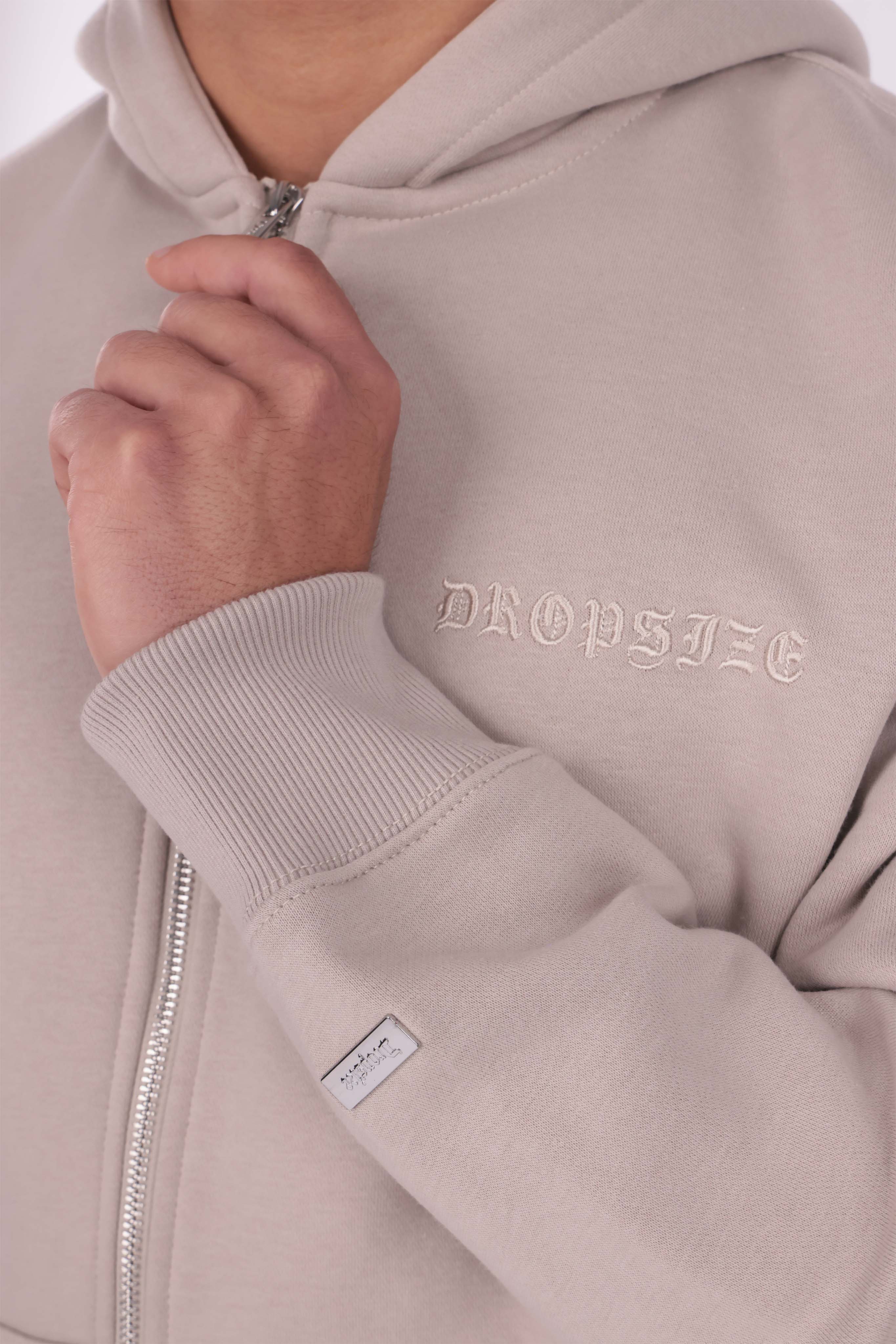 HEAVY OVERSIZE LOGO ZIP HOODIE BEIGE