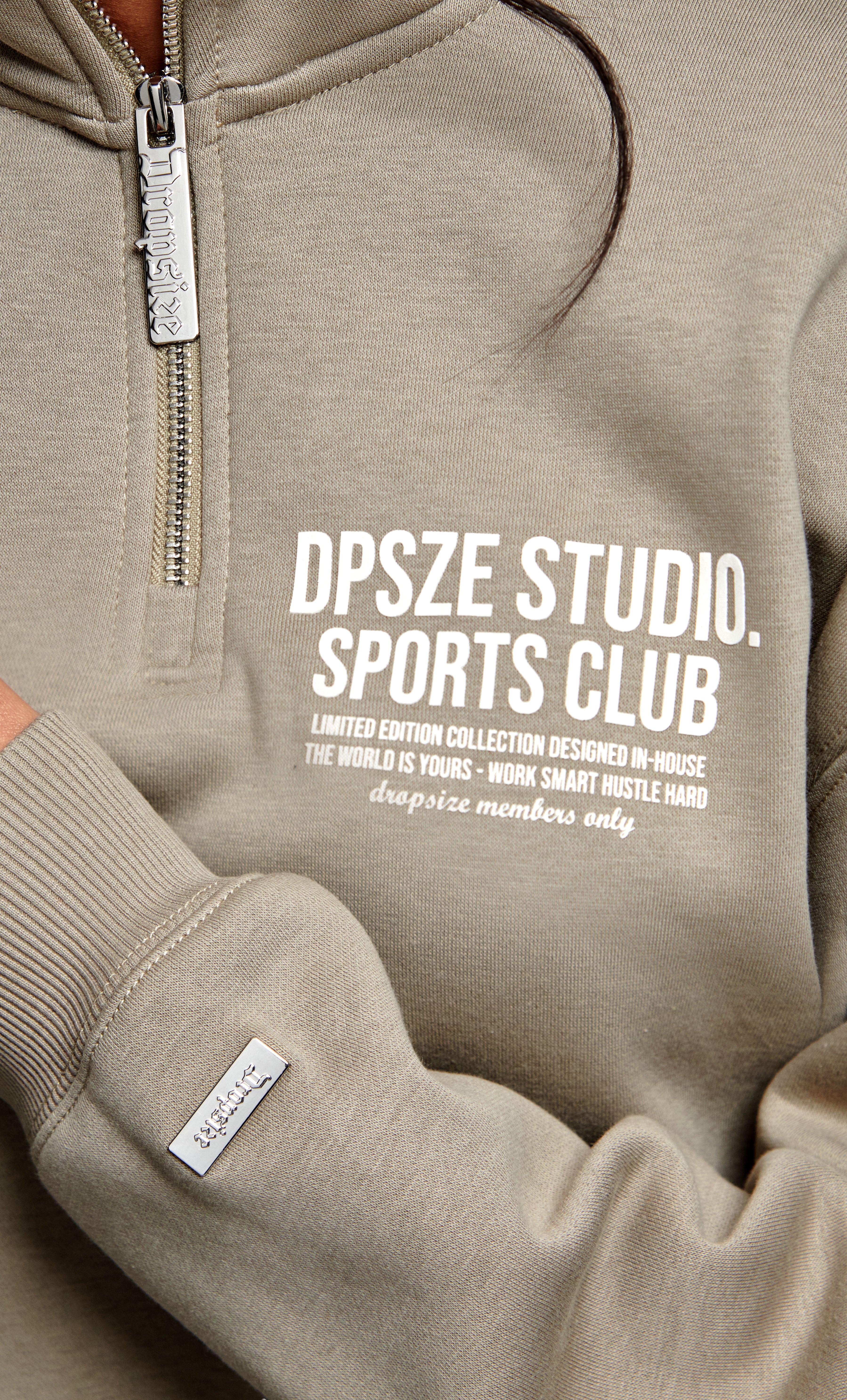 HEAVY OVERSIZED LADIES BACKPRINT HALF ZIP HOODIE KHAKI