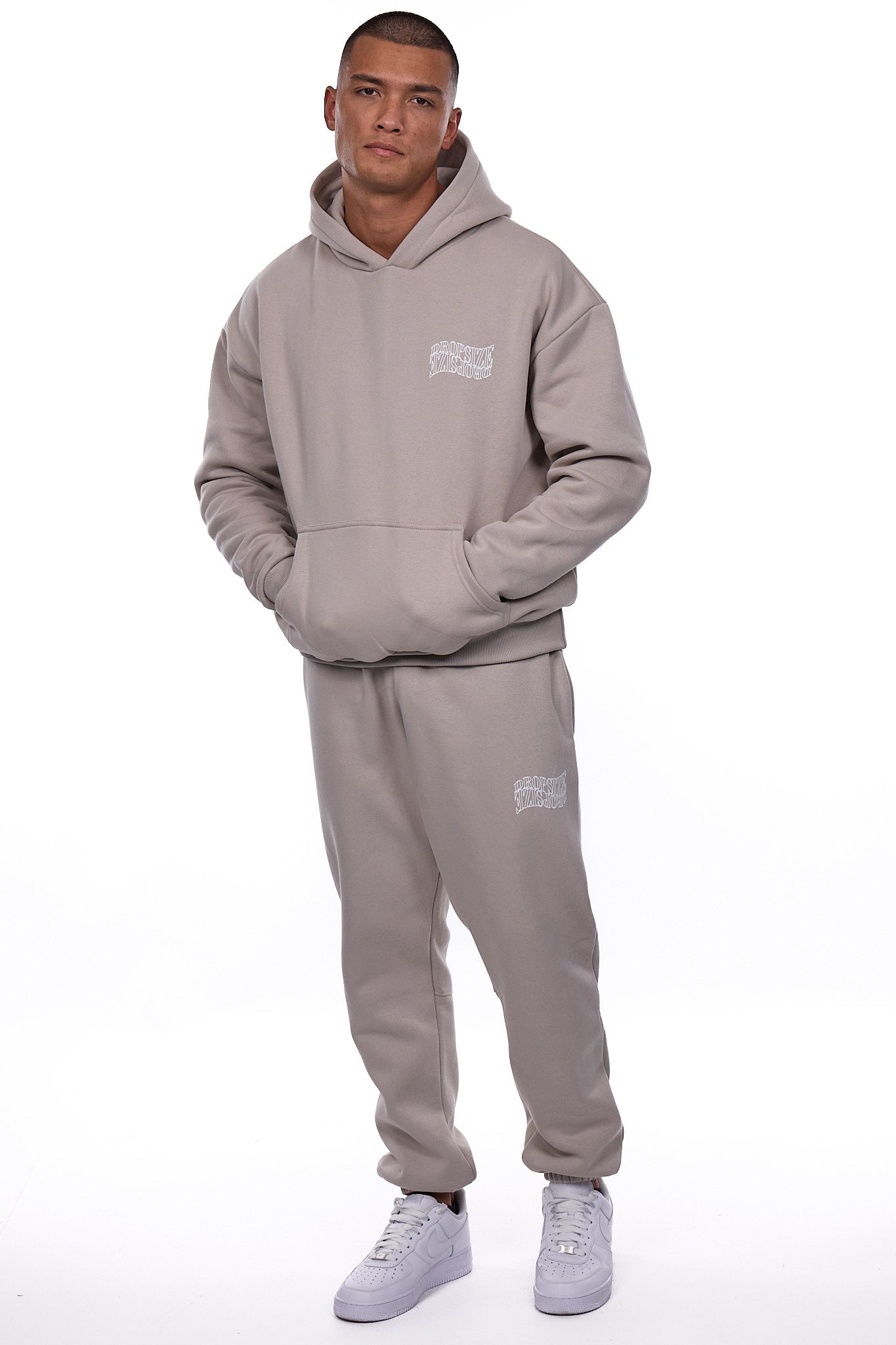 HEAVY OVERSIZE MIRRORED LOGO HOODIE PUMIC STONE