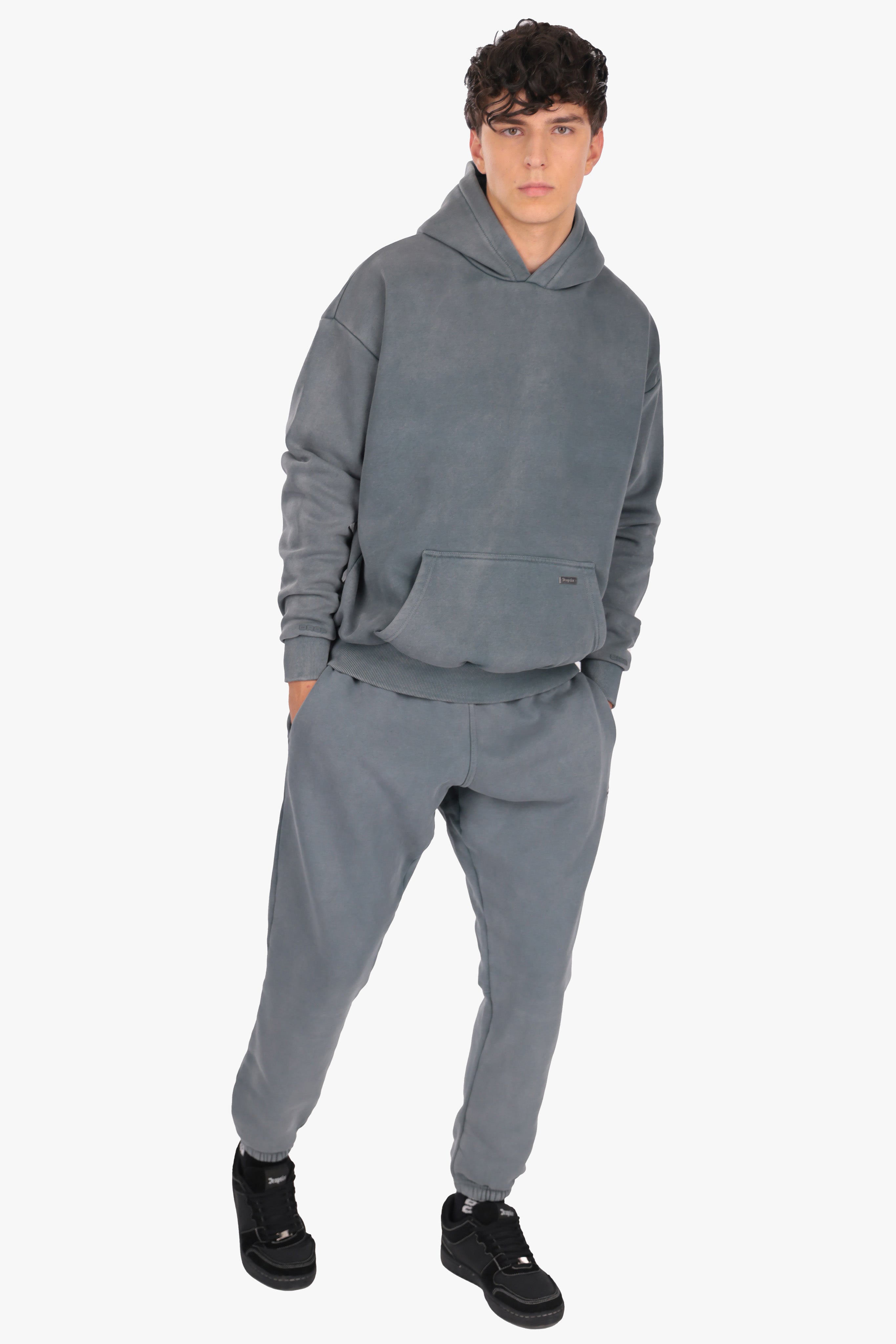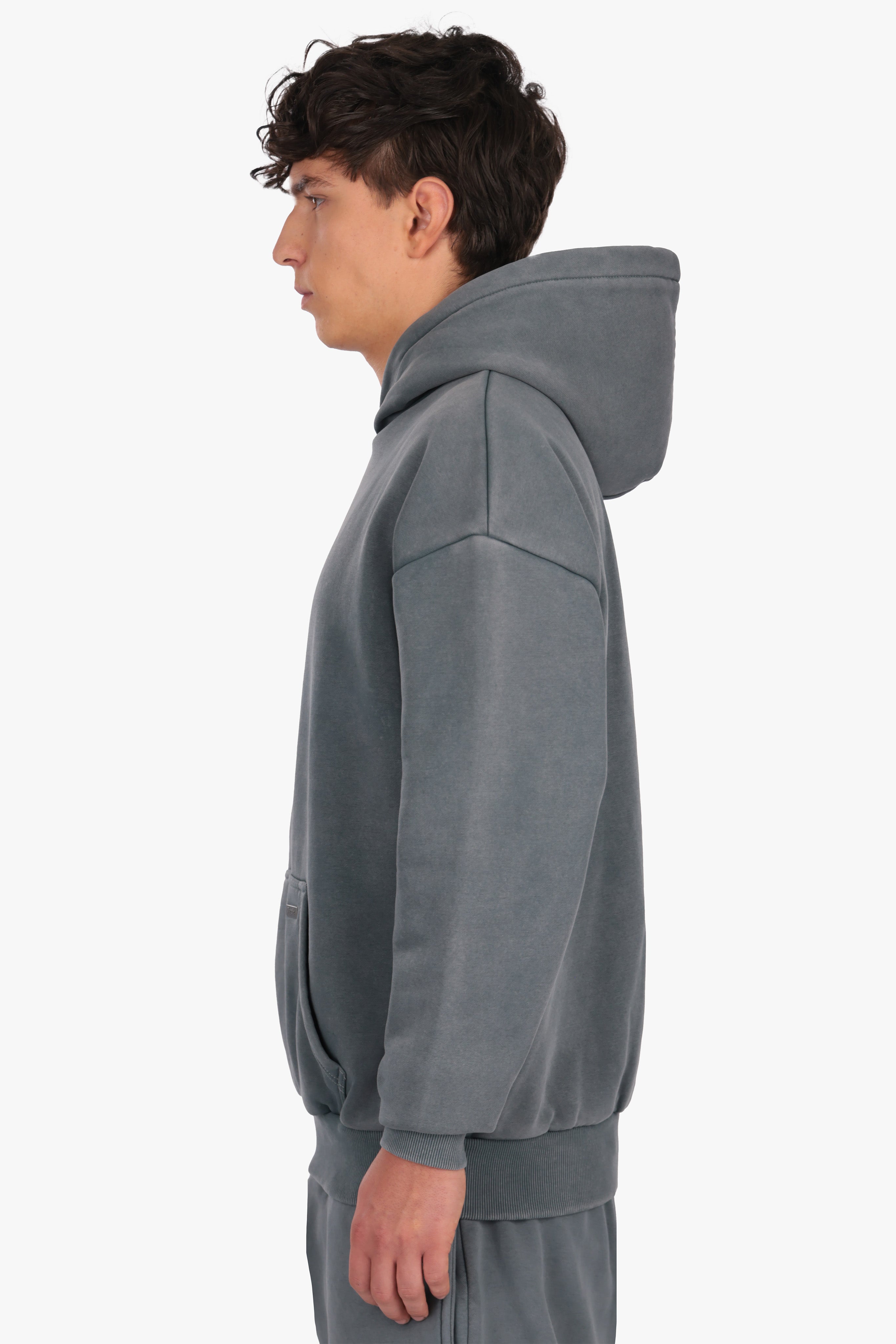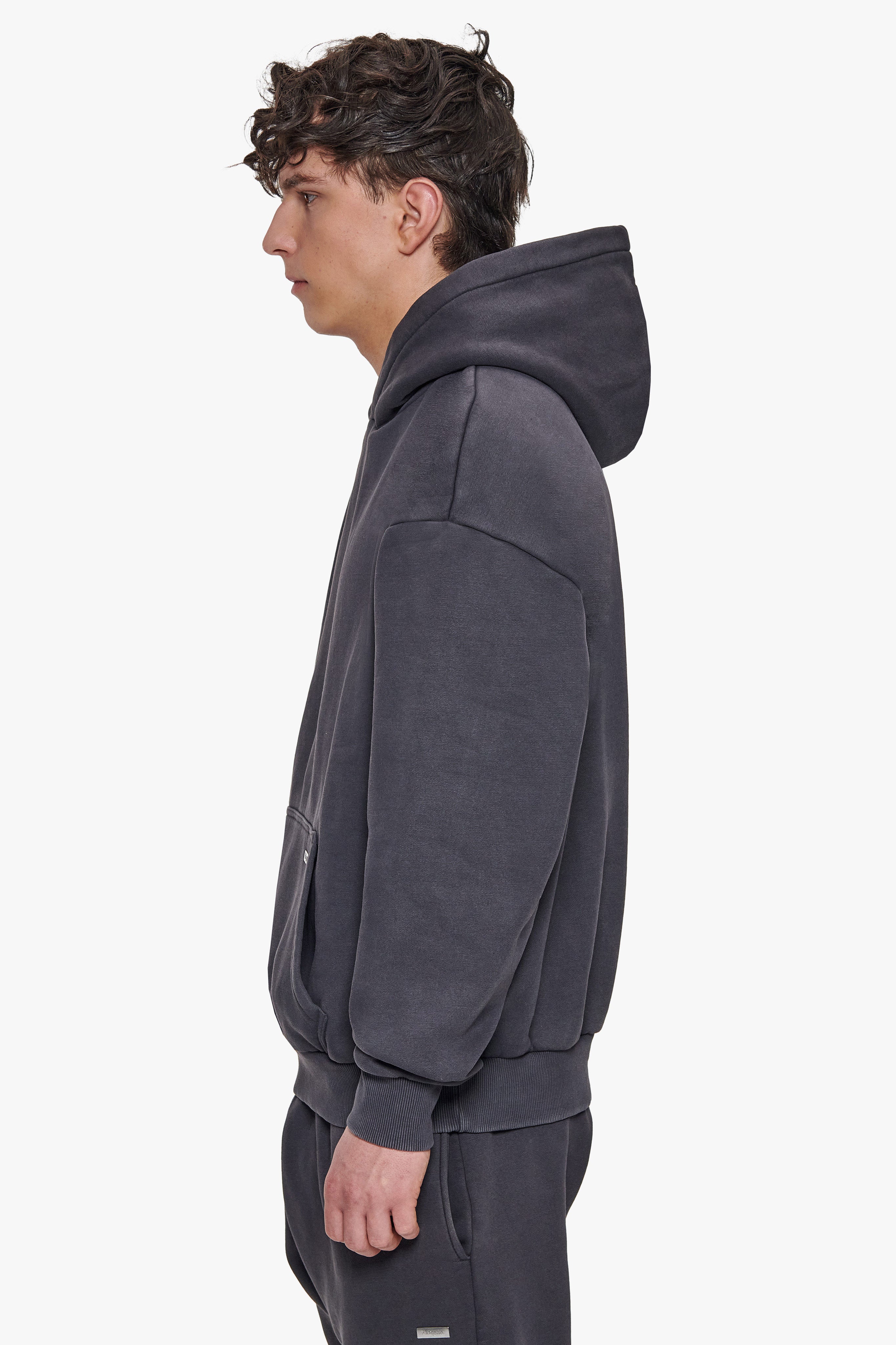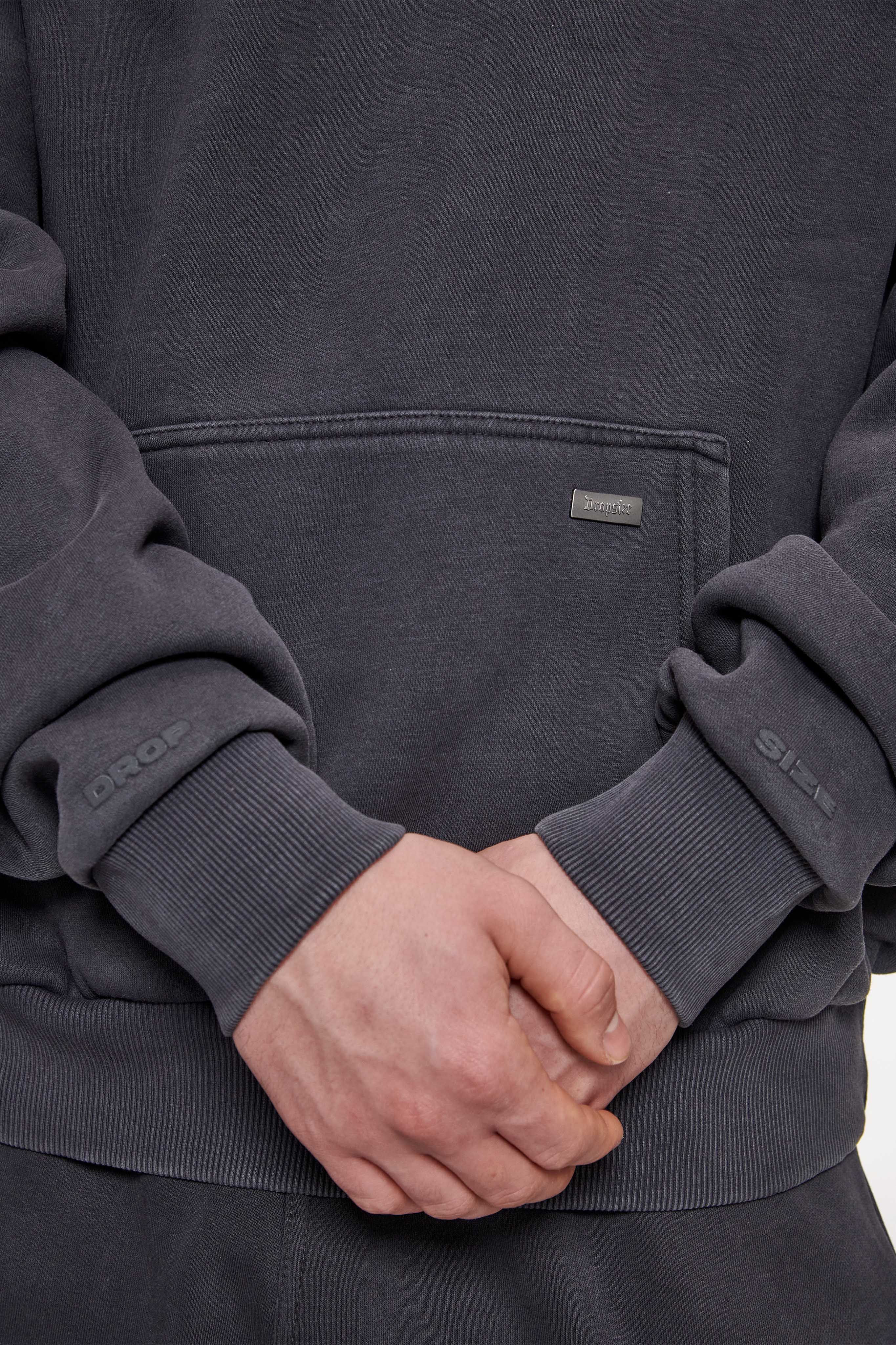 HEAVY OVERSIZE DOUBLE ARM HOODIE ACID WASHED GREY