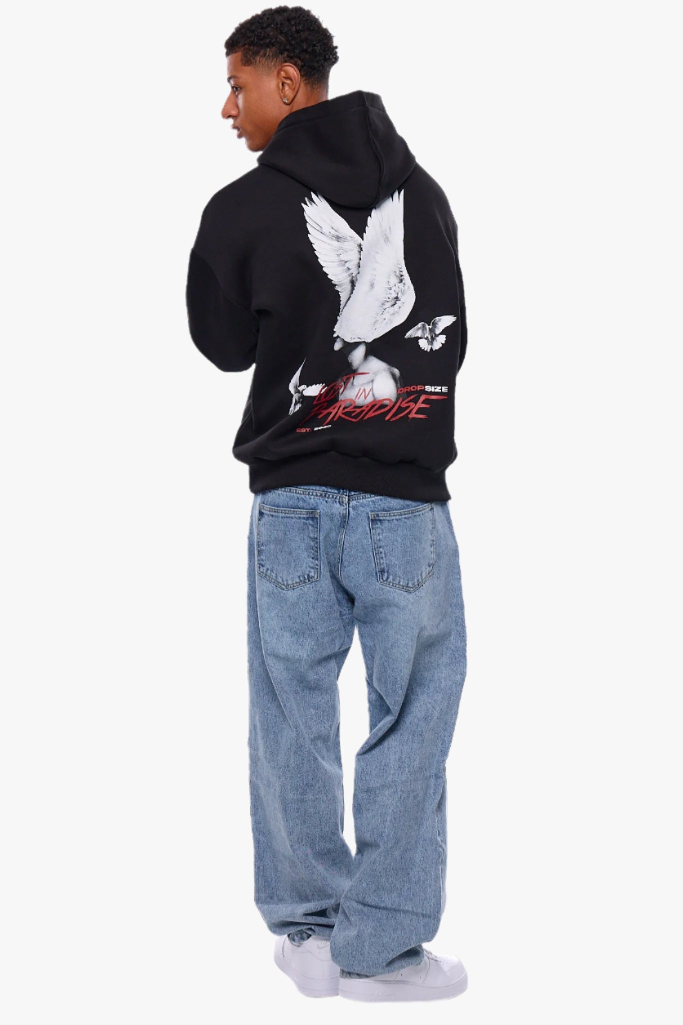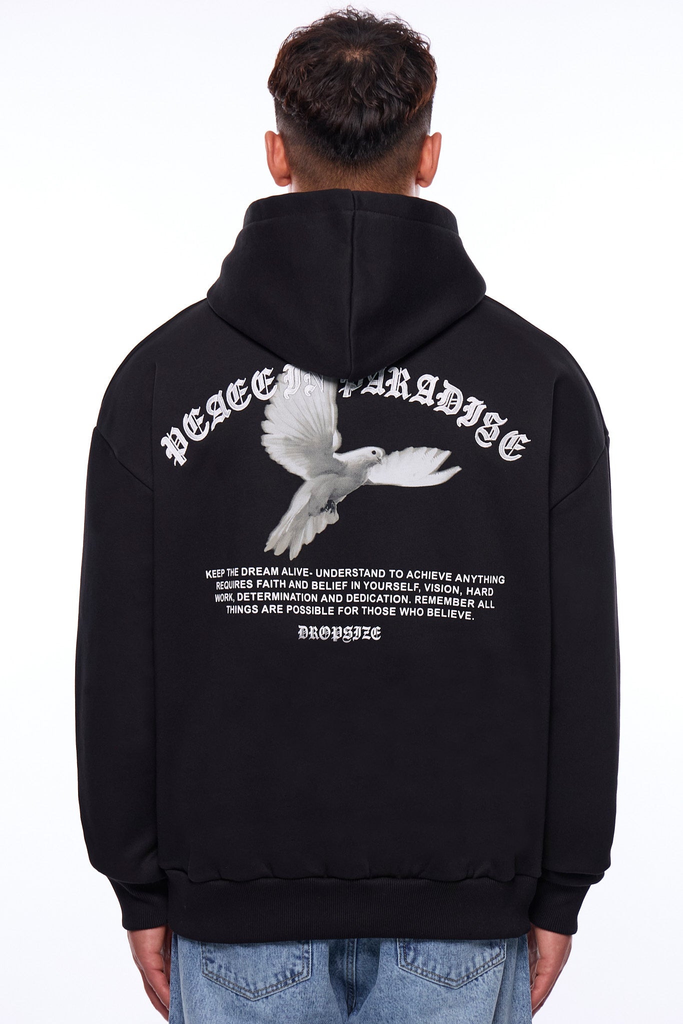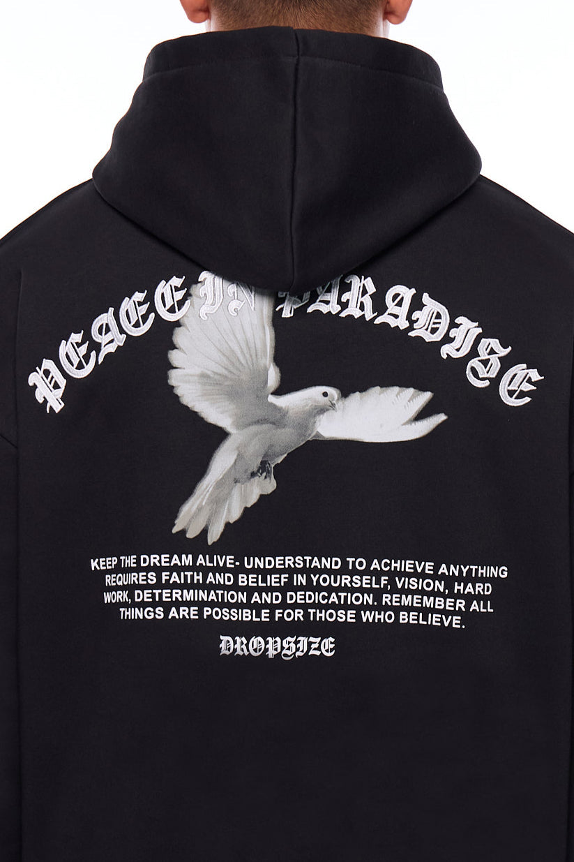 HEAVY OVERSIZE DOVES AND ROSES HOODIE BLACK