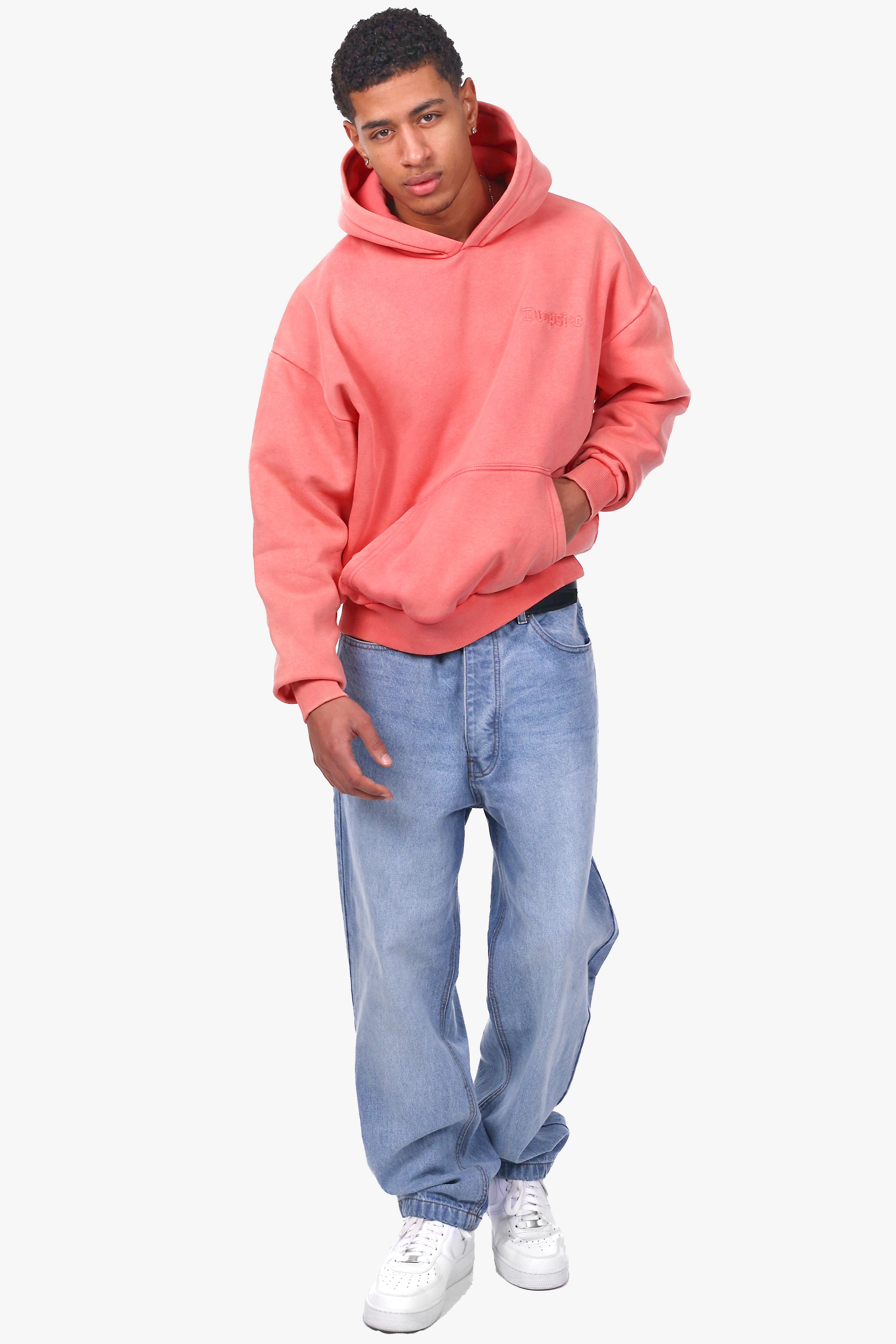 HEAVY OVERSIZE EMBO HOODIE WASHED PINK