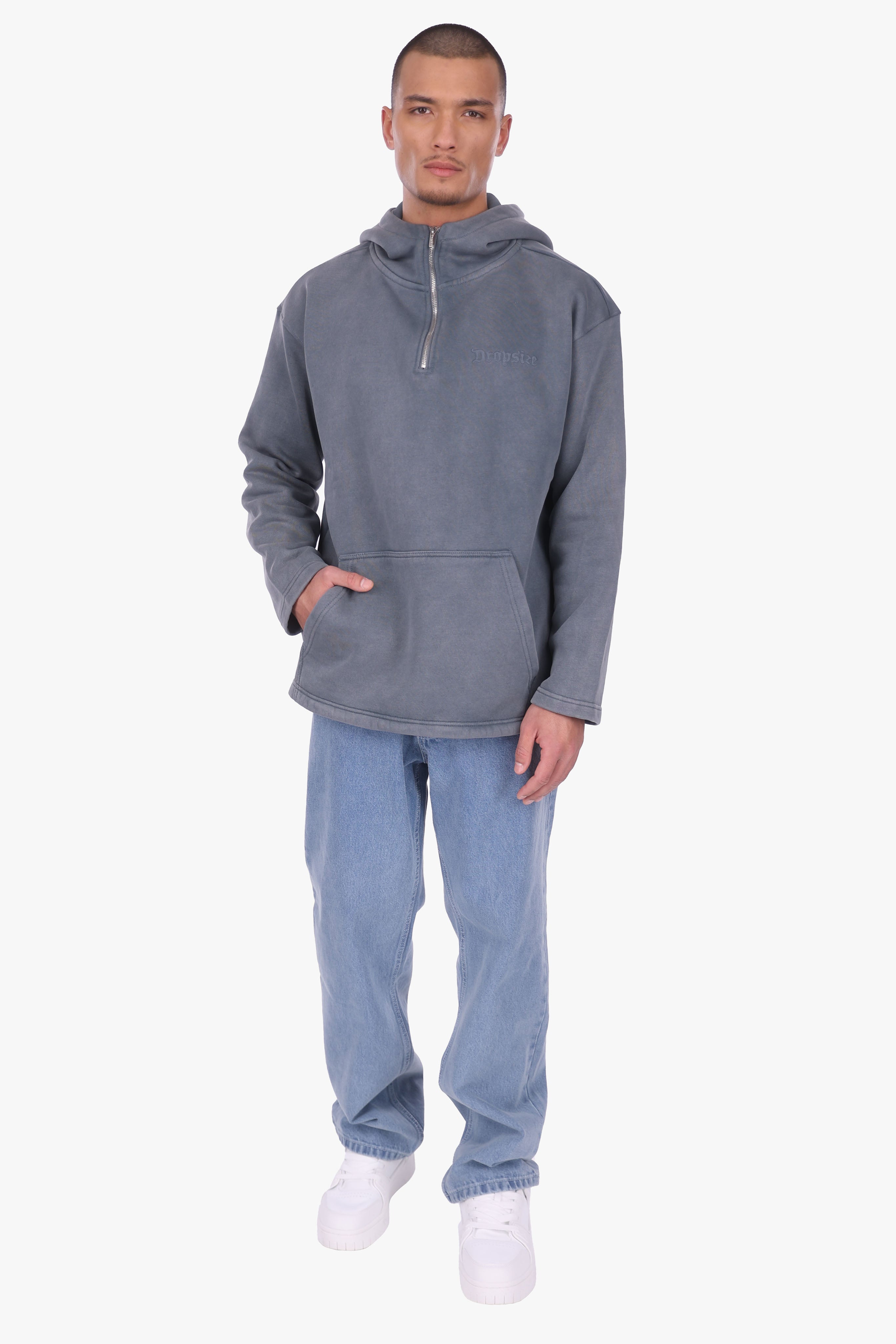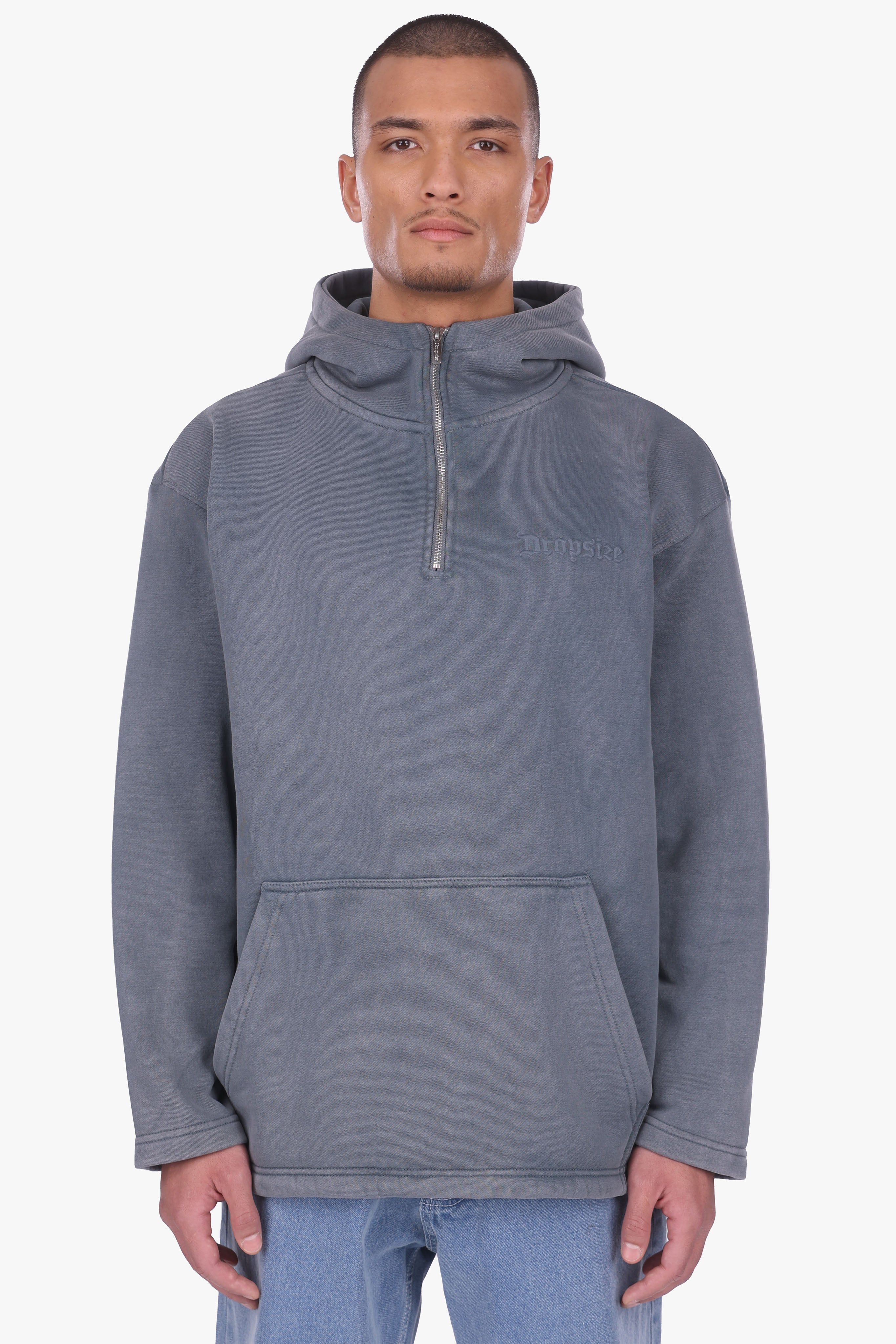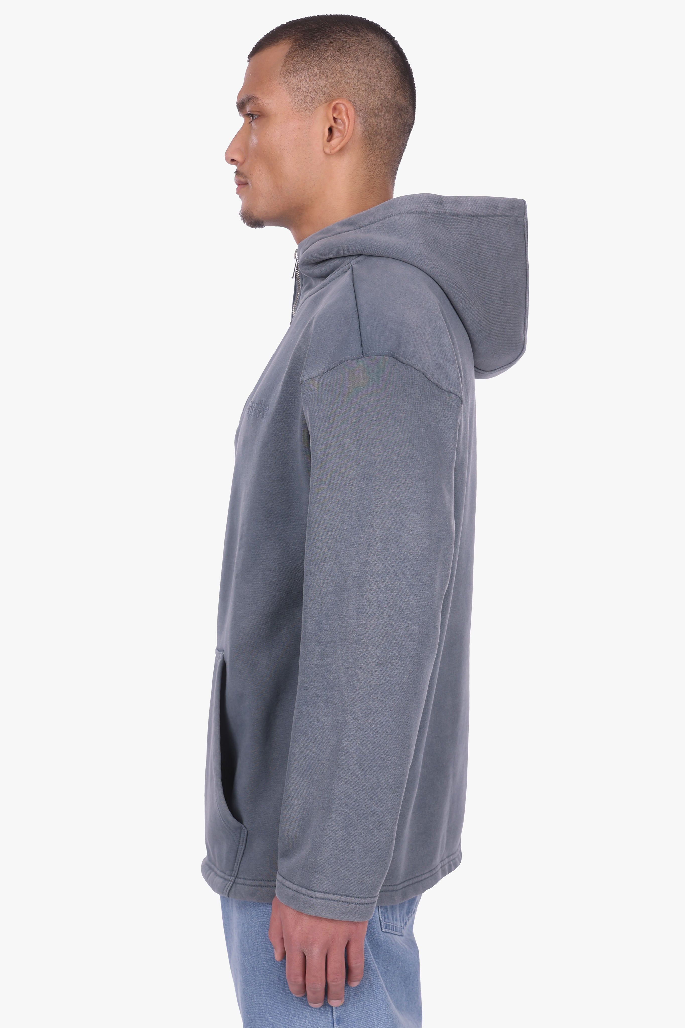 RELAXED FIT HALF ZIP HOODIE WASHED GREY