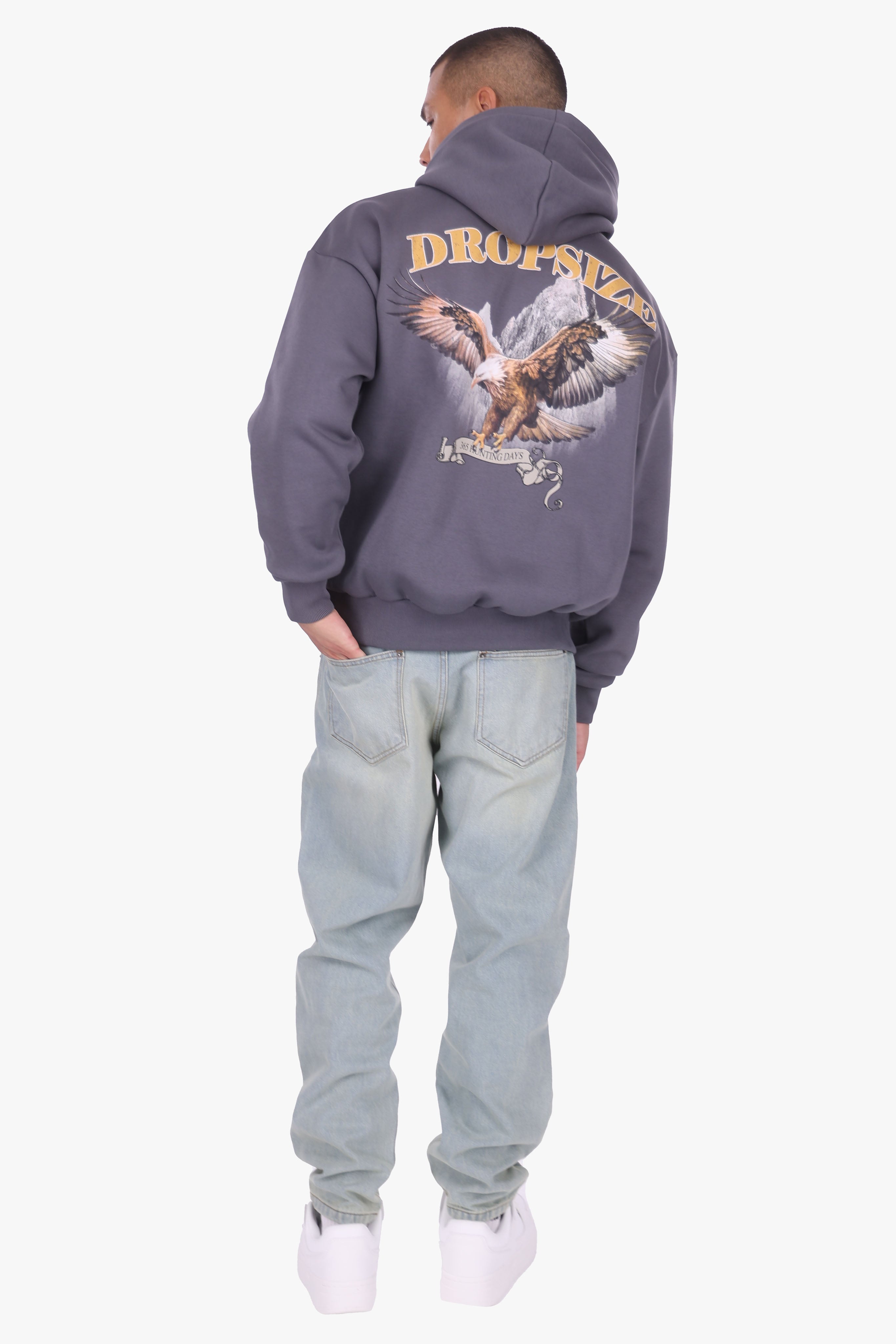 HEAVY OVERSIZE EAGLE HOODIE STEEL GREY