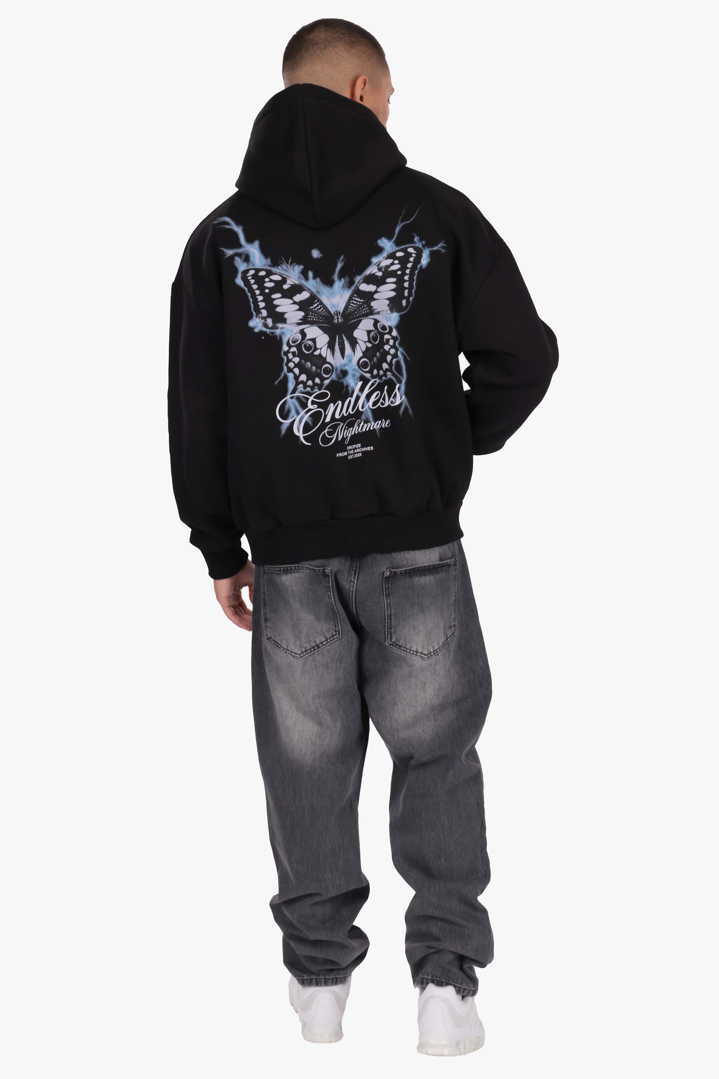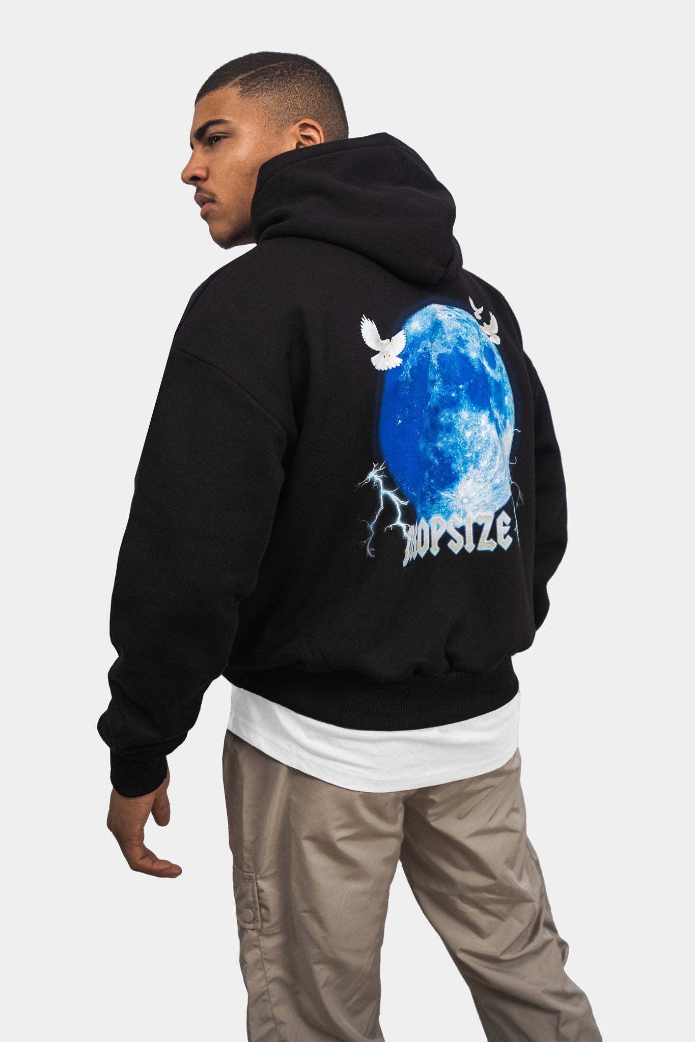 HEAVY OVERSIZE BLUE MOON DESIGN HOODIE BLACK