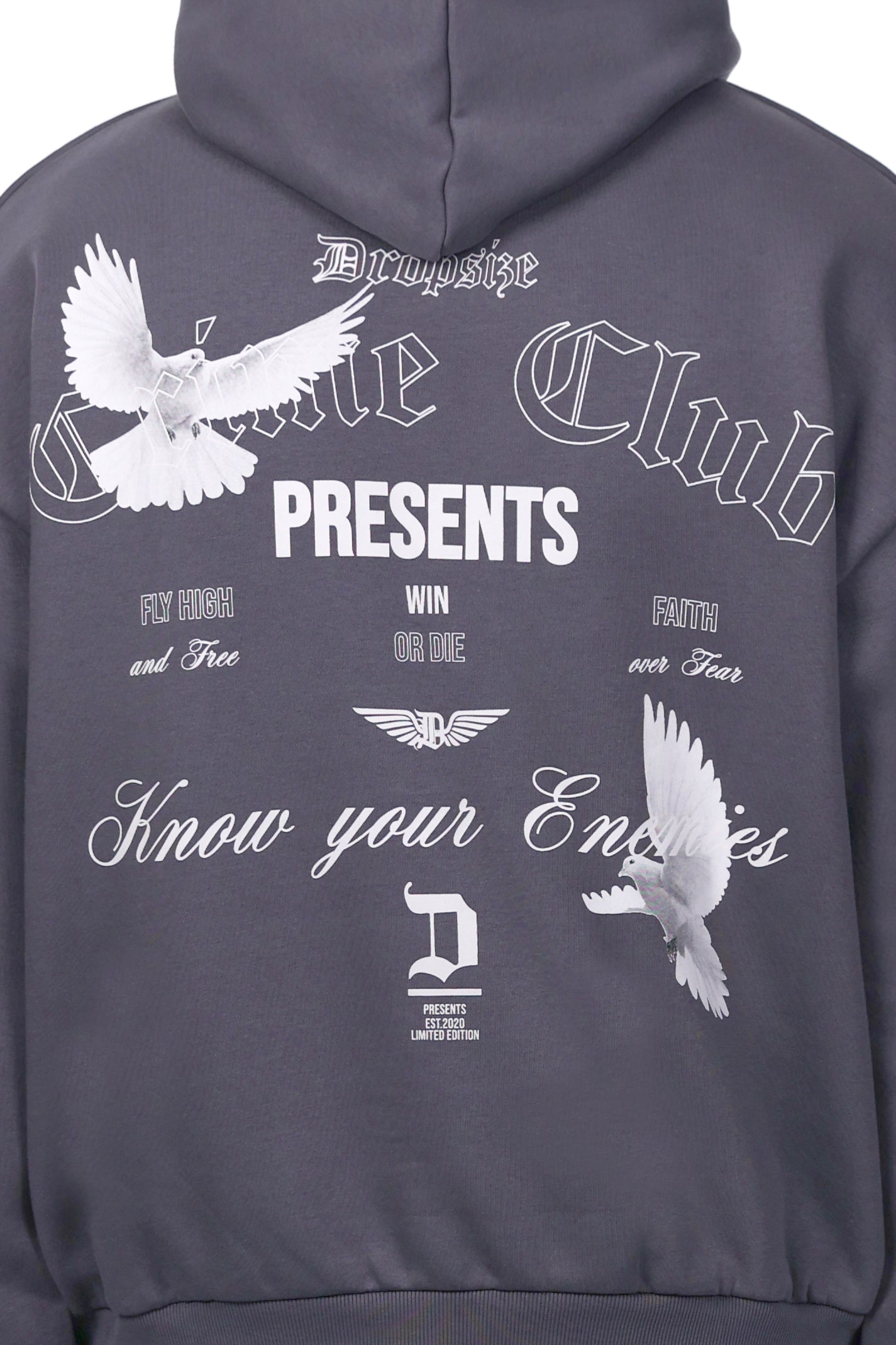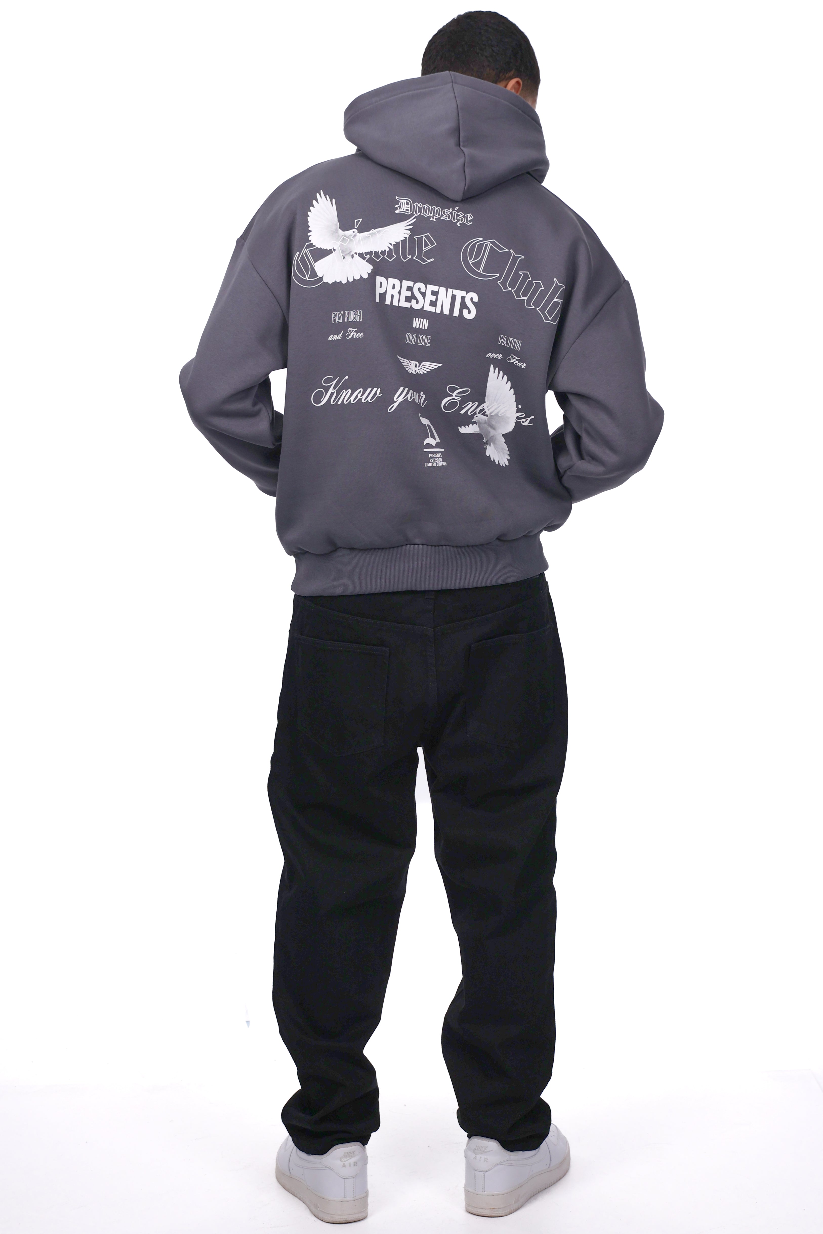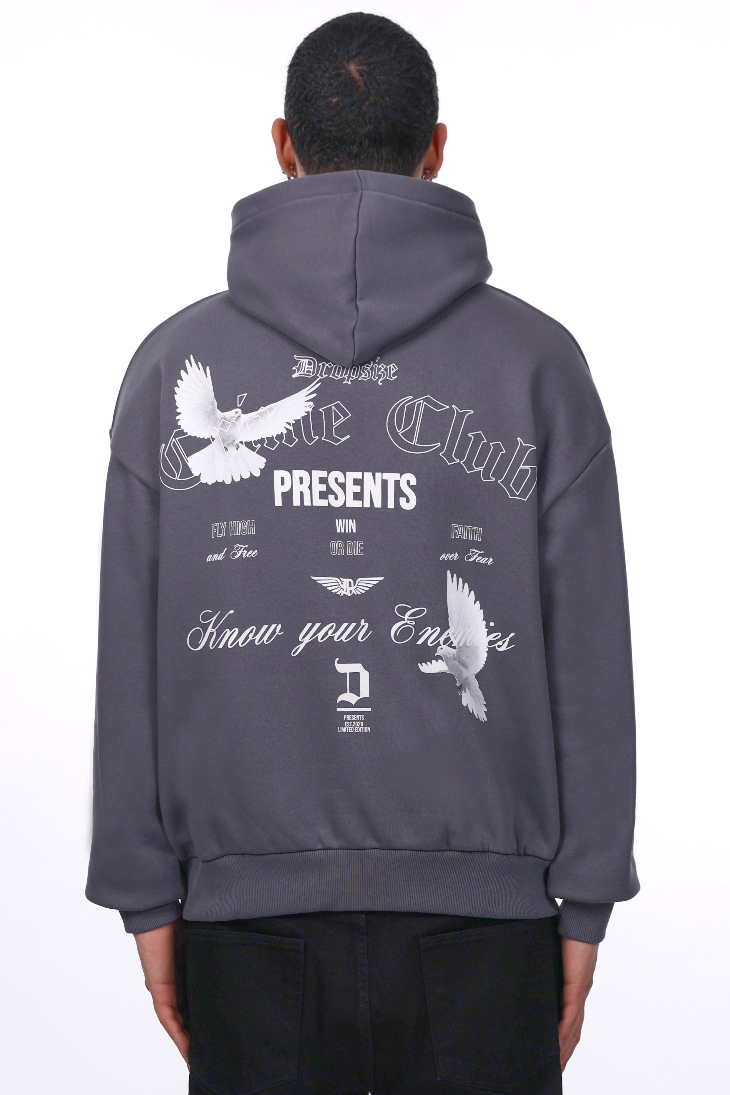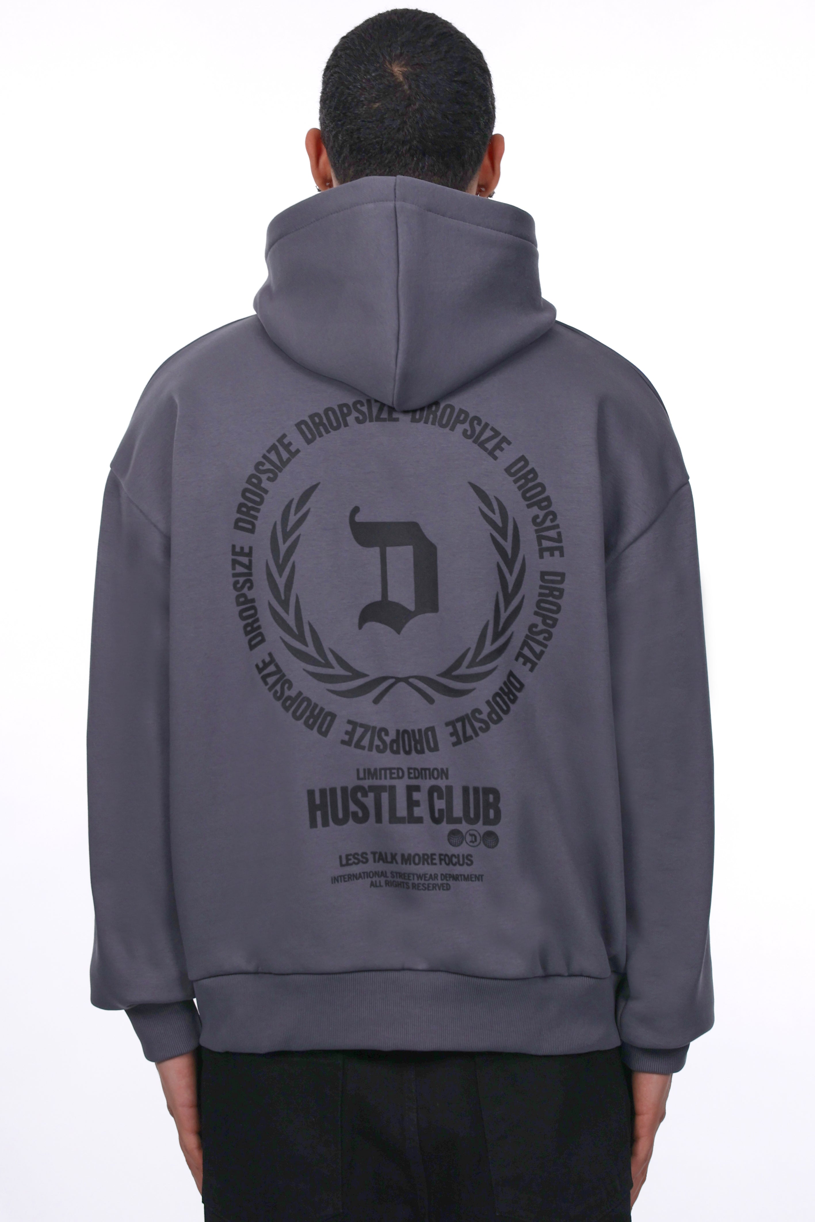 HEAVY OVERSIZE HUSTLE CLUB HOODIE STEEL GREY