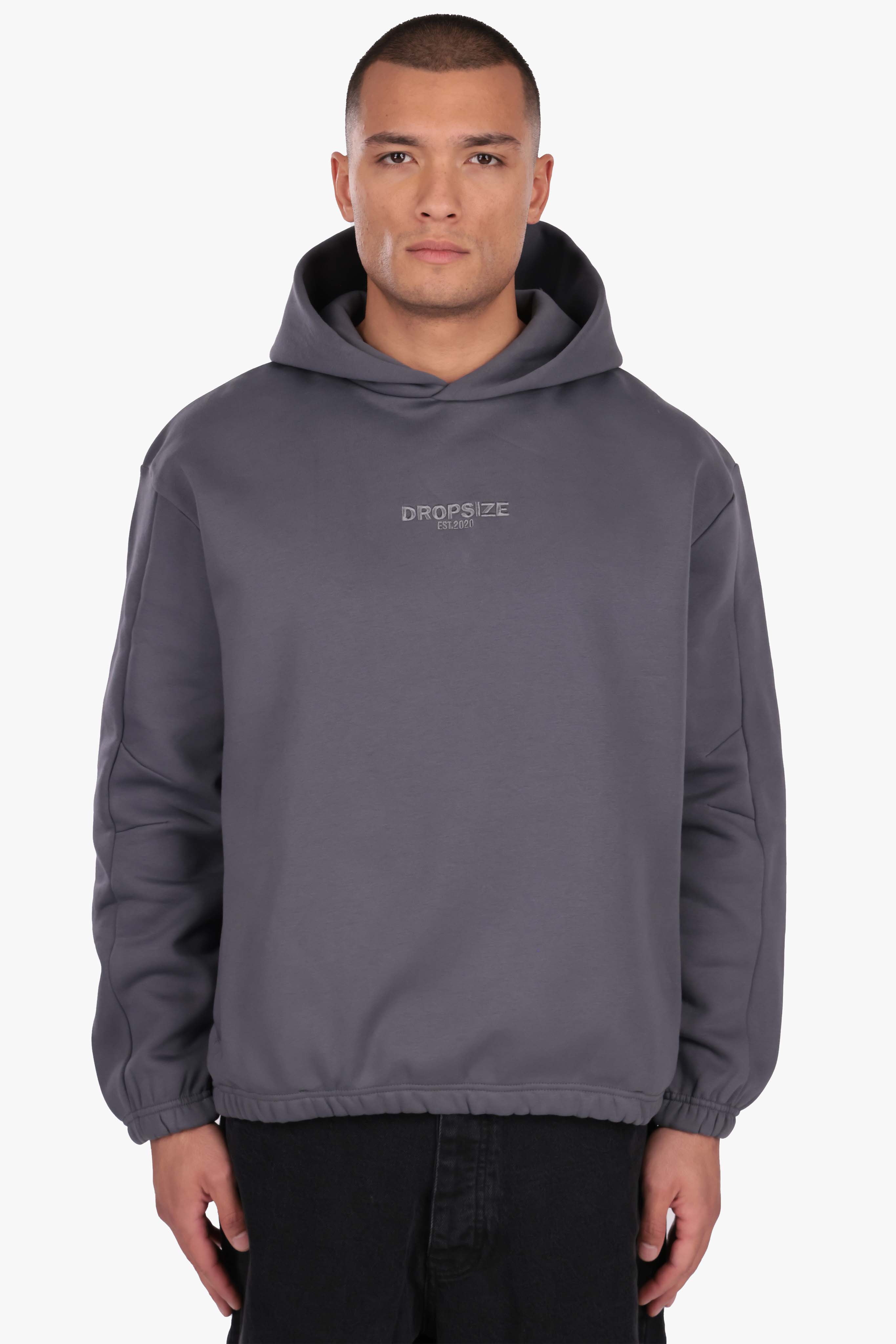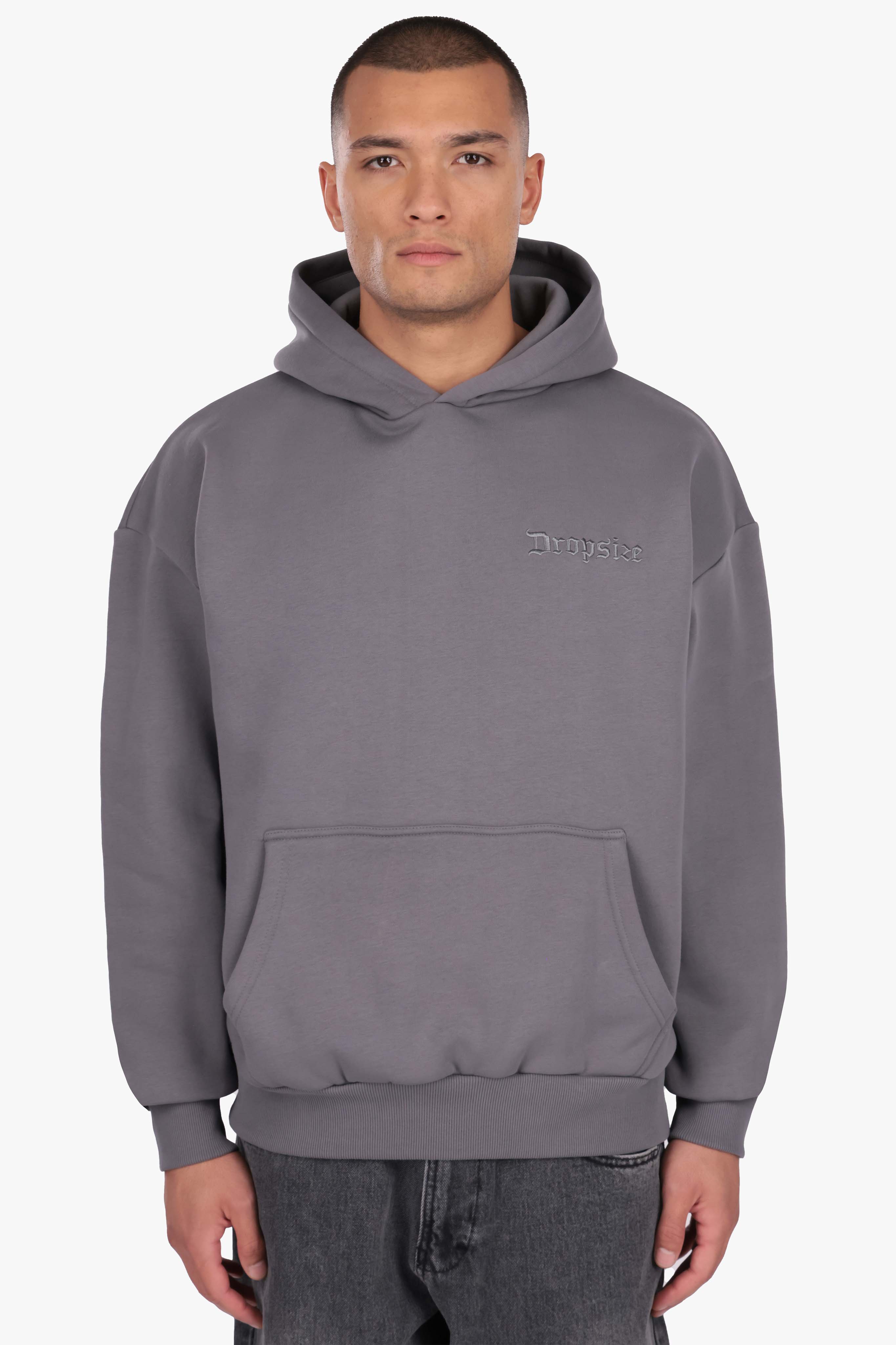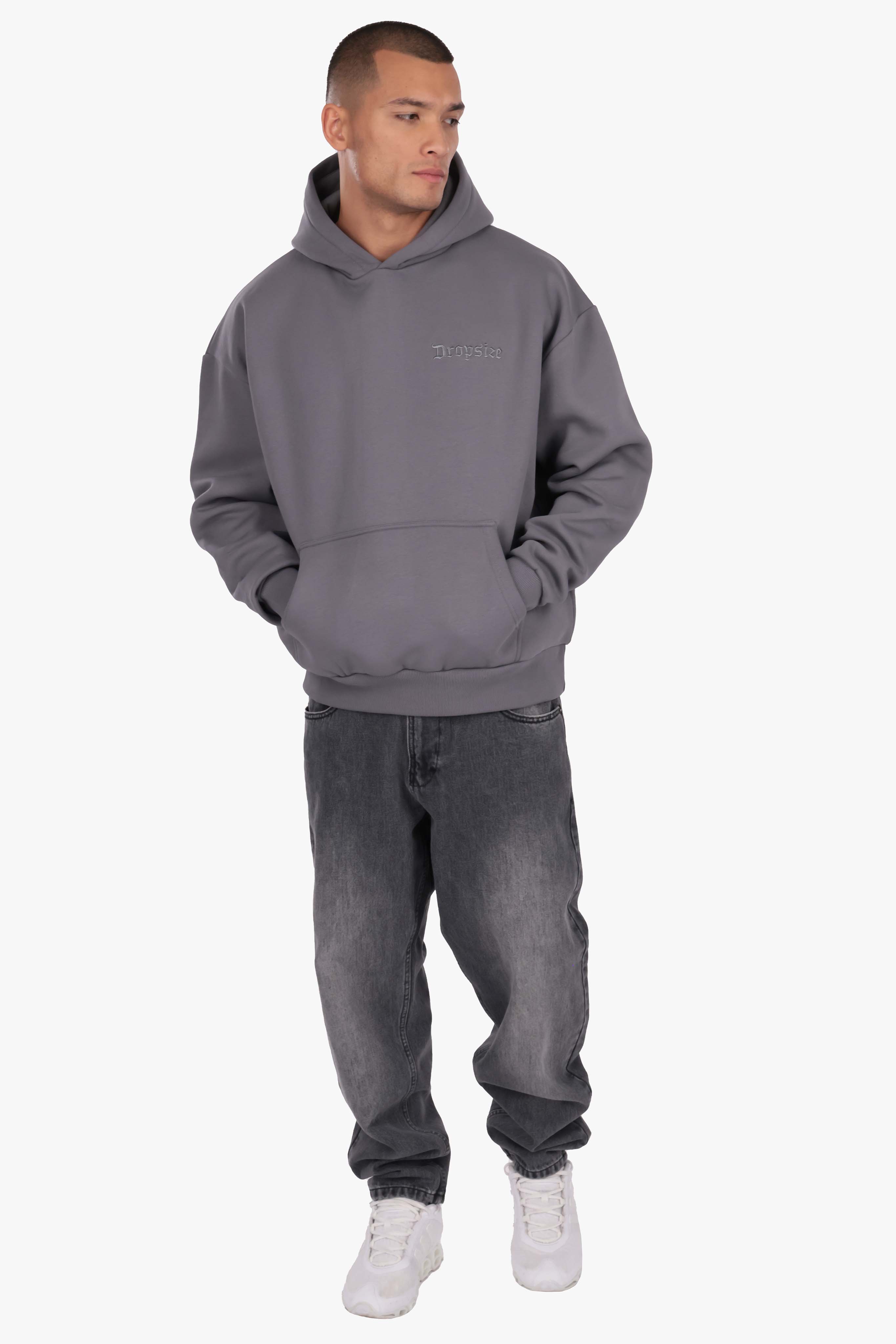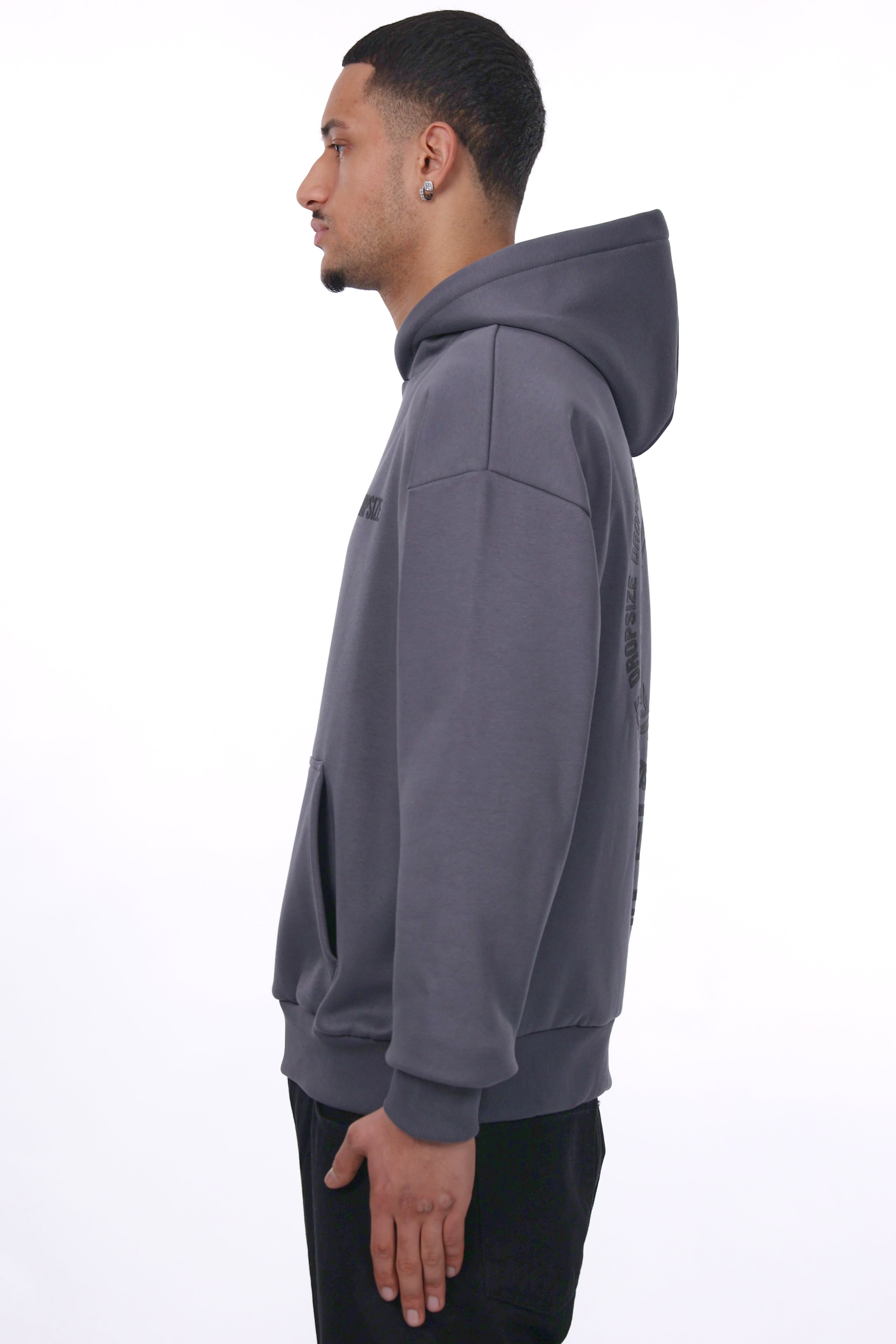 HEAVY OVERSIZE EMBO HOODIE DARK GREY