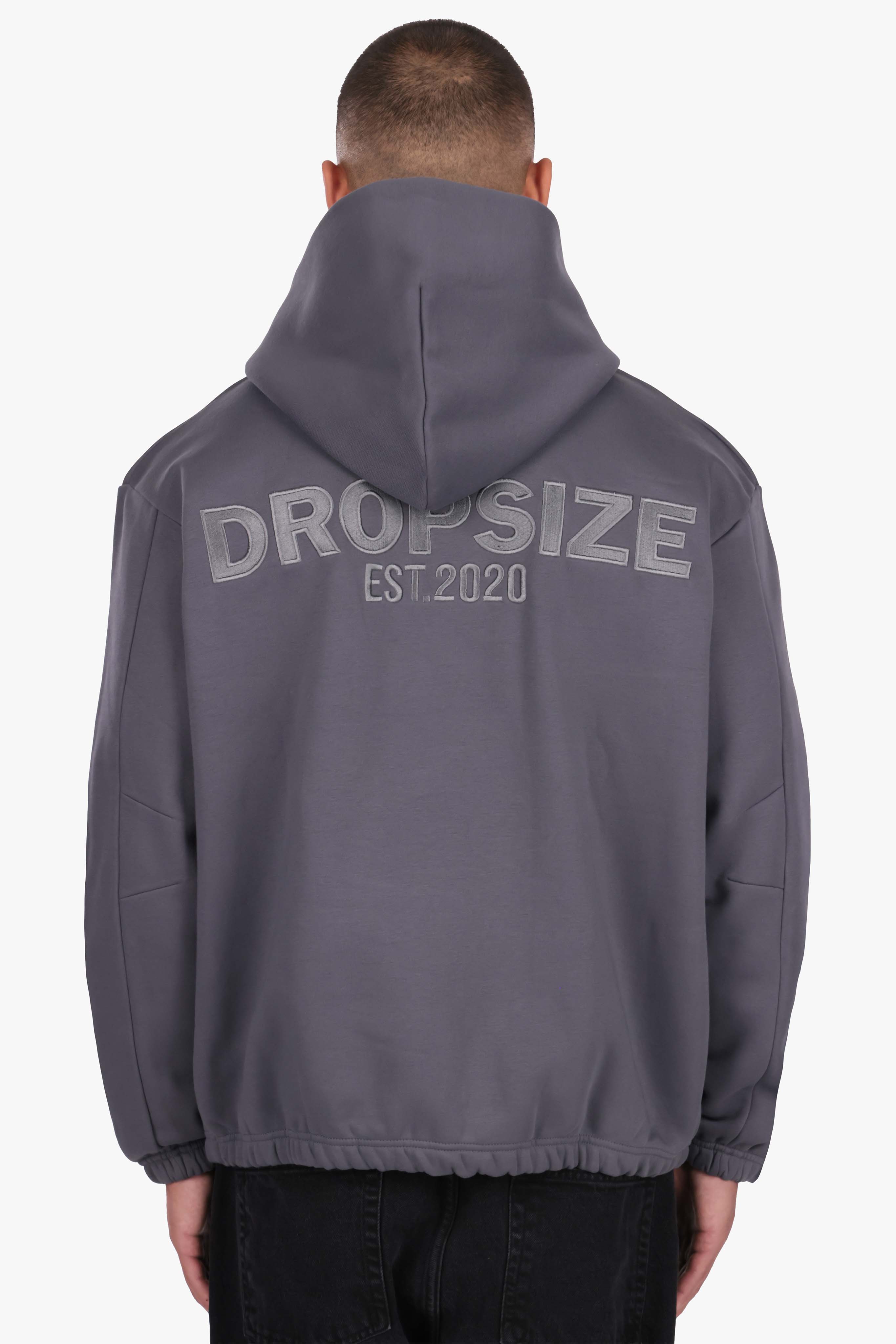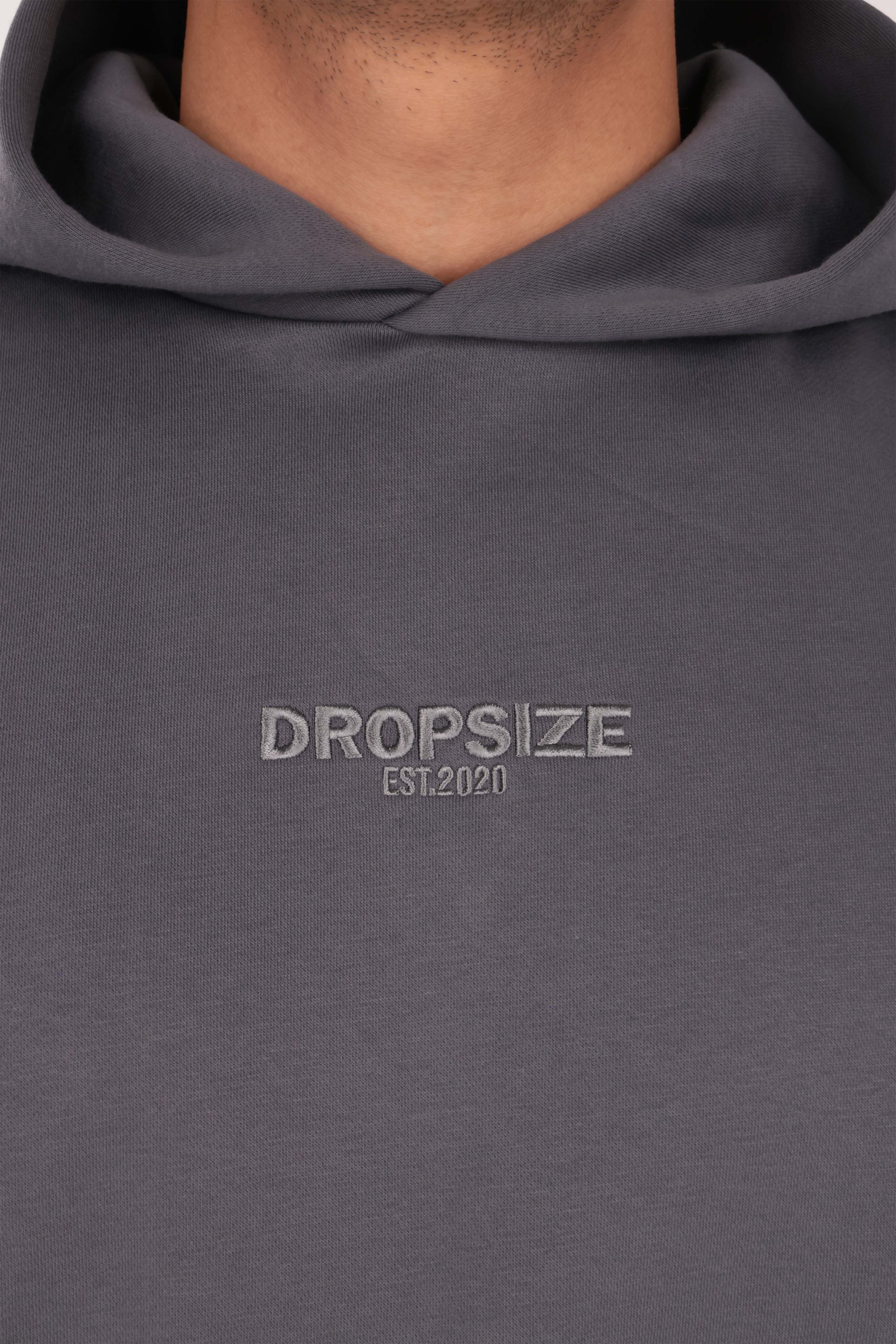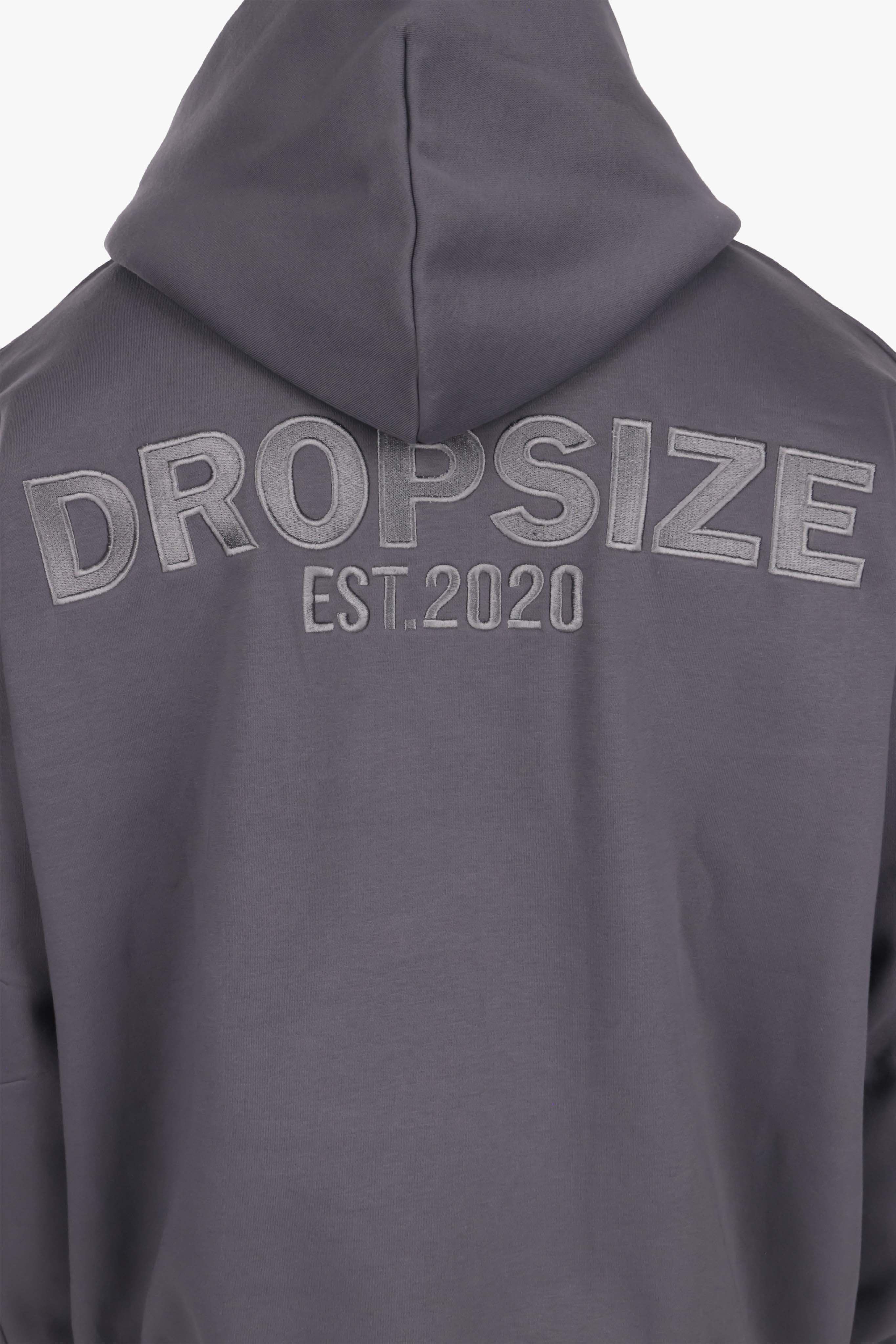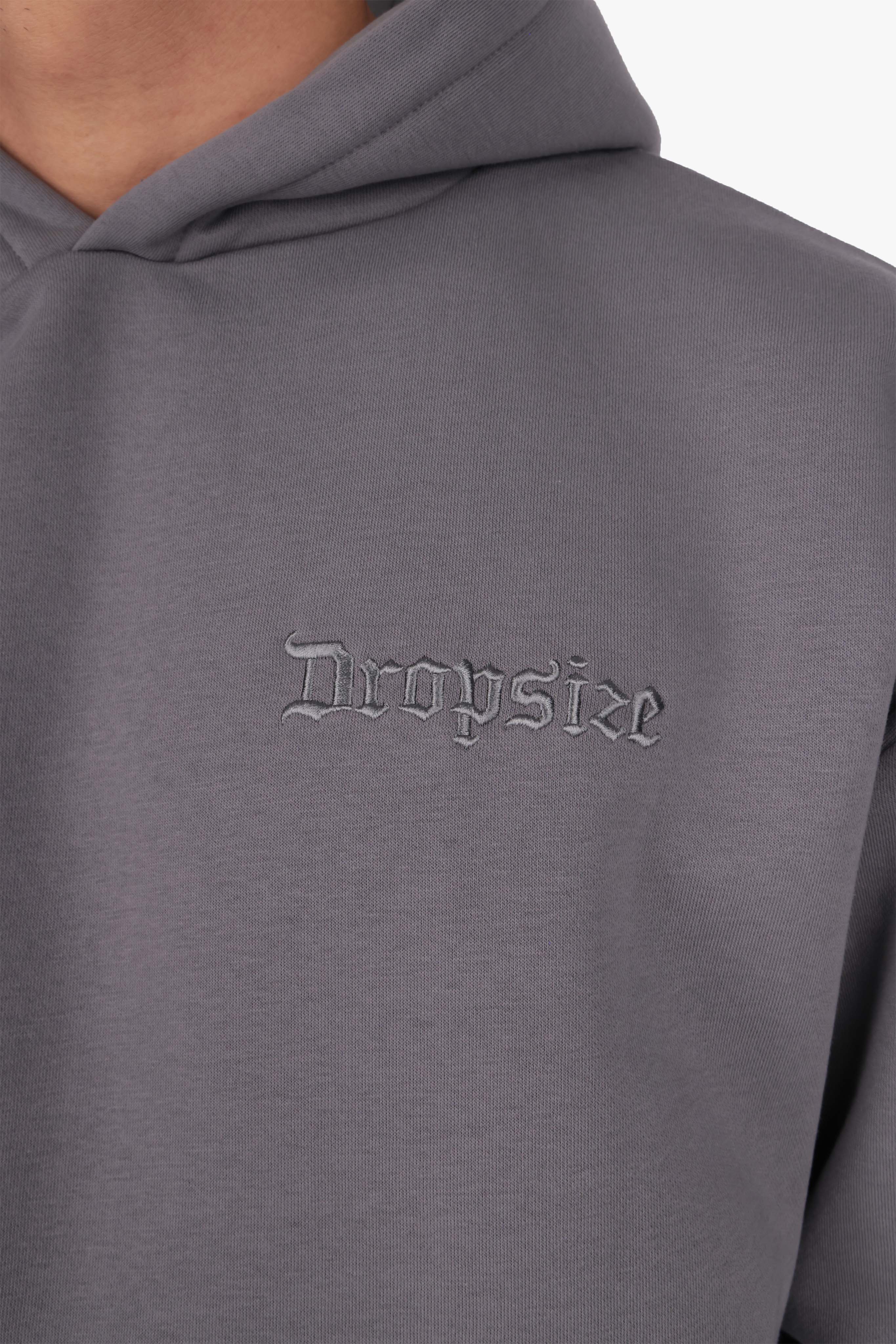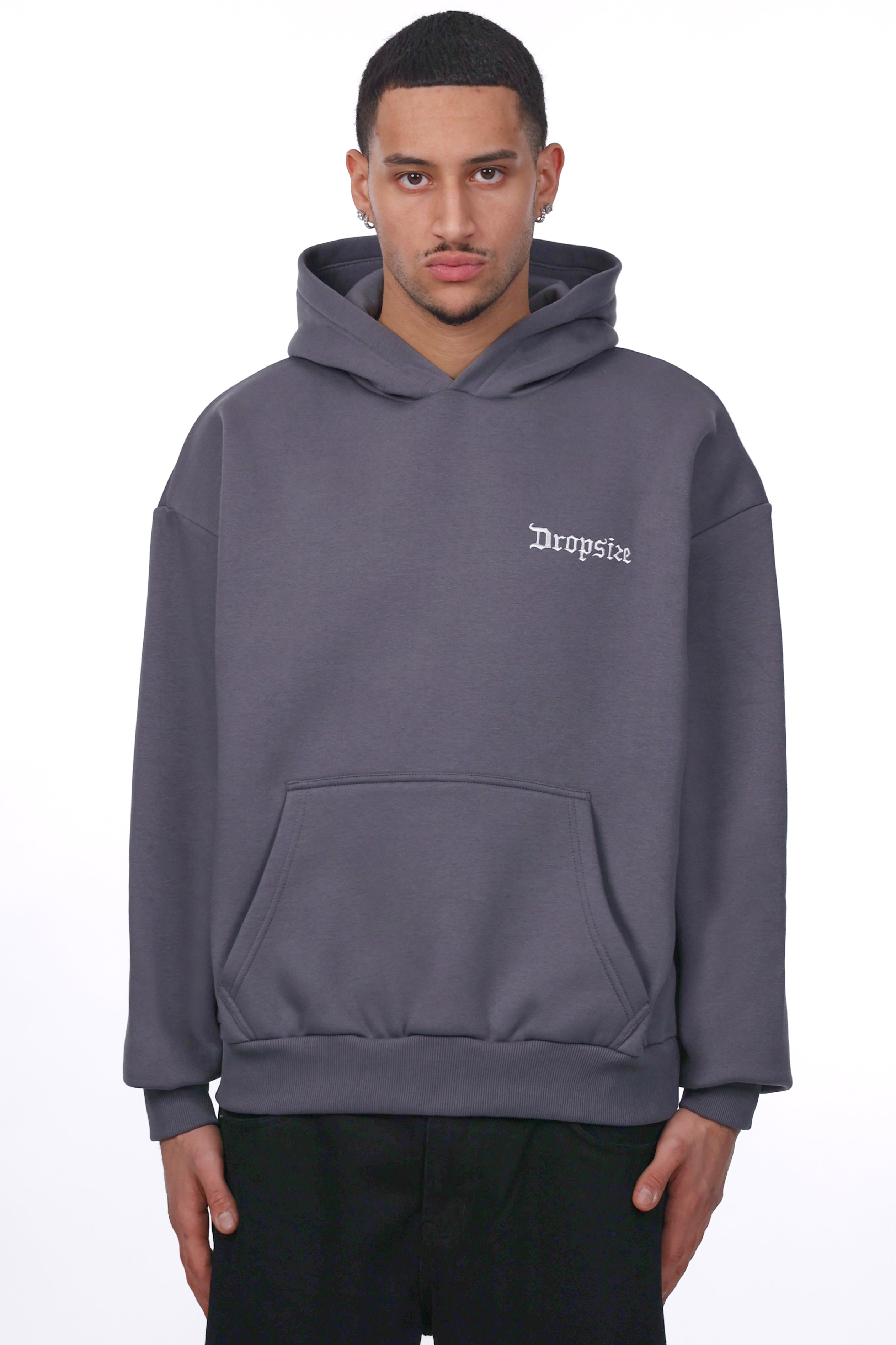 HEAVY OVERSIZE EMBO HOODIE DARK GREY