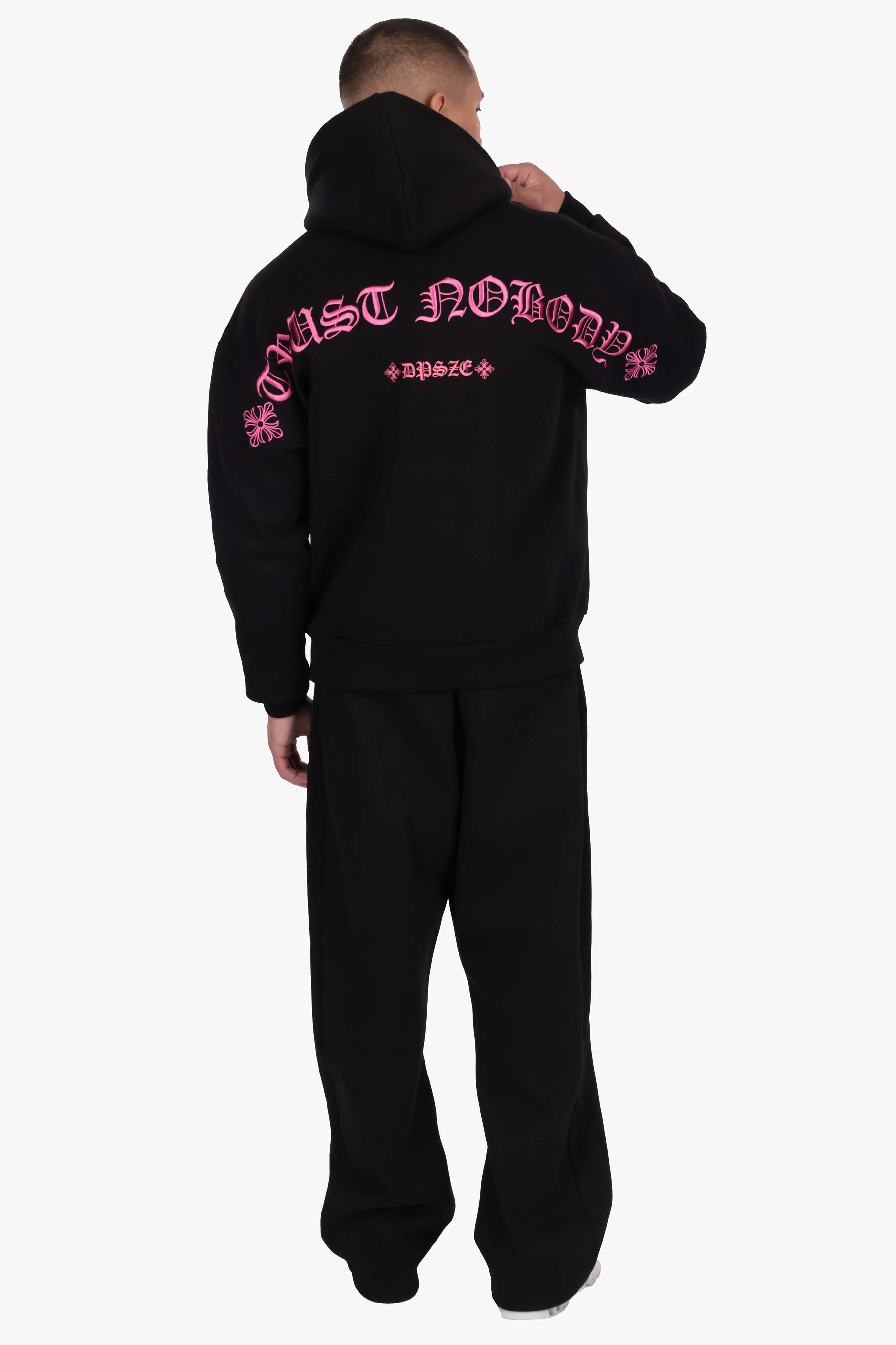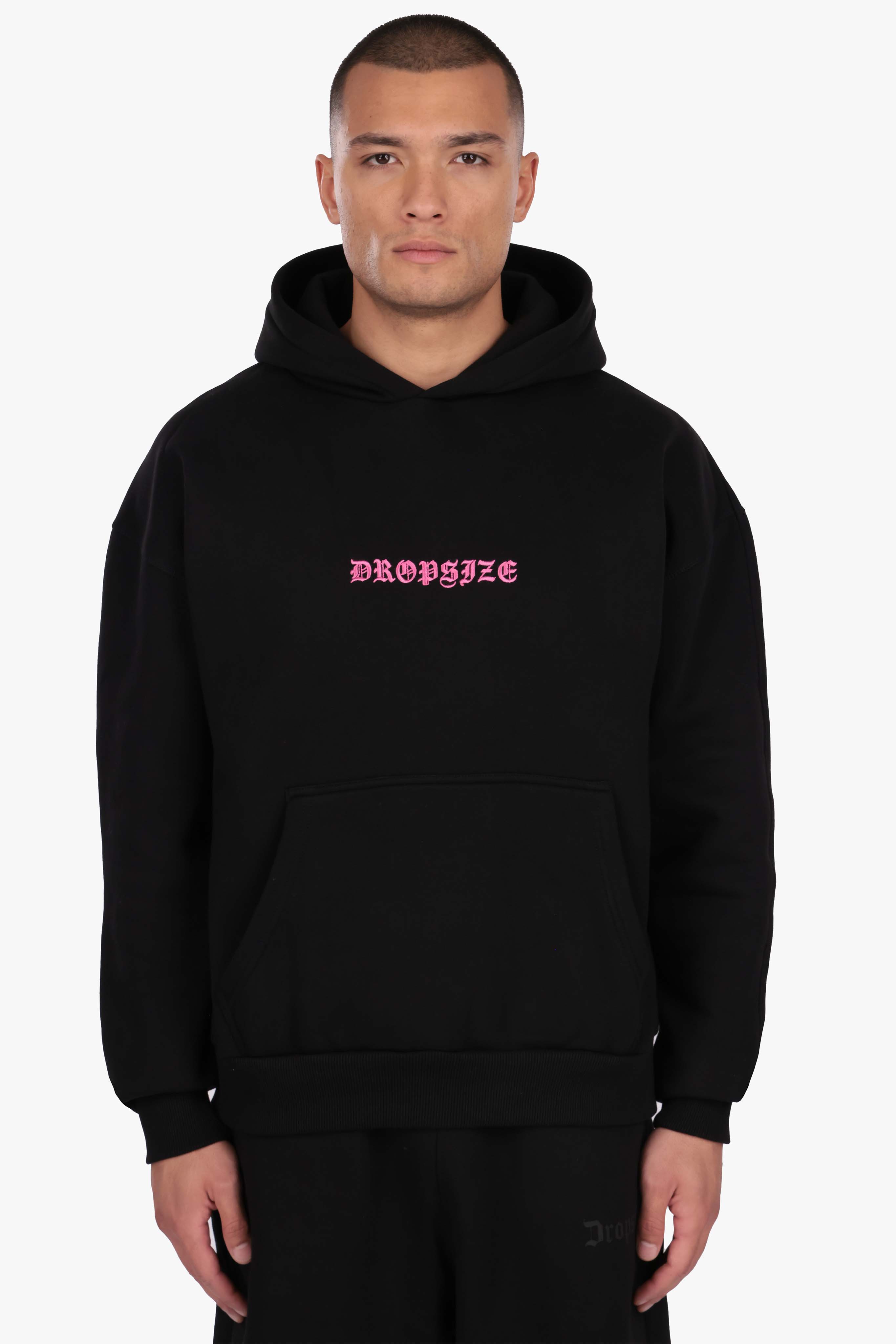 HEAVY OVERSIZE ORNAMENT HOODIE BLACK PINK