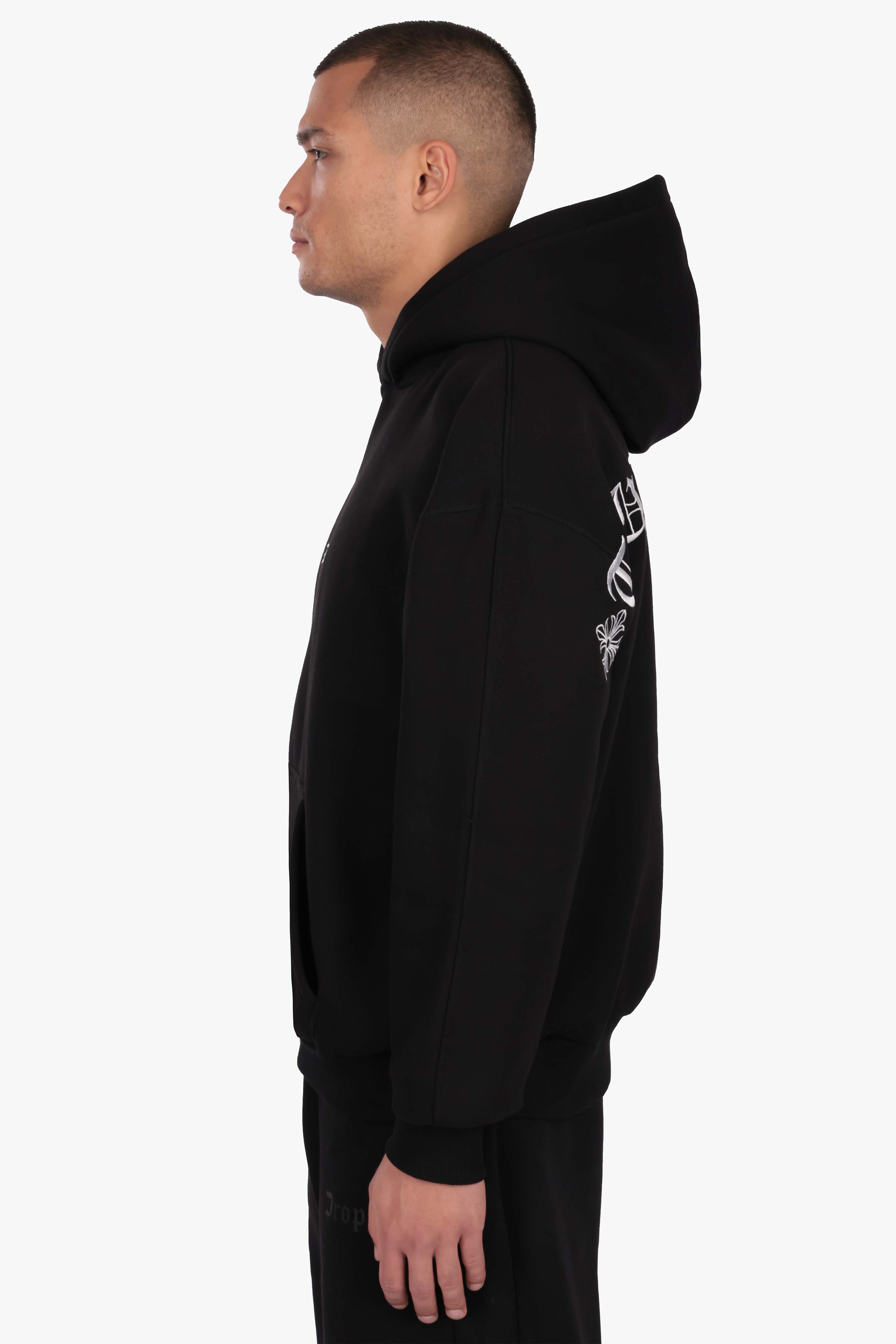 HEAVY OVERSIZE ORNAMENT HOODIE BLACK WHITE