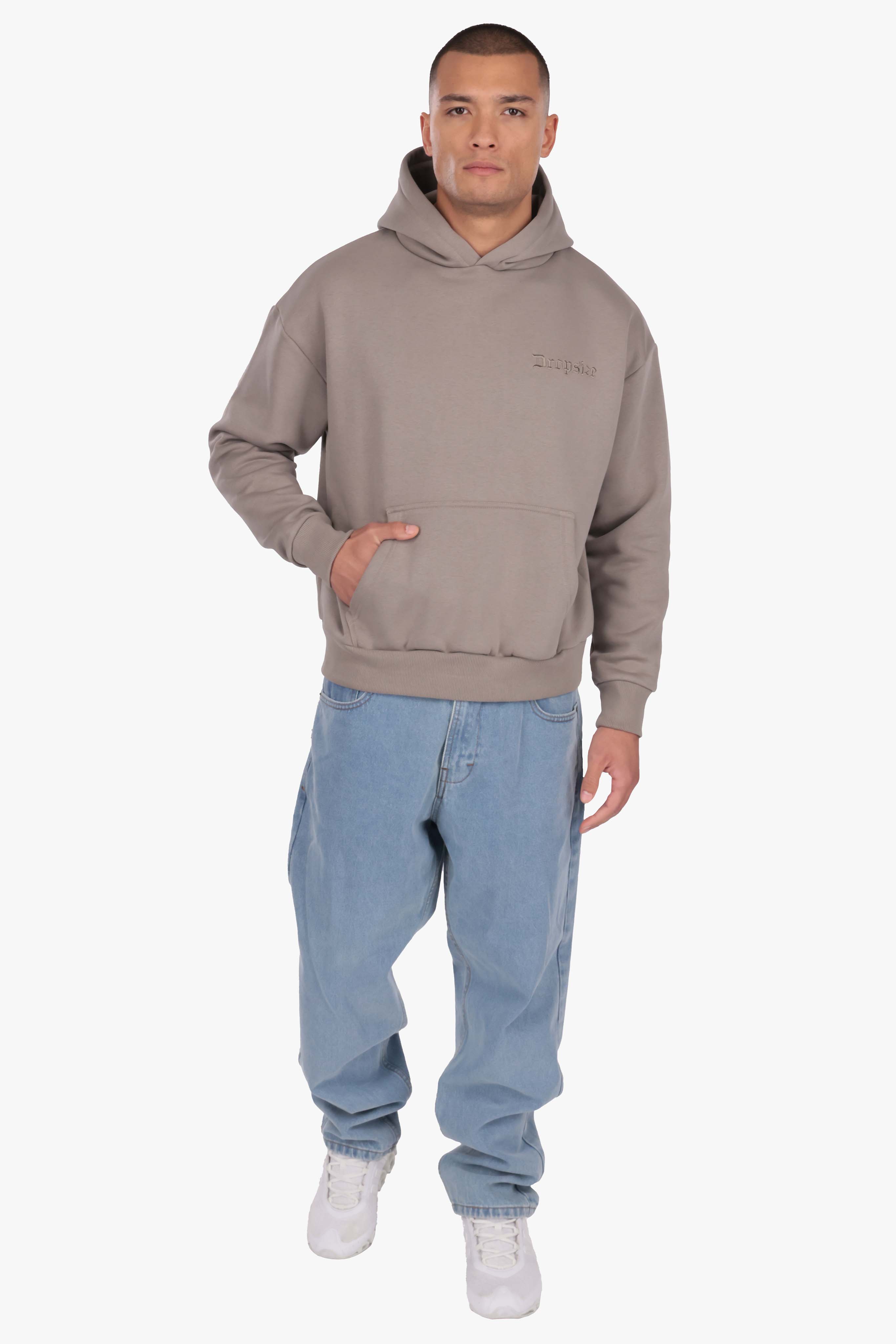 HEAVY OVERSIZE EMBO HOODIE FLINT STONE