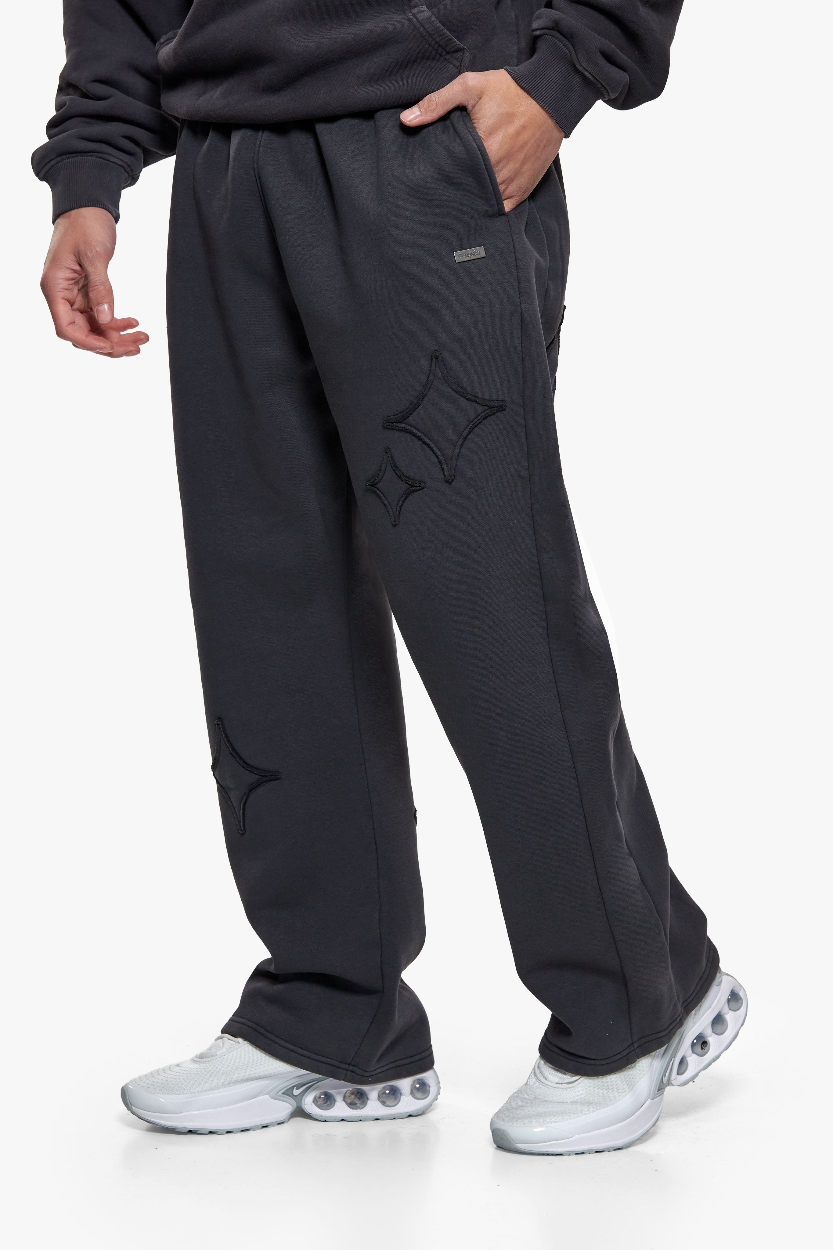 STAR PATCH OPEN LEG JOGGER ACID WASHED BLACK