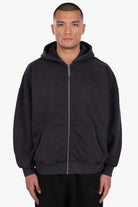 HEAVY OVERSIZE LOGO ZIP HOODIE ACID BLACK