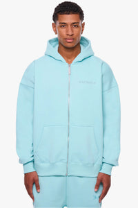 HEAVY OVERSIZE LOGO ZIP HOODIE TURQUOISE