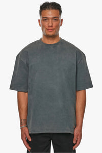 HEAVY OVERSIZE METAL PATCH BASIC T-SHIRT WASHED GREY