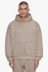 OVERSIZE METAL PATCH ZIP HOODIE SIMPLY TAUPE