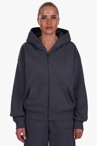 WOMEN BASIC COZY ZIP-HOODIE STEEL GREY