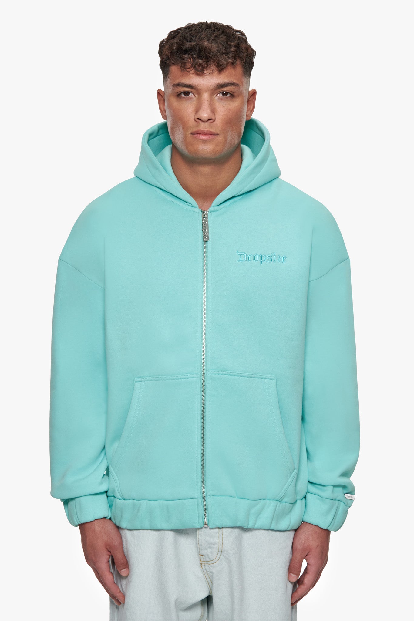 HEAVY OVERSIZE EMBO ZIP HOODIE VAPOR BLUE