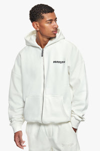 SUPER HEAVY OVERSIZE LOGO ZIP HOODIE CREAM WHITE