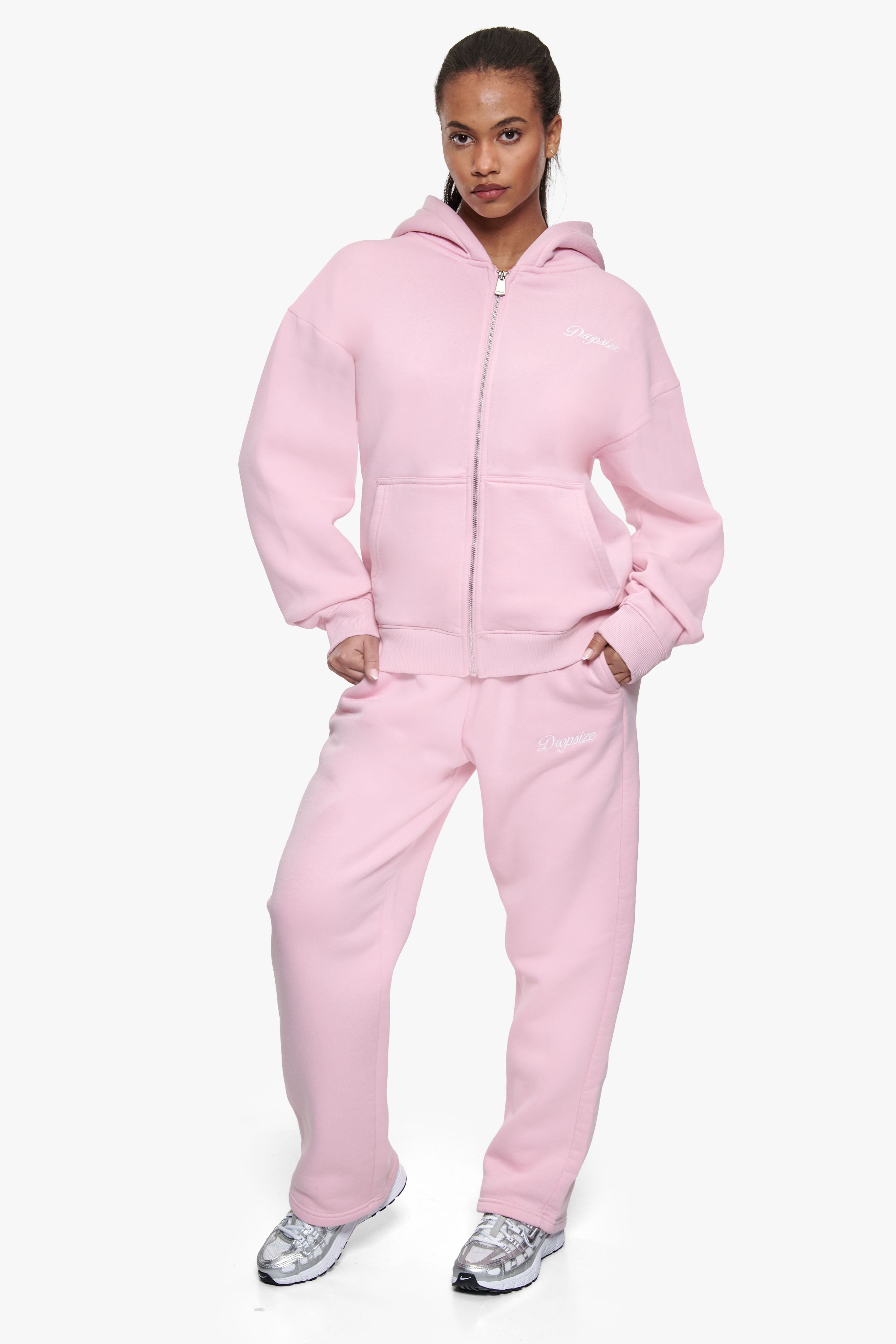 WOMEN CONTRAST EMBO ZIP HOODIE LIGHT PINK