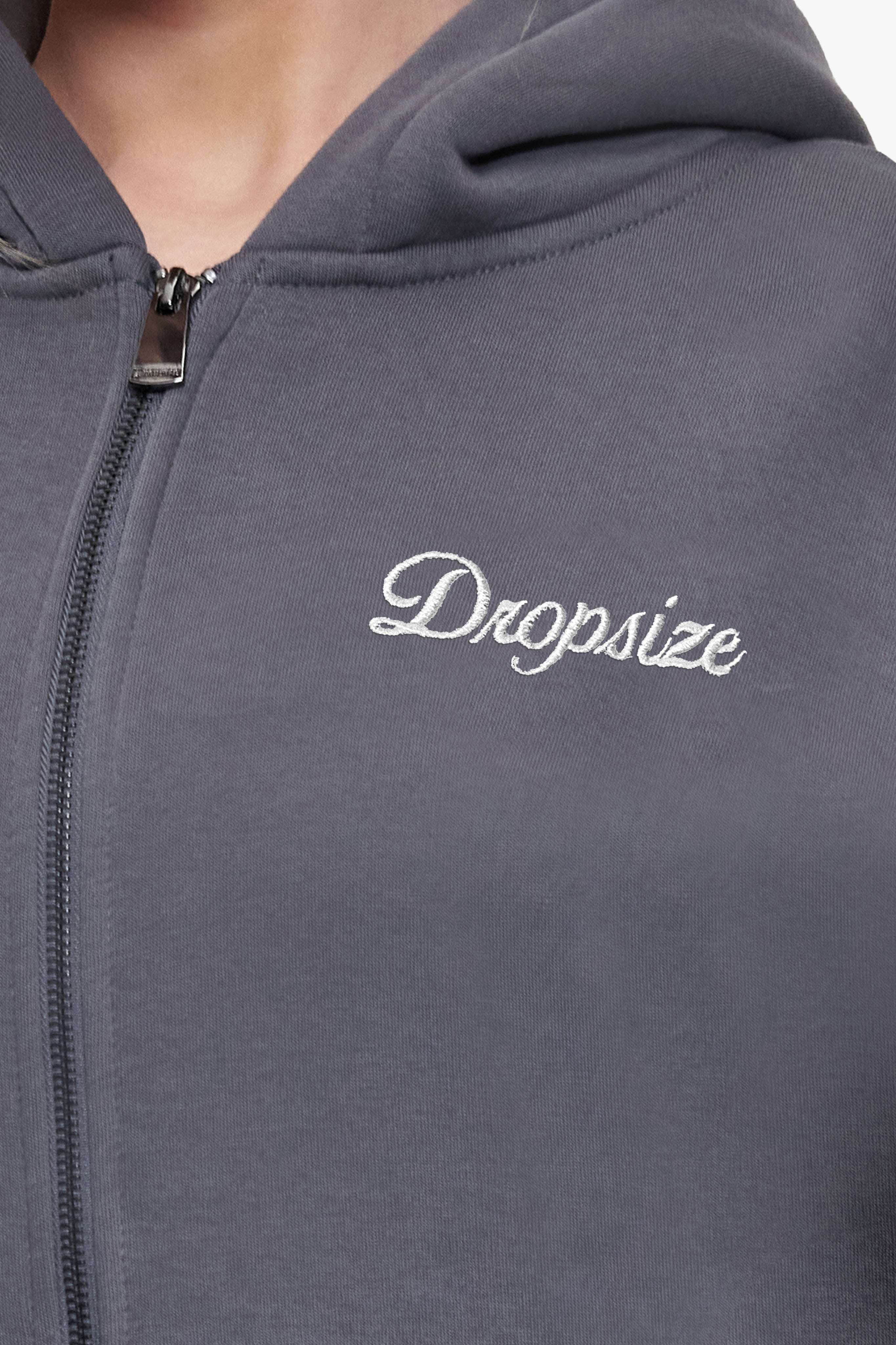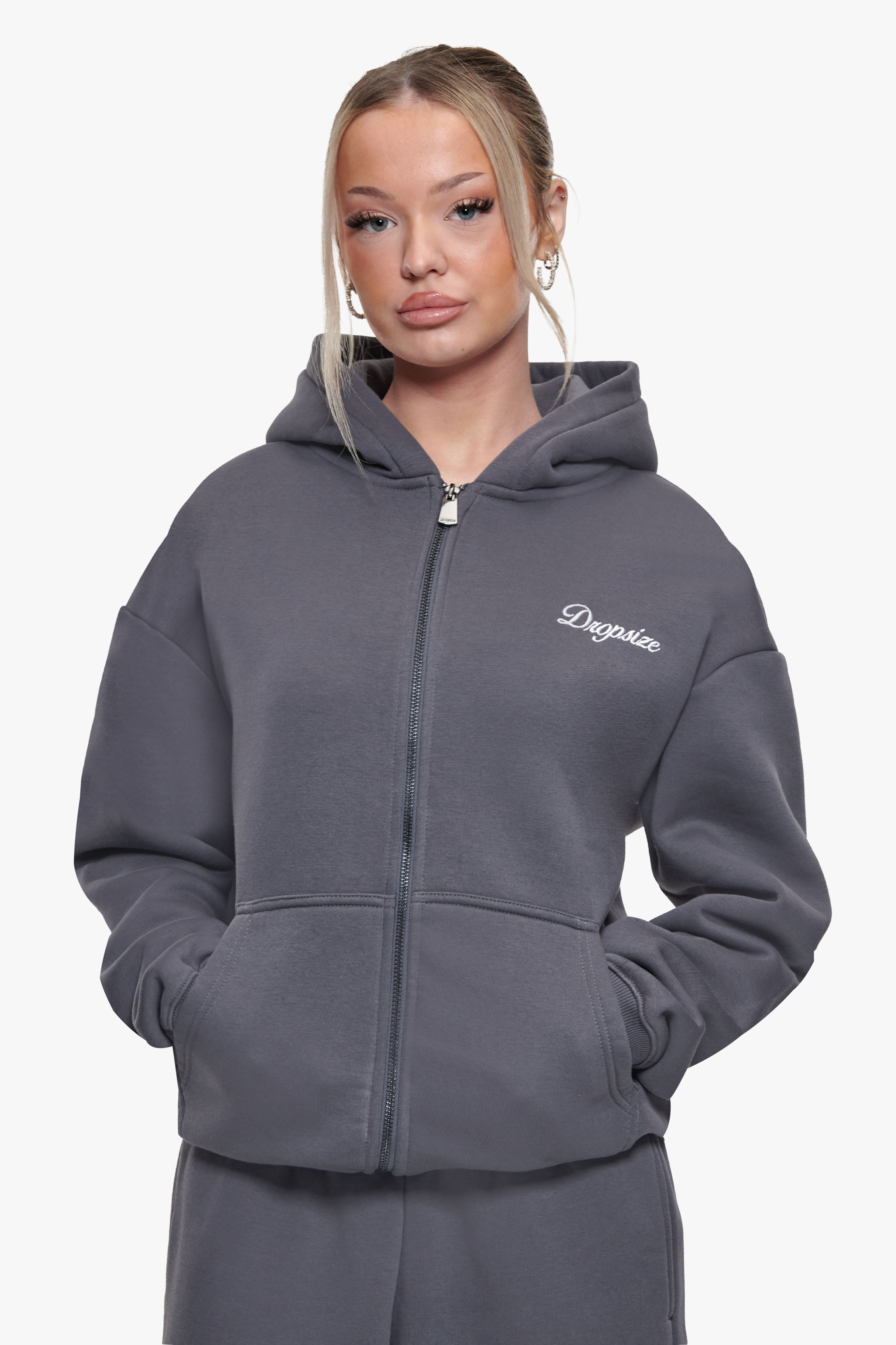 WOMEN CONTRAST EMBO ZIP HOODIE STEEL GREY