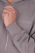HEAVY OVERSIZE LOGO ZIP HOODIE DARK GREY