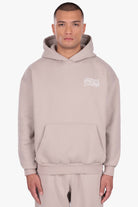 HEAVY OVERSIZE MIRRORED LOGO HOODIE PUMIC STONE