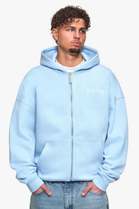 SUPER HEAVY OVERSIZE LOGO ZIP HOODIE BABY BLUE
