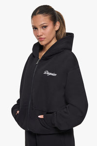 WOMEN CONTRAST EMBO ZIP HOODIE BLACK