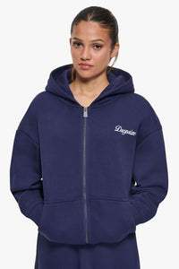 WOMEN CONTRAST EMBO ZIP HOODIE NAVY